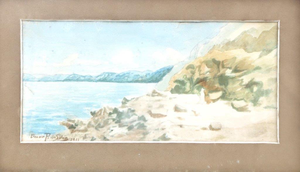 Oscar Pereira da Silva - marinha - aquarela - CIE - Dat. 1911 - 15 x 34 cm. (Necessita Restauro).