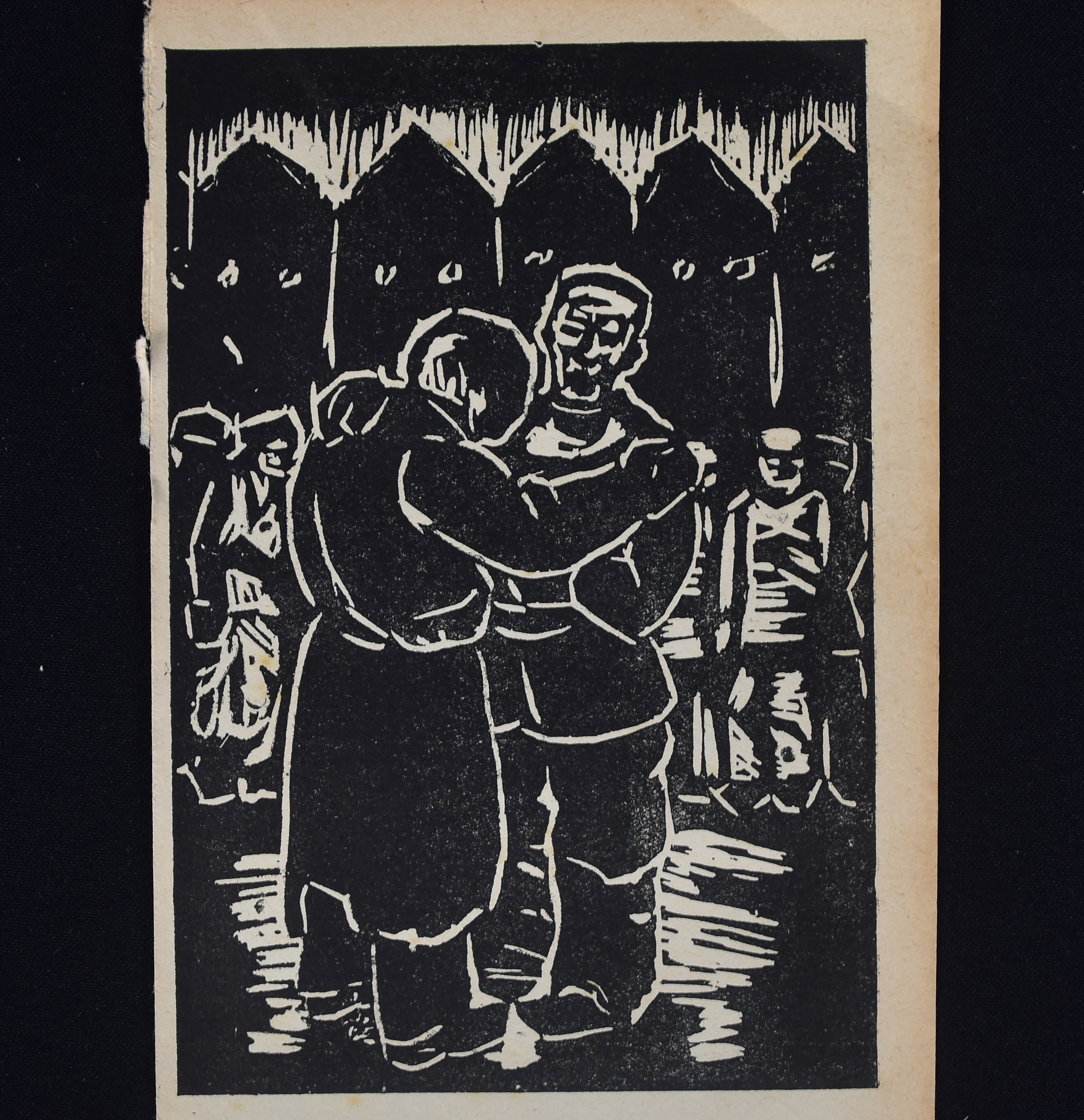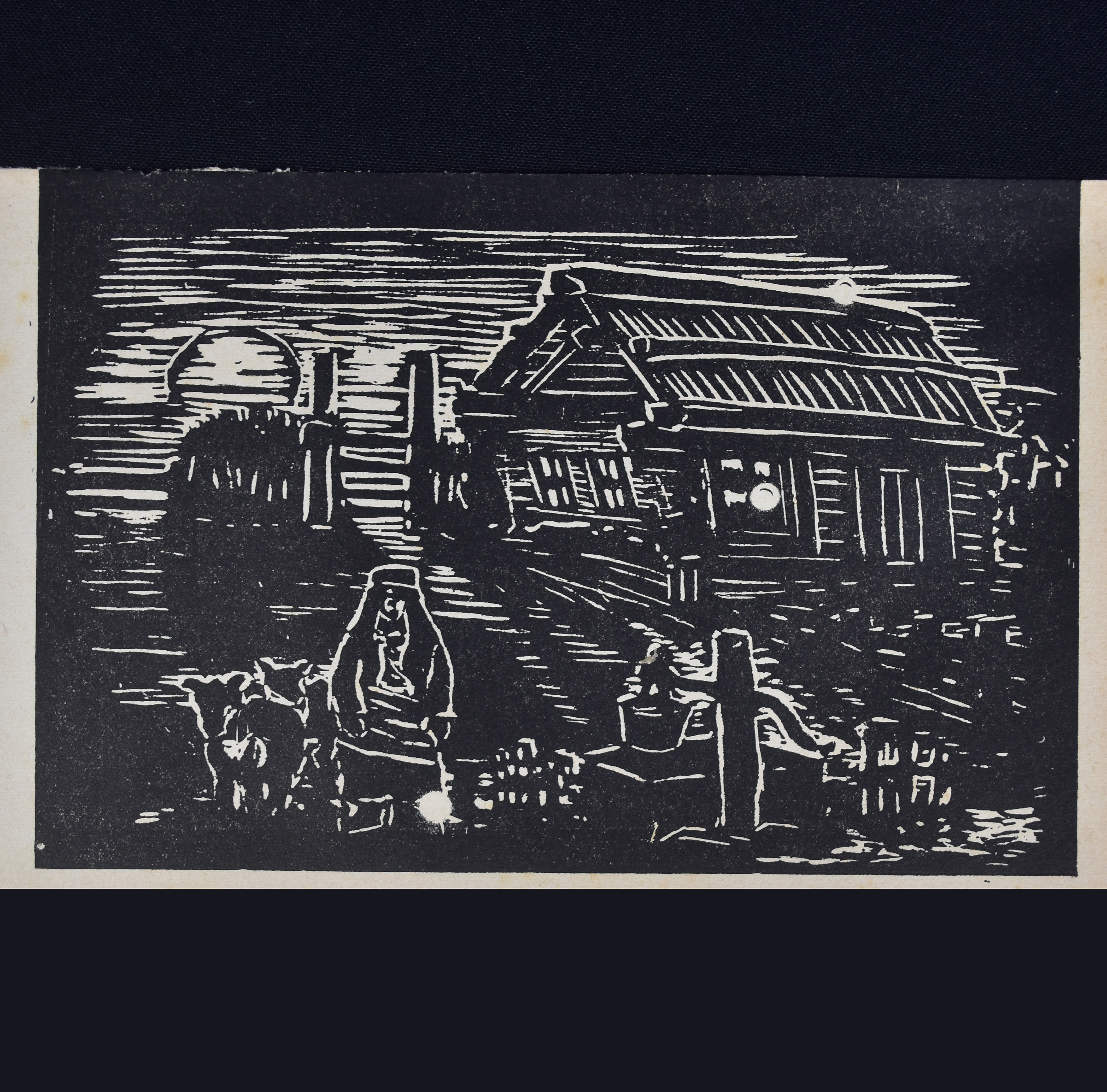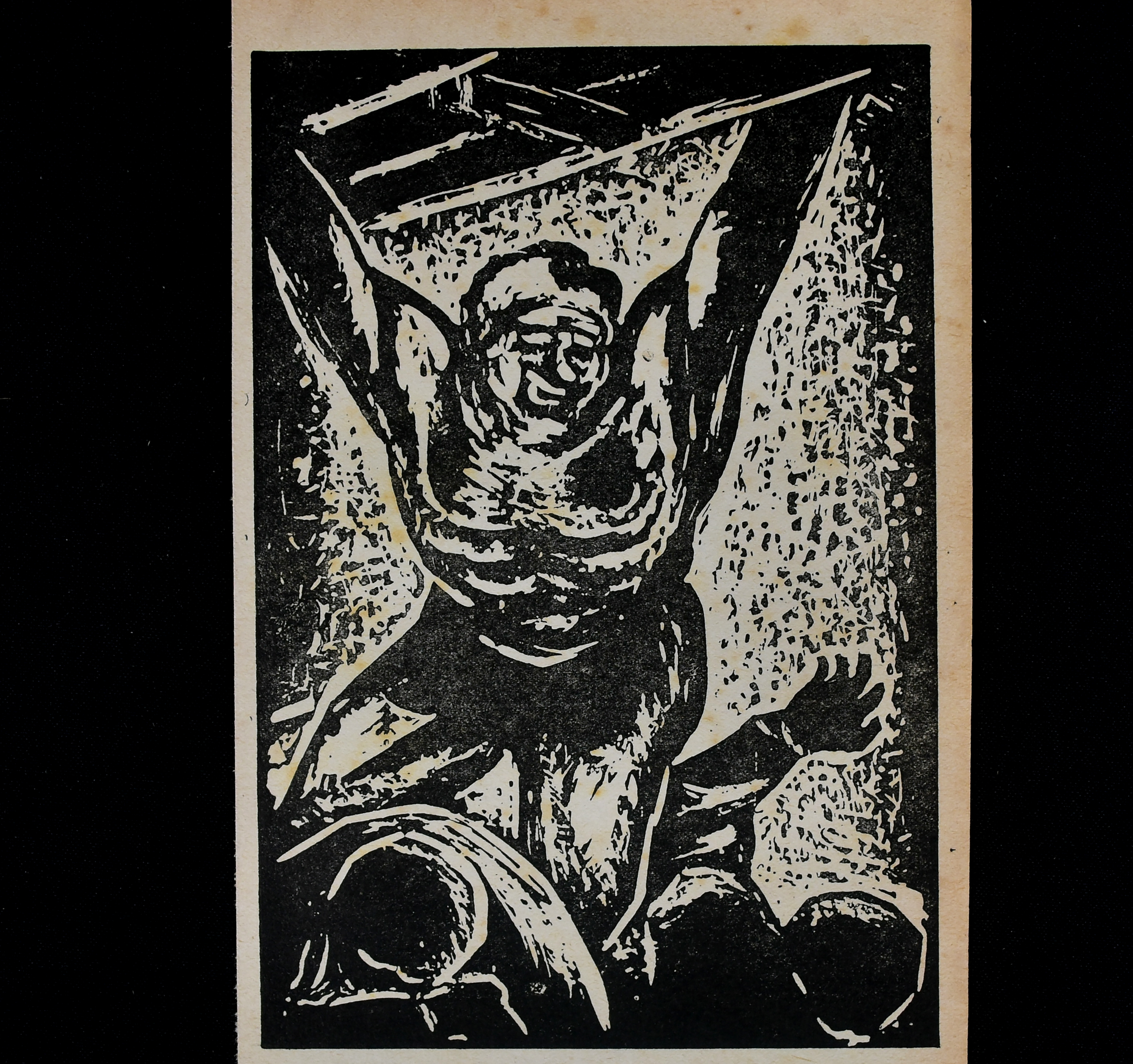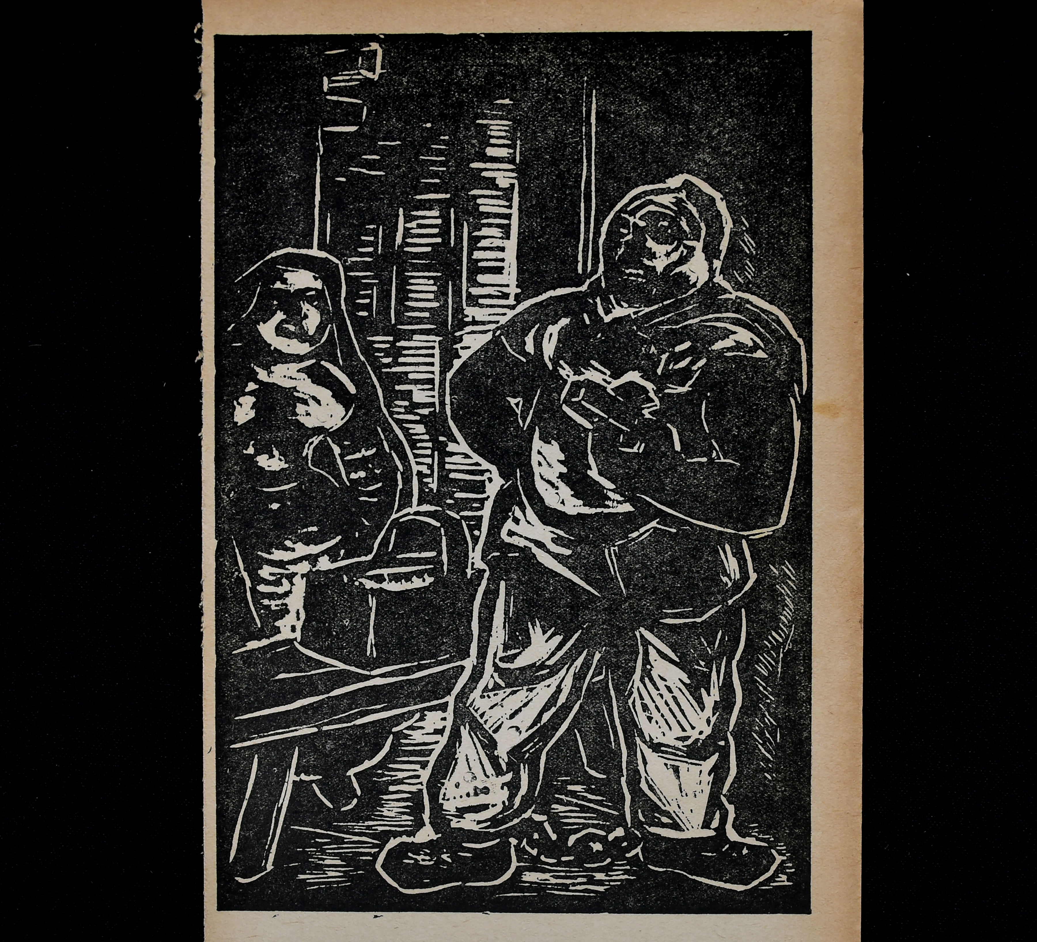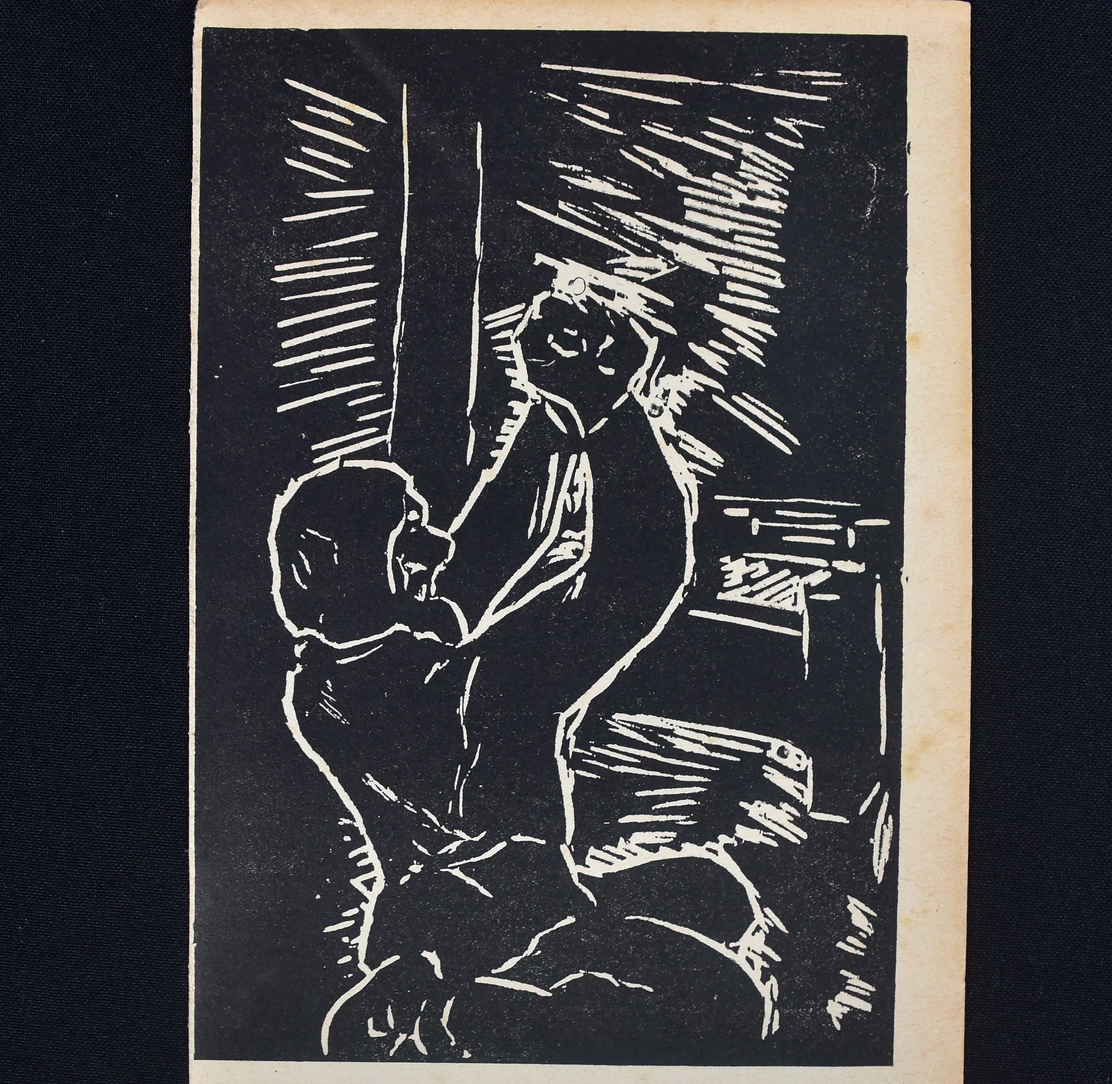 Oswaldo Goeldi Med. 14 x 23 cm. Clicheria, para as ilustrações do livro "Recordações da Casa dos Mortos" de Dostoiévski. Embora Goeldi tenha criado as obras originalmente como xilogravuras em madeira, a clicheria metálica que reproduzia fielmente o desenho entalhado