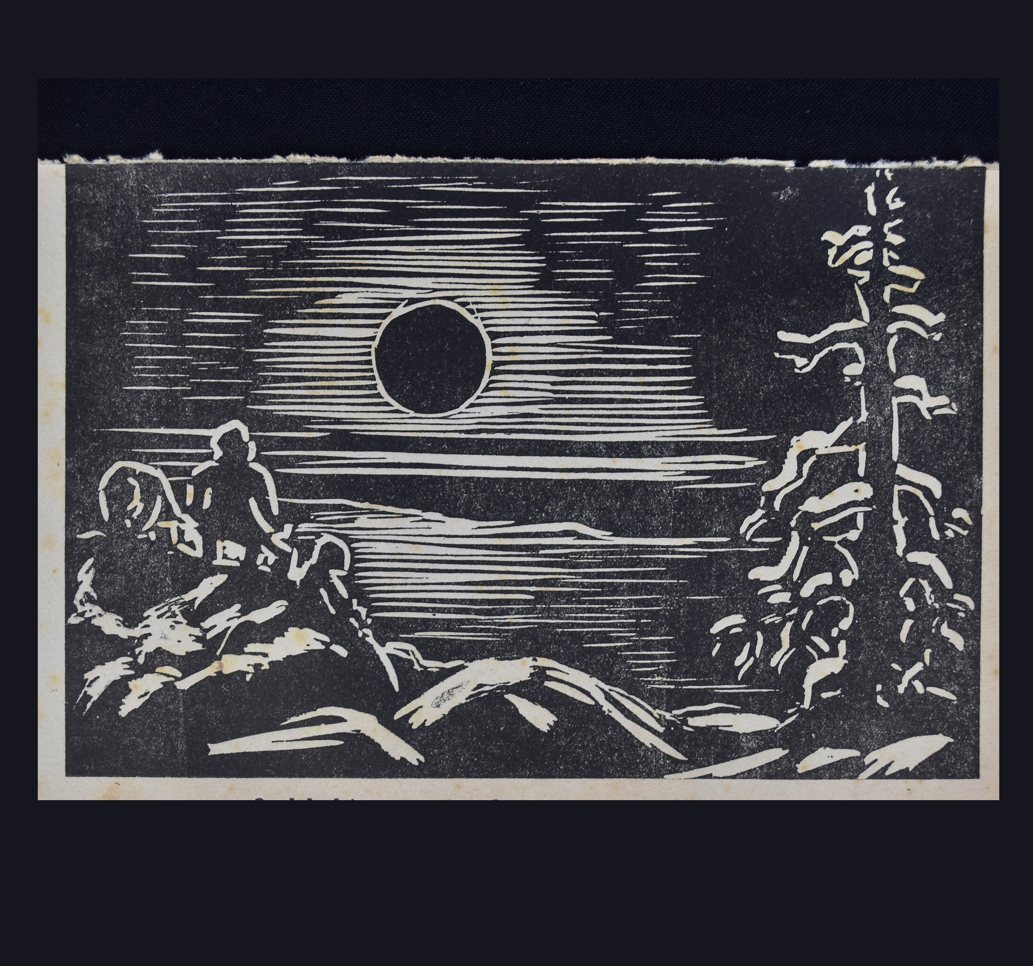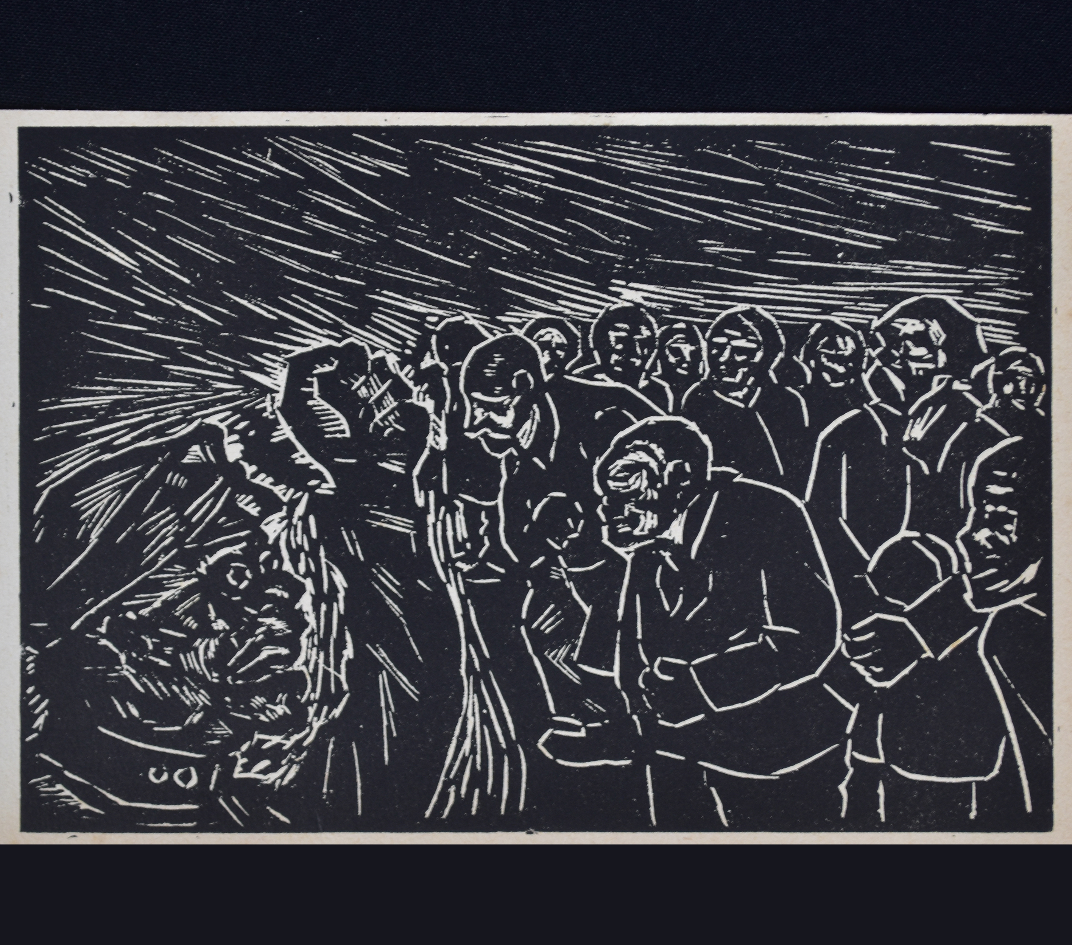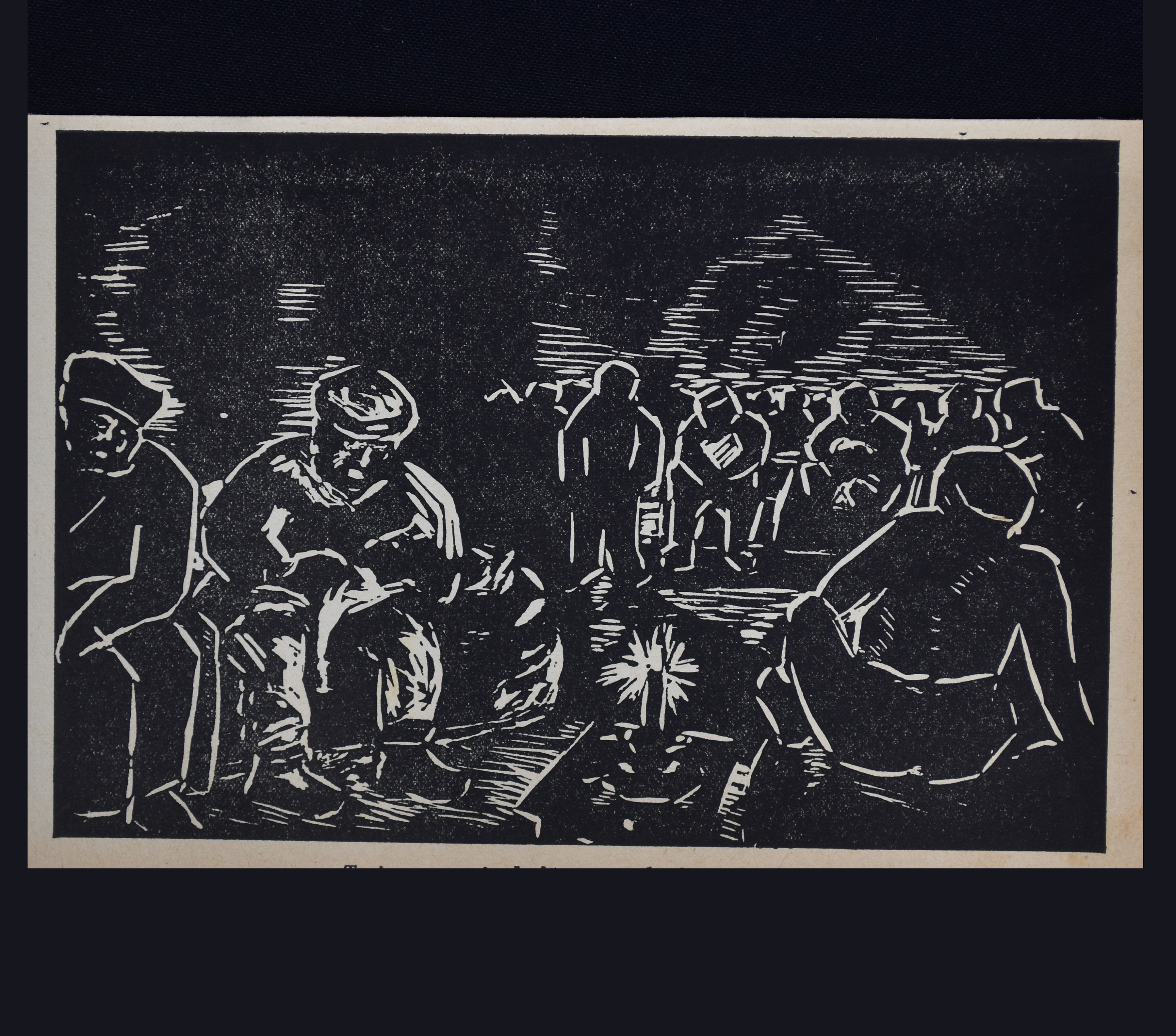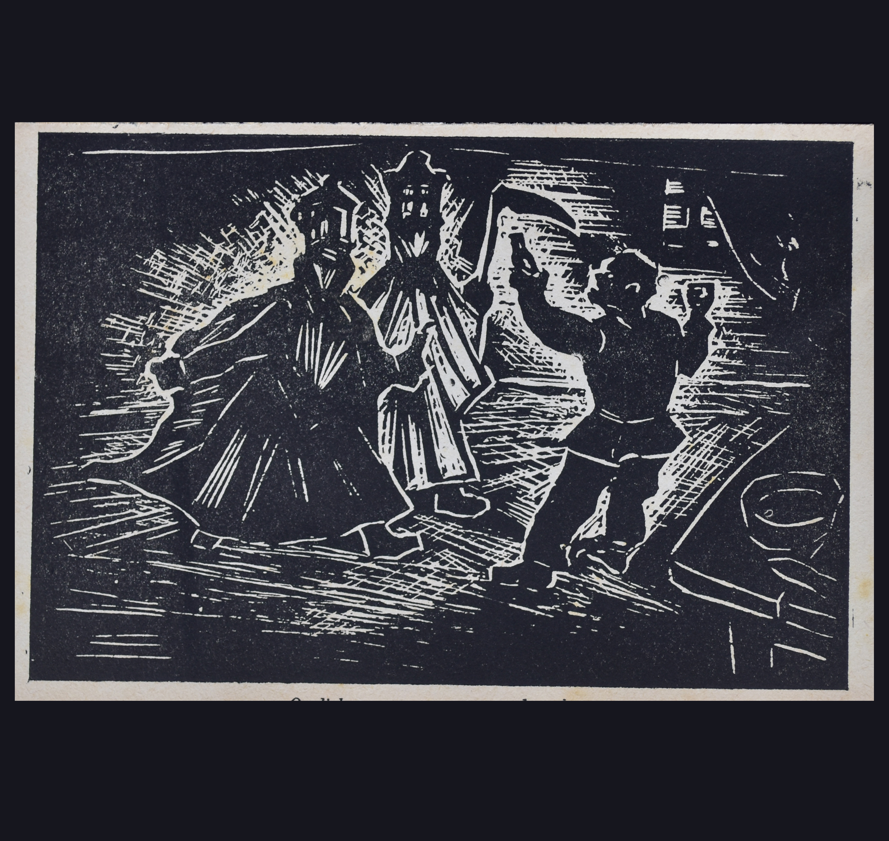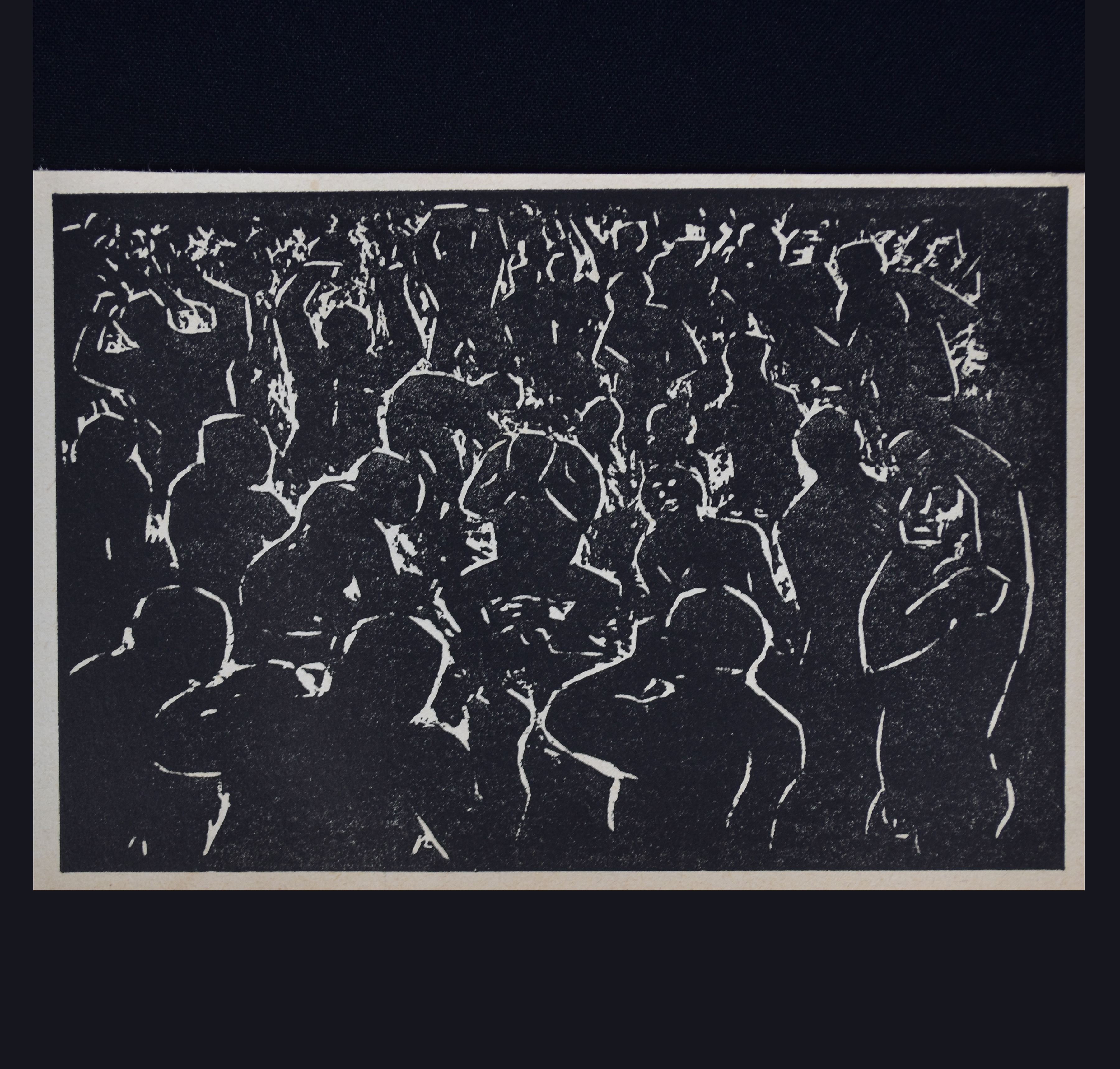 Oswaldo Goeldi Med. 14 x 23 cm. Clicheria, para as ilustrações do livro "Recordações da Casa dos Mortos" de Dostoiévski. Embora Goeldi tenha criado as obras originalmente como xilogravuras em madeira, a clicheria metálica que reproduzia fielmente o desenho entalhado