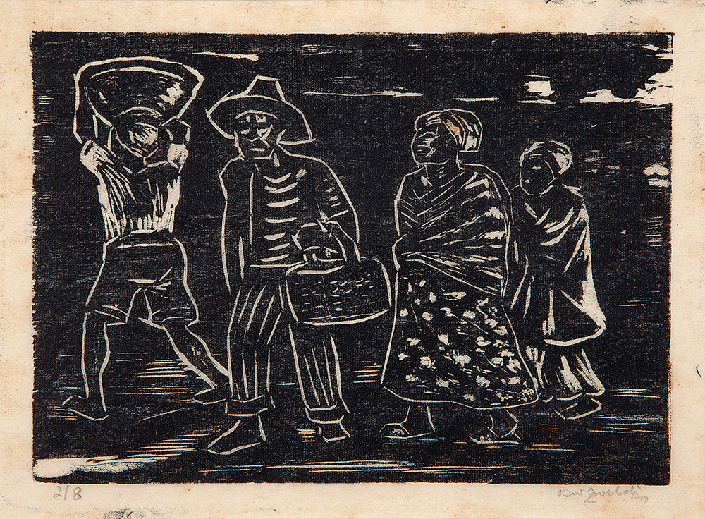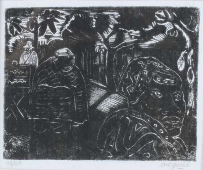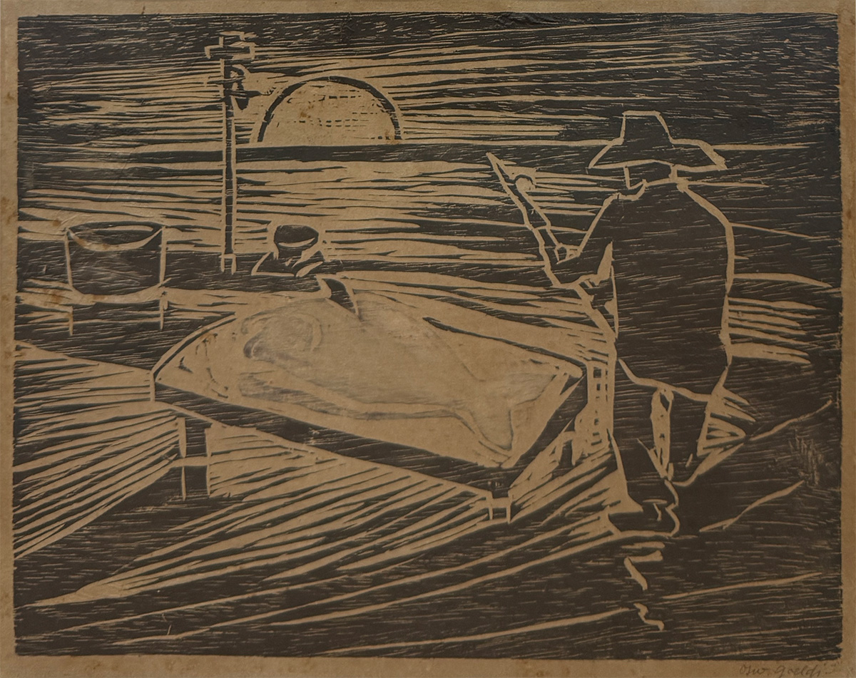 Oswaldo Goeldi - Mercado de peixes - Xilogravura sobre papel - Assinado canto inferior direito - 22 x 35 cm. Exemplar reproduzido no livro "Goeldi", Paulo Kuczynski escritório de arte, 2019, pág. 38. Exemplar reproduzido no catálogo "Goeldi - Luz noturna", Caixa Cultural, São Paulo, 2009, pág. 25. Exemplar reproduzido no catálogo da exposição "Goeldi - O encantador das sombras", Centro Cultural Correios, Rio de Janeiro, 2010, pág. 25. Exemplar reproduzido no catálogo da exposição "Oswaldo Goeldi - Soturno Caminhante", exposição itinerante, 2013, pág. 23.
