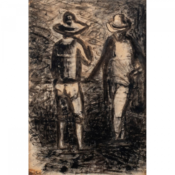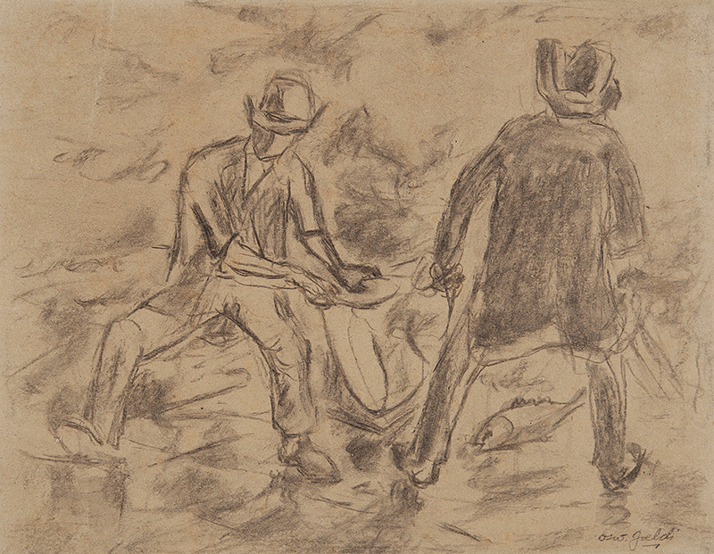 Oswaldo Goeldi - Piranhas - c. 1933 - Carvão sobre cartão - Assinado canto inferior direito - 23 x 27 cm. Reproduzido no livro "Goeldi", Paulo Kuczynski escritório de arte, 2019, pág. 18.