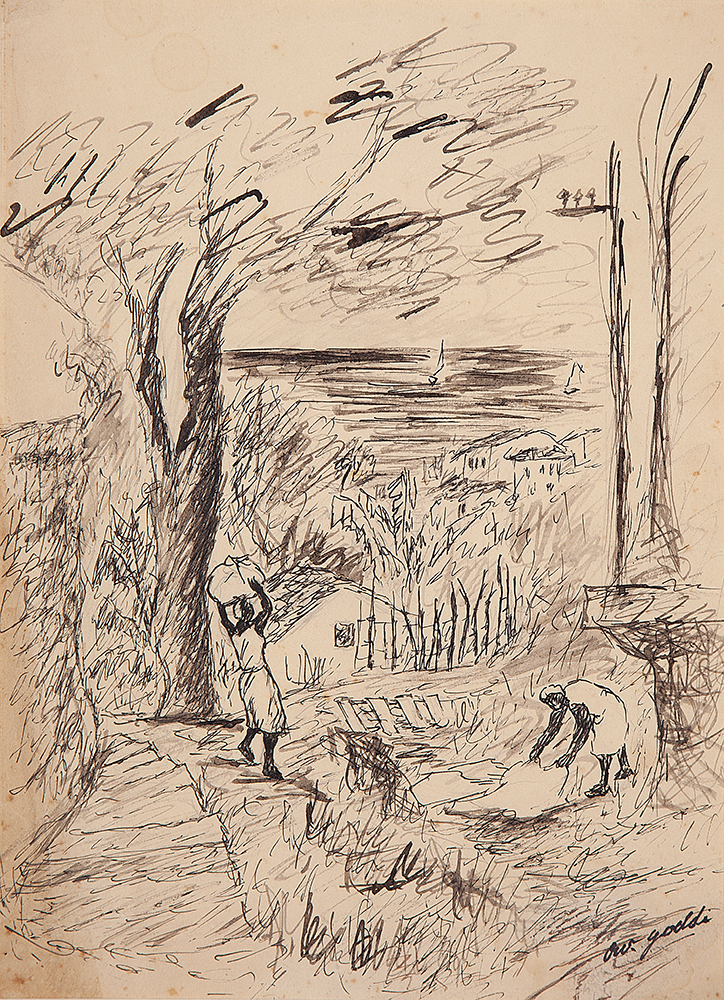 Oswaldo Goeldi - Instante aterrador - Nanquim e bico de pena sobre papel - Assinado canto inferior direito - 20 x 24 cm.