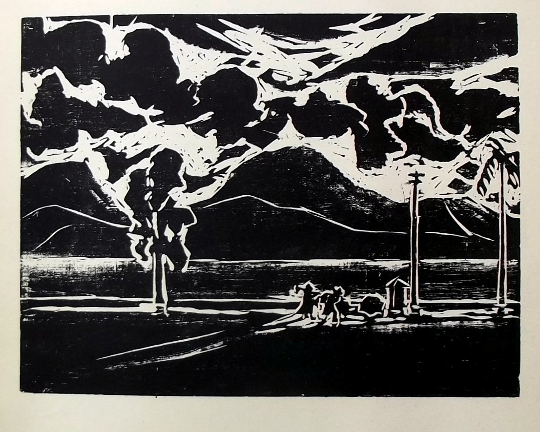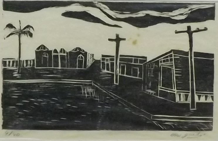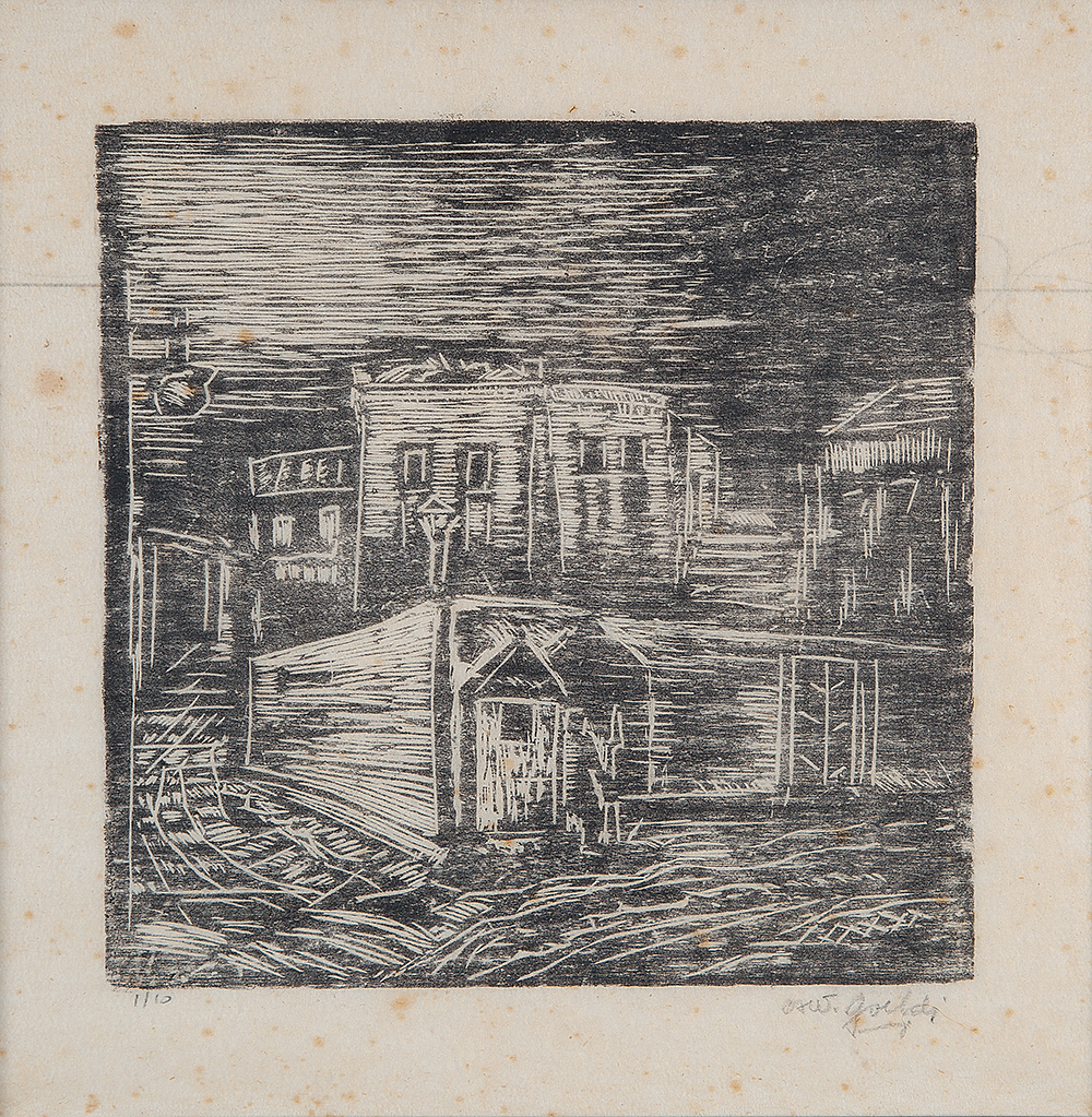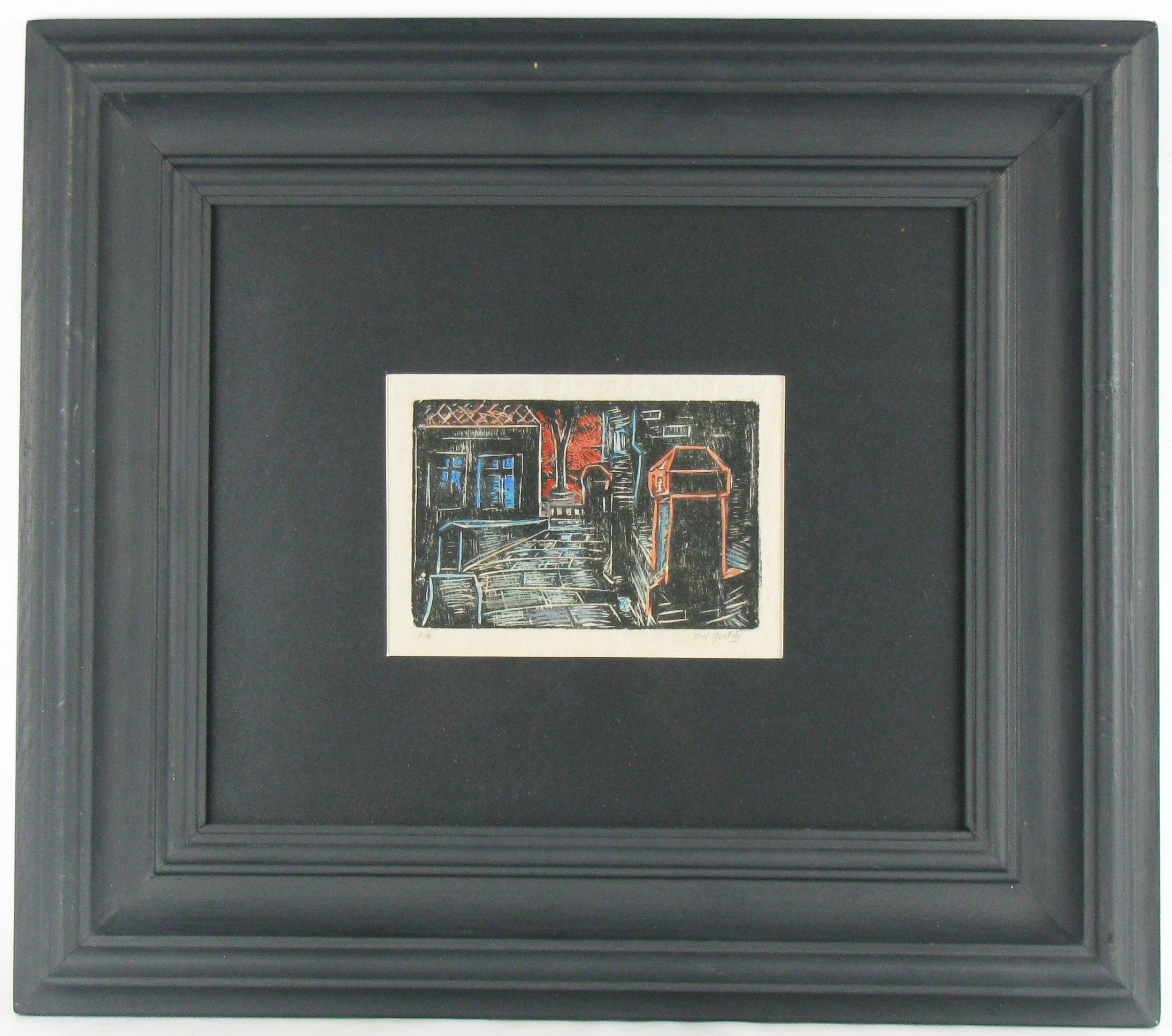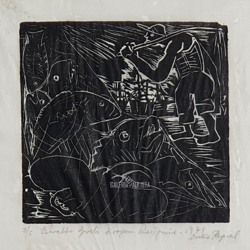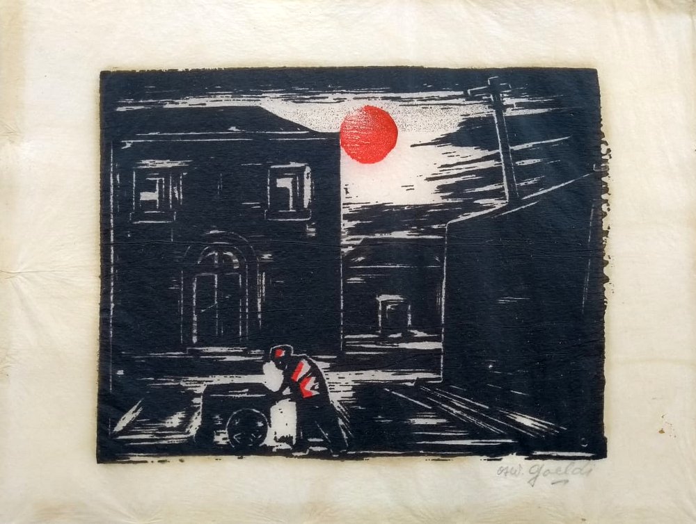 OSWALDO GOELDI "S/ Titulo" Xilogravura S/ Papel de Arroz -Exemplar 1/3 -Med 15x20 cm (MI) 39x30 cm (Mold) -Da Primeira Tiragem Póstuma de Oswaldo Goeldi de 1971 por Beatriz Reynal -Titulada, Numerada, Catalogada e Assinada no Centro por Beatriz Reynal -Com moldura em alumínio de época, paspartur e vidro de proteção.