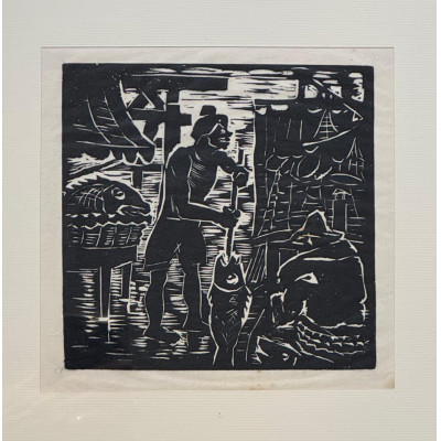 Oswaldo Goeldi - Pescador - xilogravura - 1/12 - ass. cid - c. 1929 - obra dessa edição reproduzida no livro Oswaldo Goeldi na Coleção Hermann Kummerly pg. 190 - 20x20 cm.