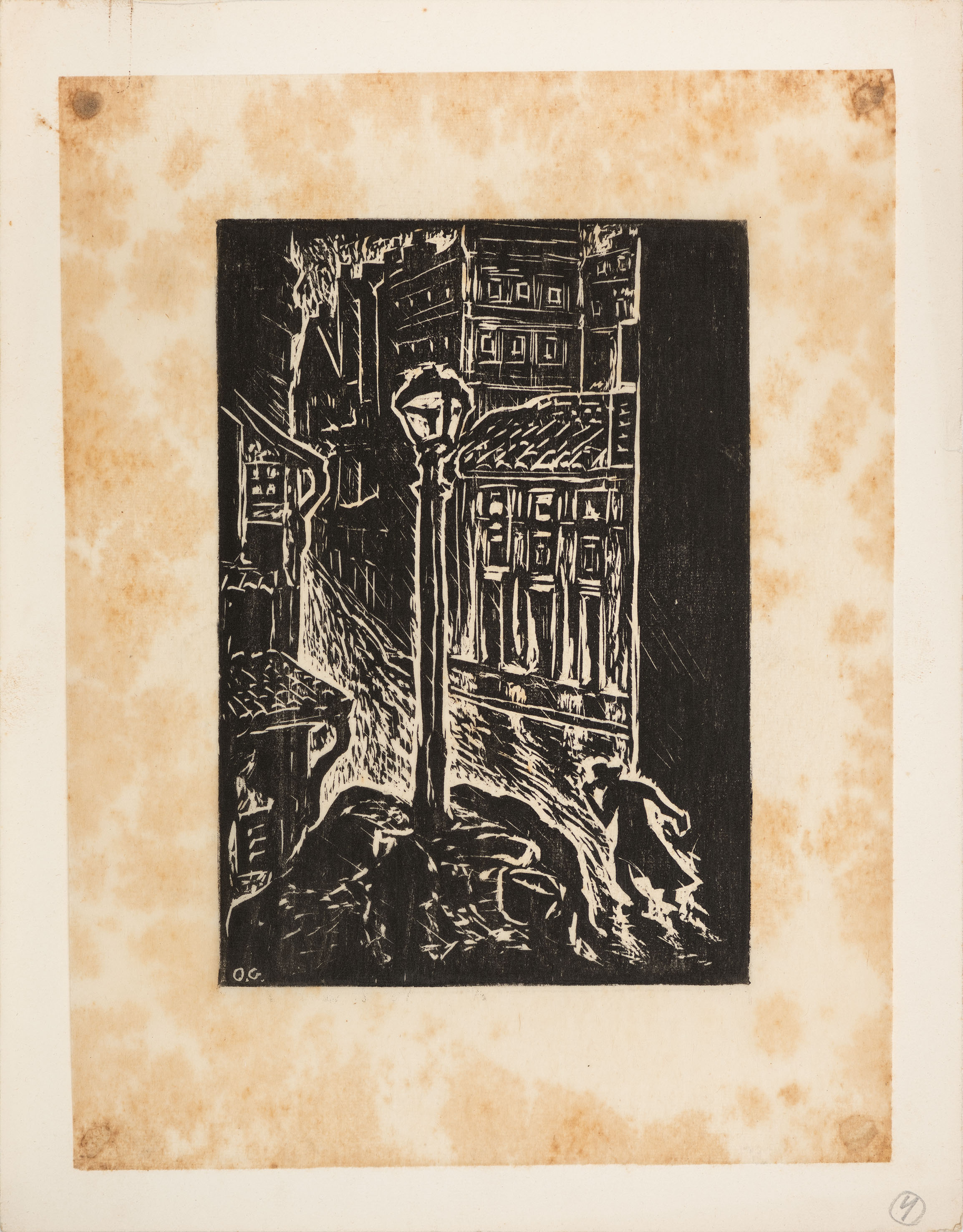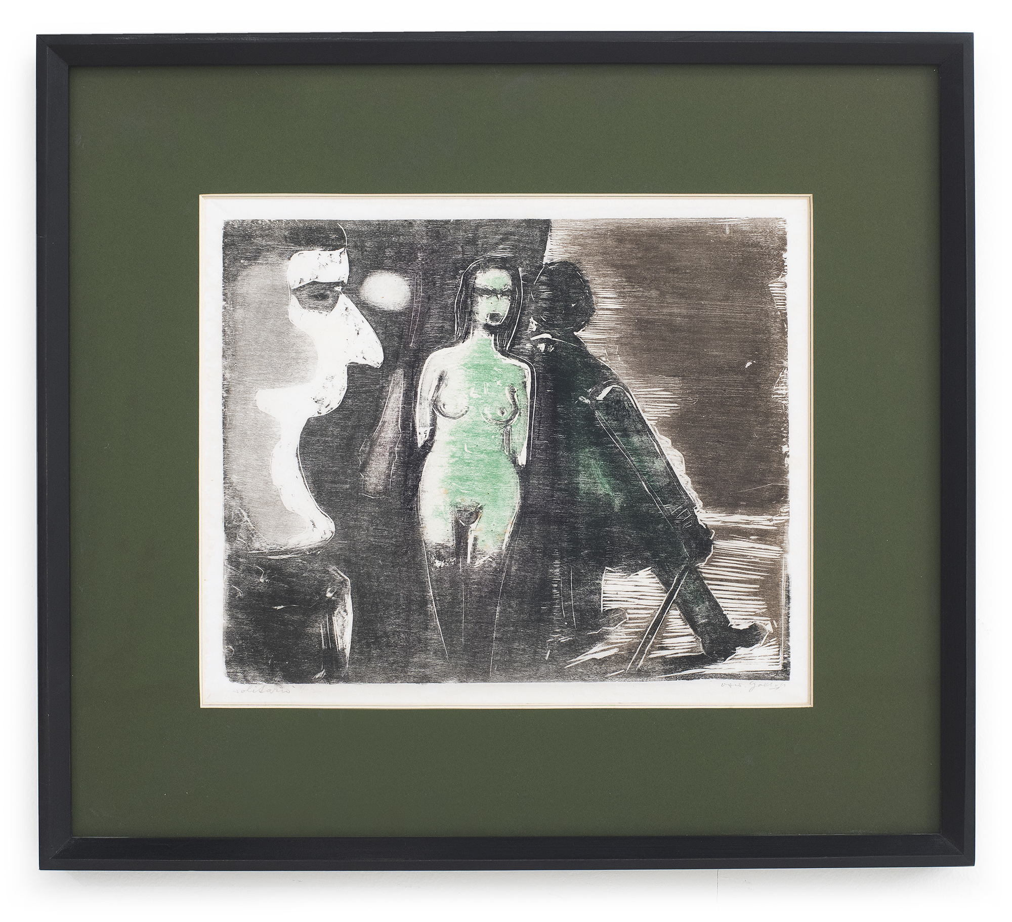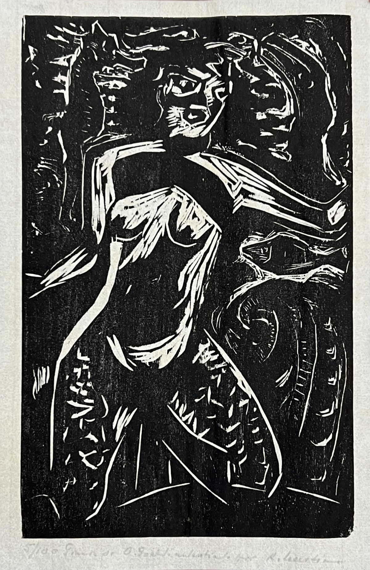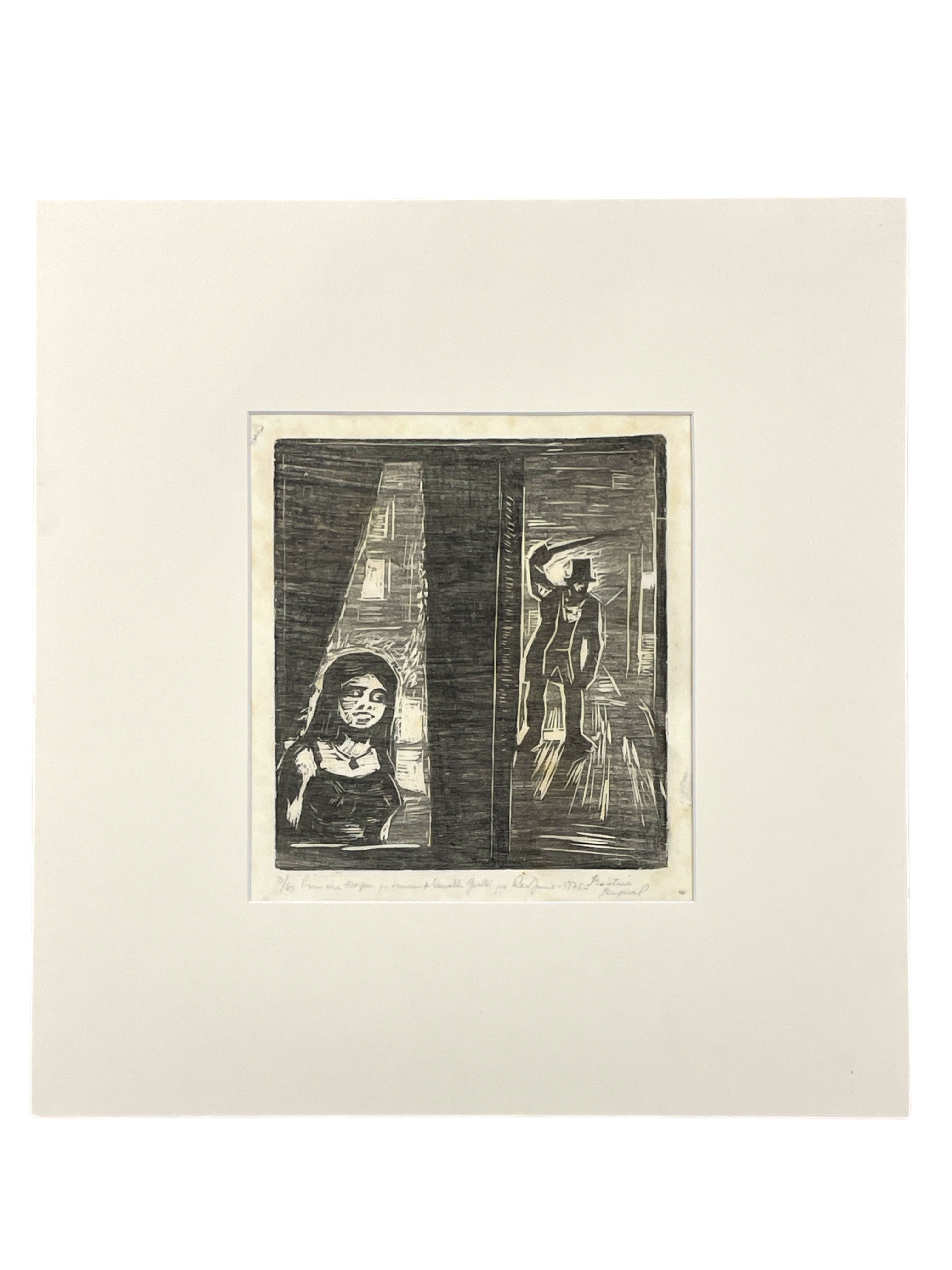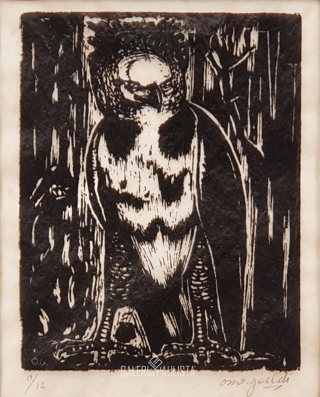 OSWALDO GOELDI "S/ Titulo" Xilogravura S/ Papel de Arroz -Exemplar 1/3 -Med 20x15 cm (MI) 39x30 cm (Mold) -Da Primeira Tiragem Póstuma de Oswaldo Goeldi de 1971 por Beatriz Reynal -Titulada, Numerada, Catalogada e Assinada no Centro por Beatriz Reynal -Com moldura em alumínio de época, paspartur e vidro de proteção.
