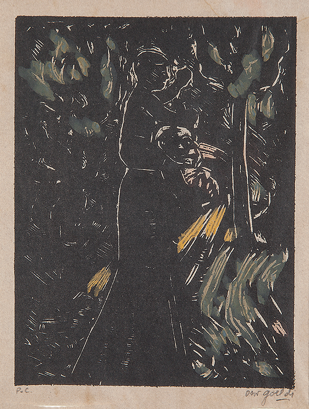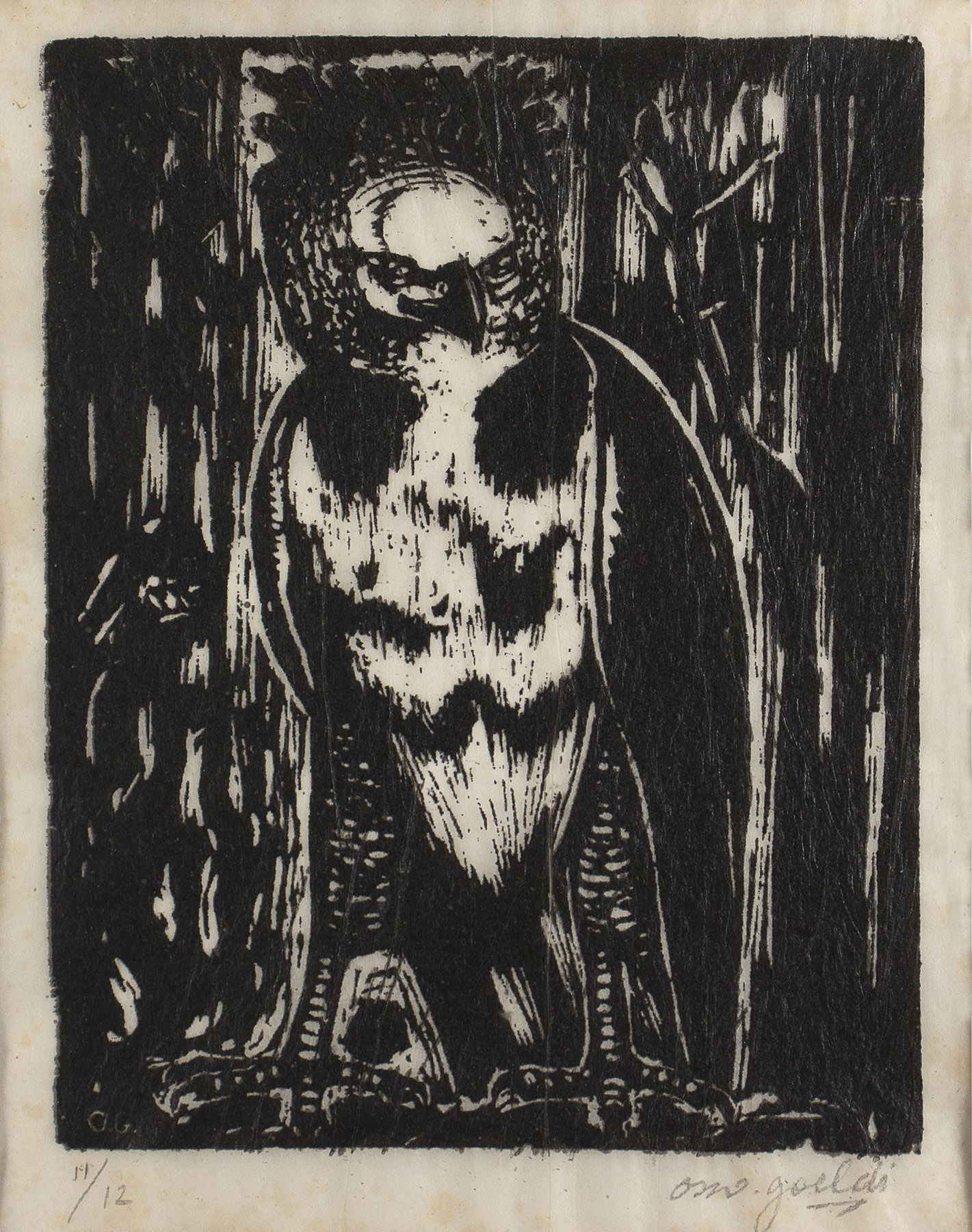 OSWALDO GOELDI "S/ Titulo" Xilogravura S/ Papel de Arroz -Exemplar 1/3 -Med 20x15 cm (MI) 39x30 cm (Mold) -Da Primeira Tiragem Póstuma de Oswaldo Goeldi de 1971 por Beatriz Reynal -Titulada, Numerada, Catalogada e Assinada no Centro por Beatriz Reynal -Com moldura em alumínio de época, paspartur e vidro de proteção.