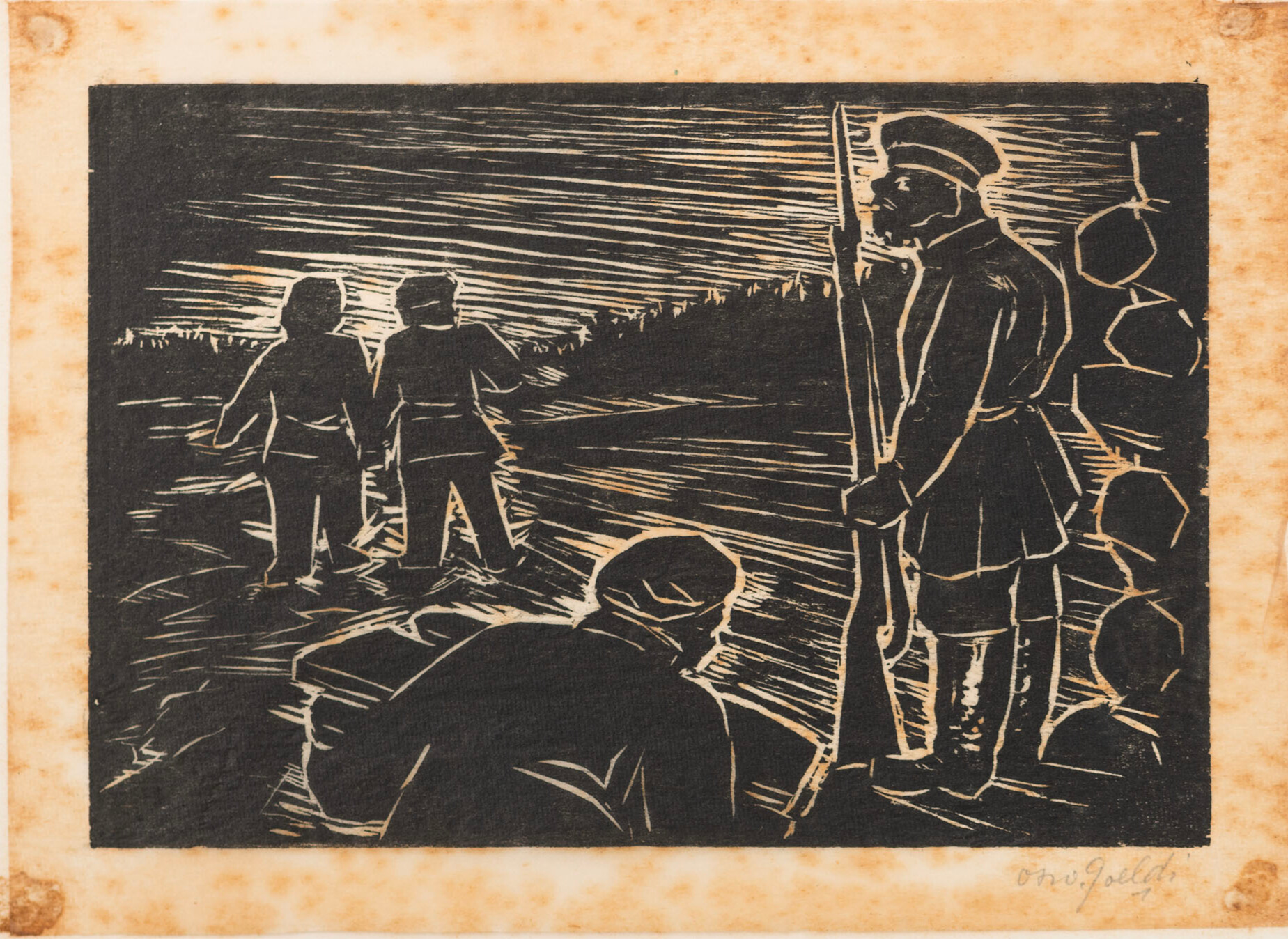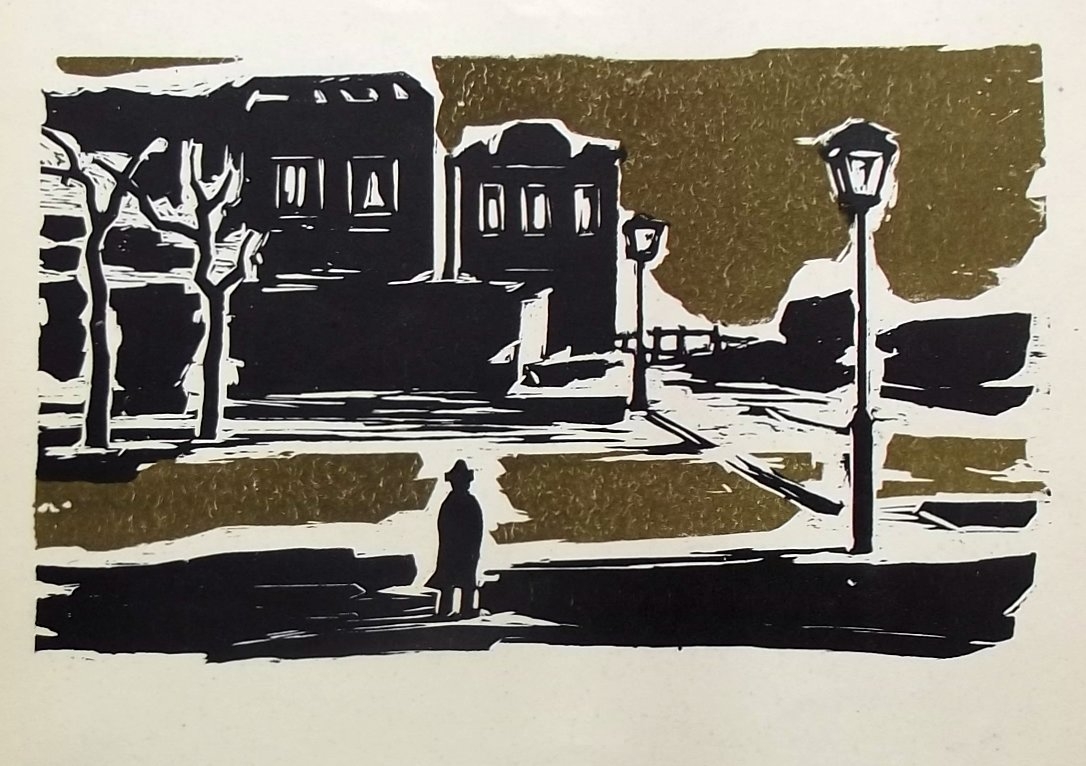 OSWALDO GOELDI "S/ Titulo" Xilogravura S/ Papel de Arroz -Exemplar 1/3 -Med 15x20 cm (MI) 39x30 cm (Mold) -Da Primeira Tiragem Póstuma de Oswaldo Goeldi de 1971 por Beatriz Reynal -Titulada, Numerada, Catalogada e Assinada no Centro por Beatriz Reynal -Com moldura em alumínio de época, paspartur e vidro de proteção.