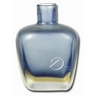 ATRÍBUIDO PAOLO VENINI - Sofisticada garrafa em vidro de Murano de tonalidade ametista, adornada com delicadas partículas de ouro em suspensão no corpo da peça. De forma alongada e refinada, exemplifica a excelência técnica e estética da manufatura Venini & Co., uma das mais prestigiadas de Murano. Dimensões: Altura 48,5 cm × Diâmetro 7 cm