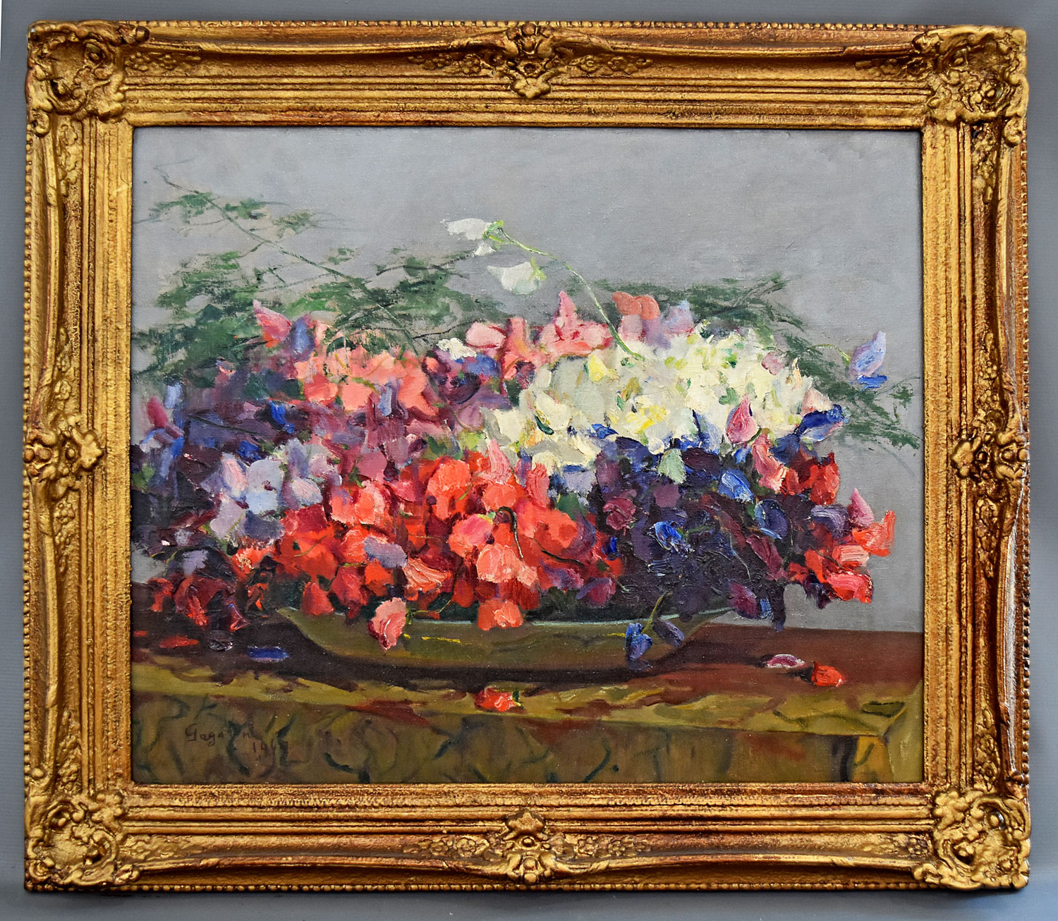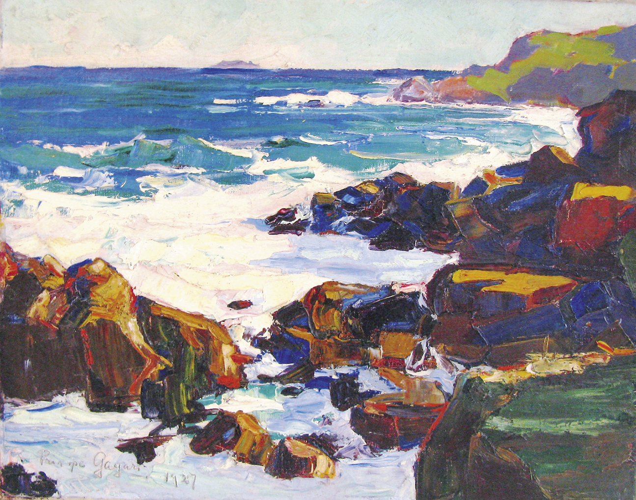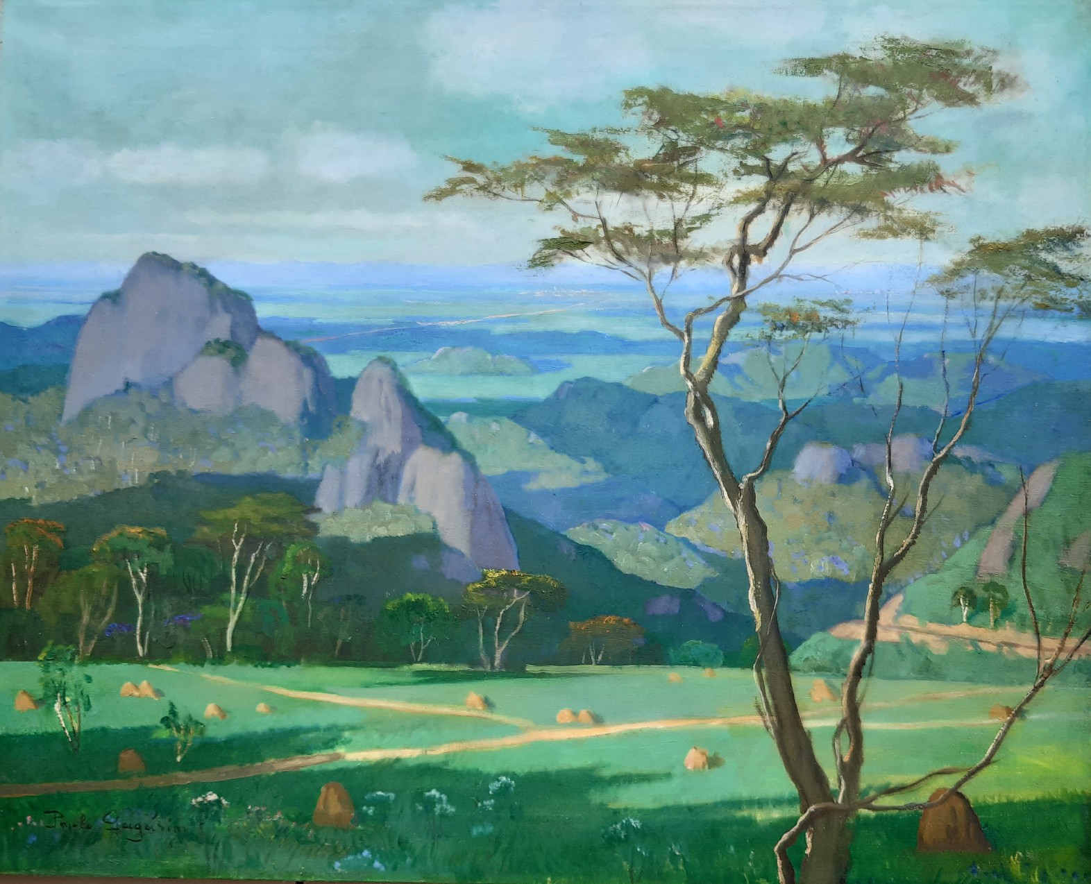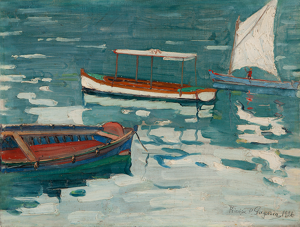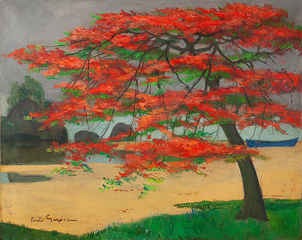 Pintor. Paulo Gagarin (1885: São Petesburgo, Rússia – 1980: Rio de Janeiro, RJ). Artista autodidata encantou-se com a exuberância da flora tropical e as cores do litoral brasileiro, que representou num estilo próximo dos pós-impressionistas. Em 1900 estudou na universidade de sua cidade natal. Serviu no exército russo, na Europa e na Ásia, entre 1911 e 1914. Nos anos de 1914 a 1918 combateu nas fileiras russas durante a Primeira Guerra Mundial. Emigrou para a França, em 1919, após o triunfo da revolução socialista de 1917, que implicou a derrocada do czarismo. Chegou ao Brasil em 1921, como copeiro do navio Pelotas, acompanhando o destino da maioria dos refugiados políticos russos da sua condição.