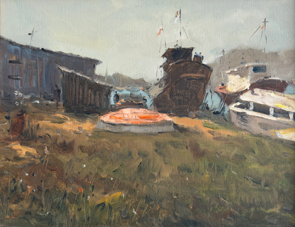 Paulo Marinho - Estaleiro, Ilha da Conceição - RJ - 27 x 35 cm - Óleo Sobre Tela - Ass. Verso e Dat. 1986