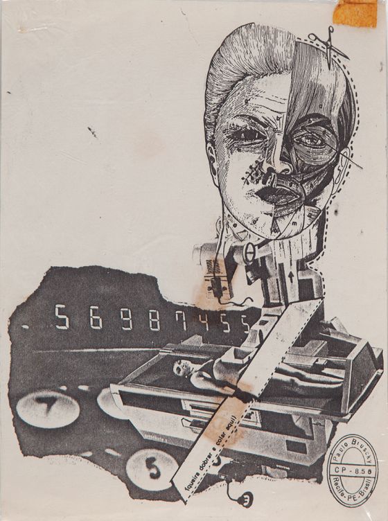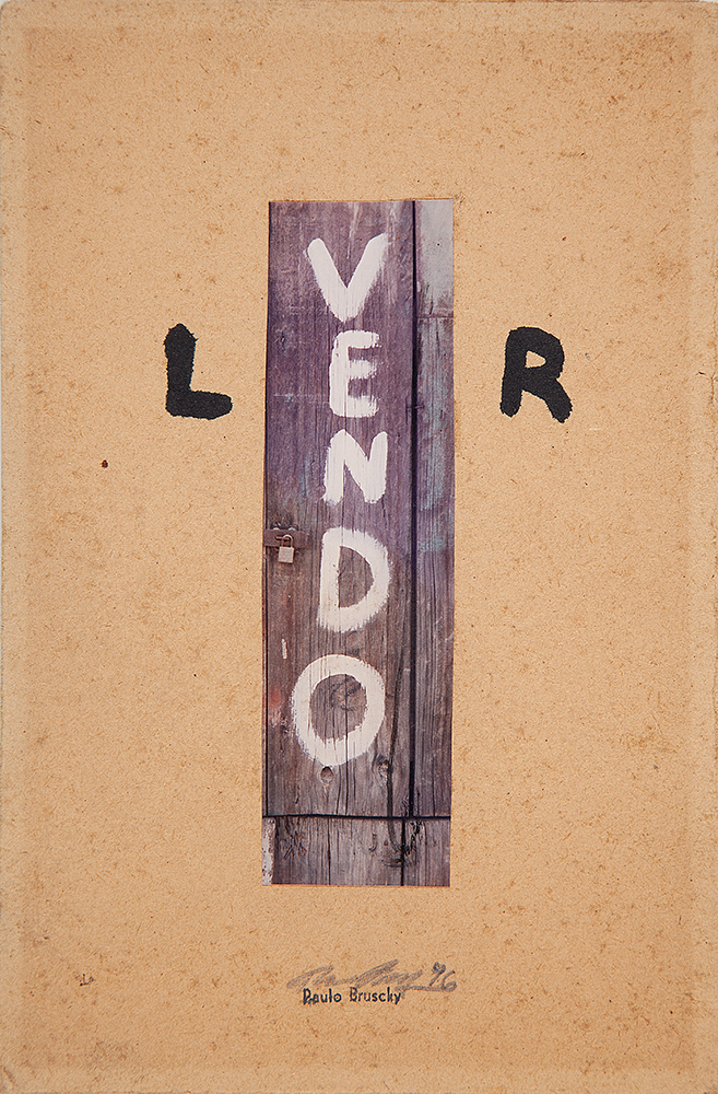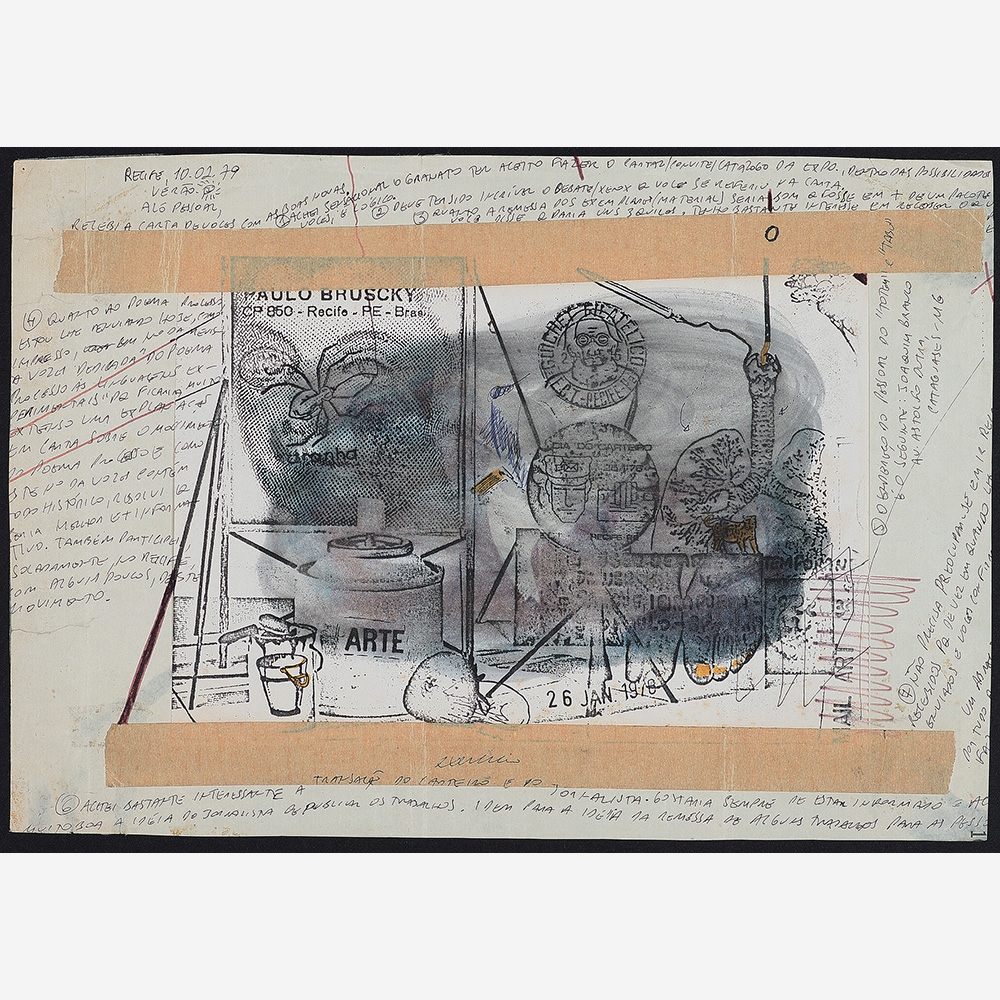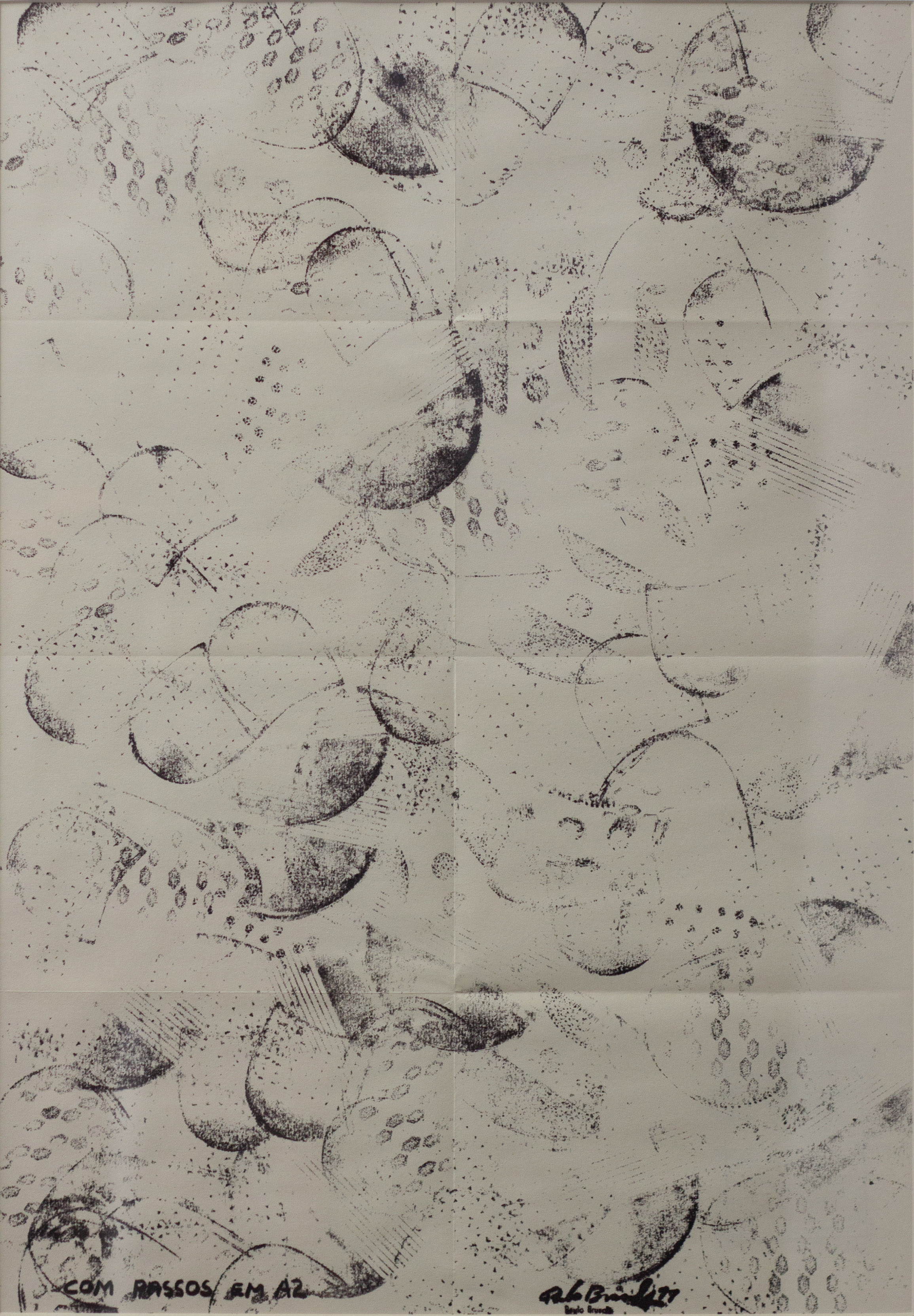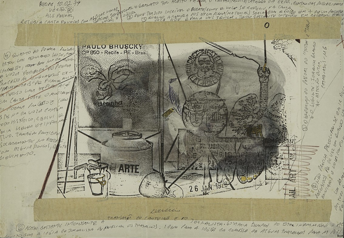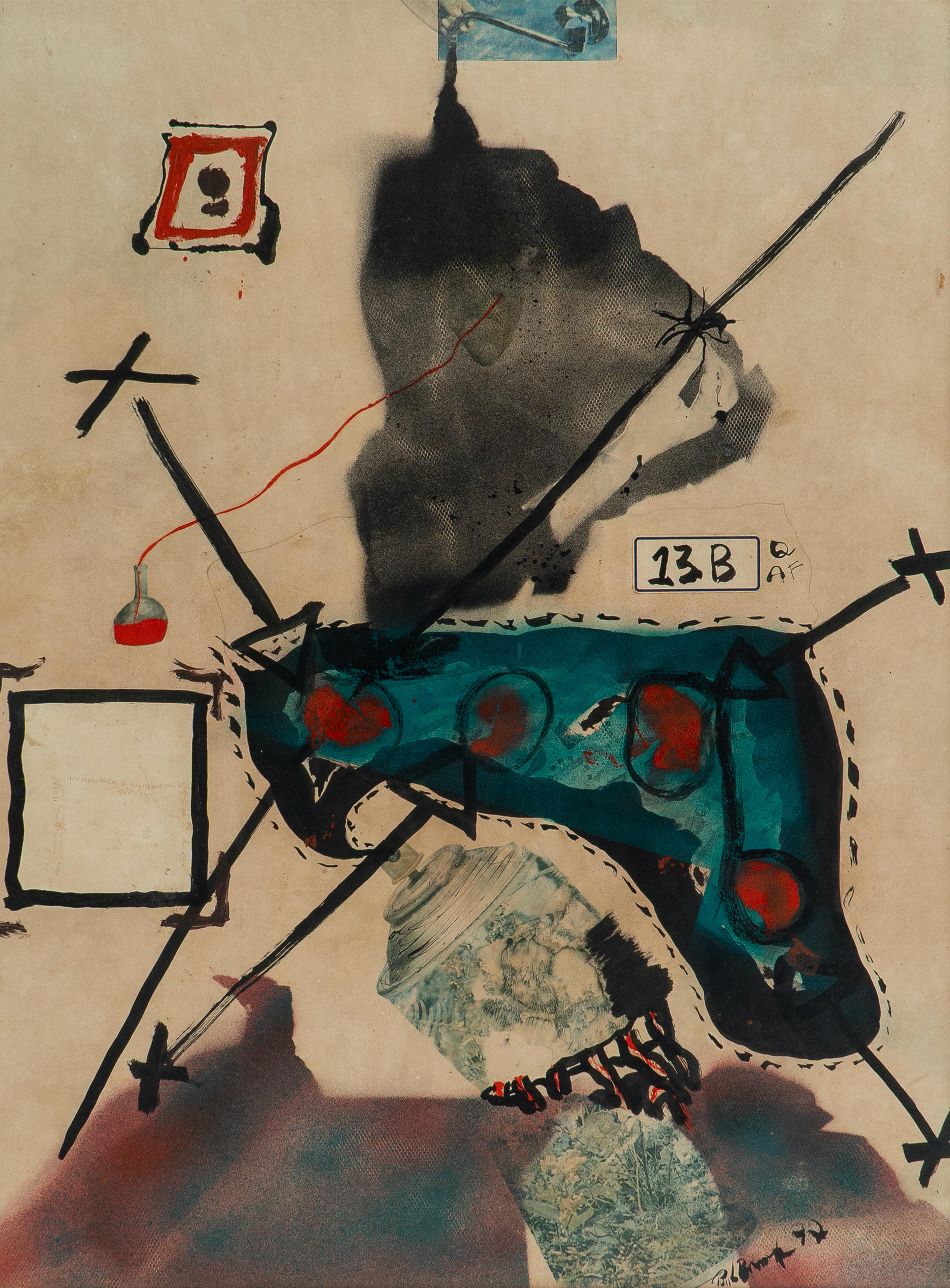 Paulo Bruscky - Sem titulo - 1977 - Spray, guache e colagem sobre cartão - Assinado canto inferior direito - 77 x 57 cm.