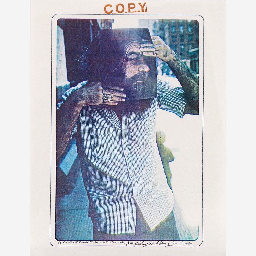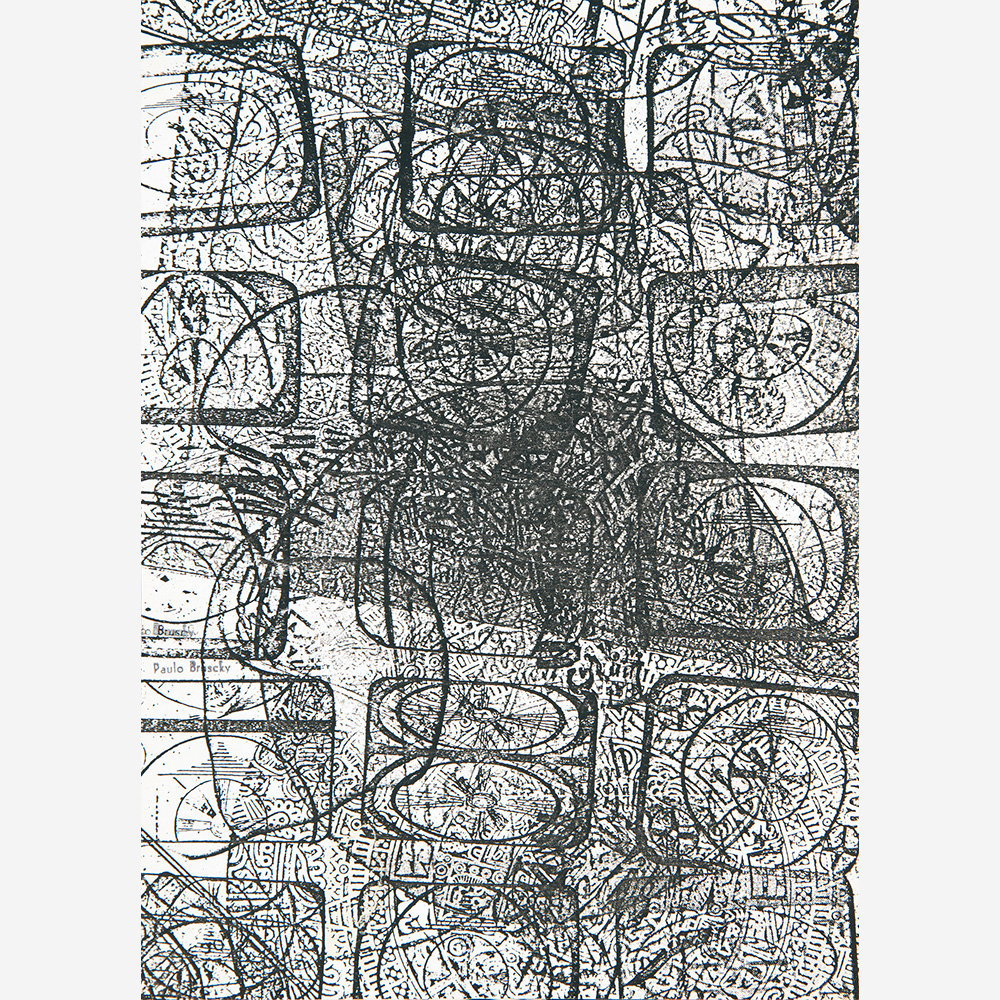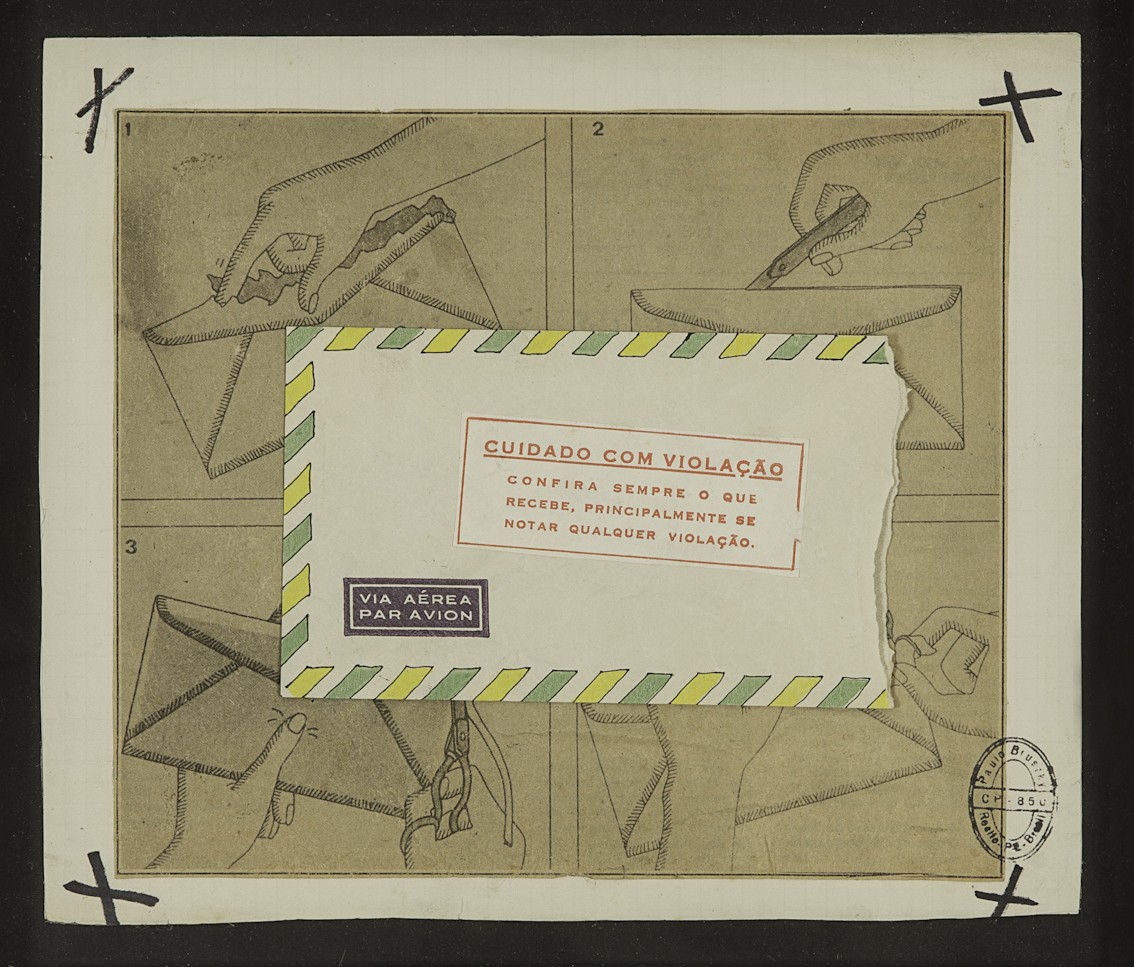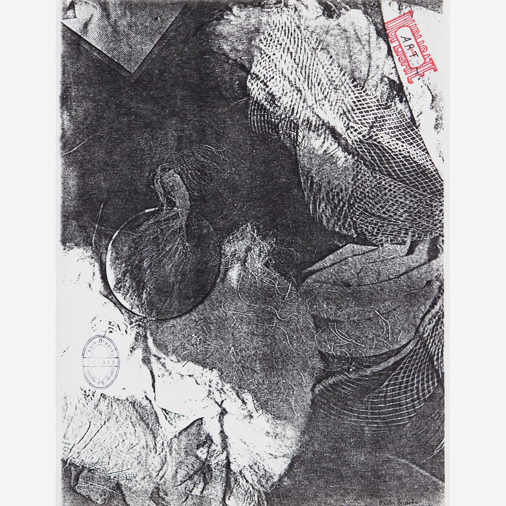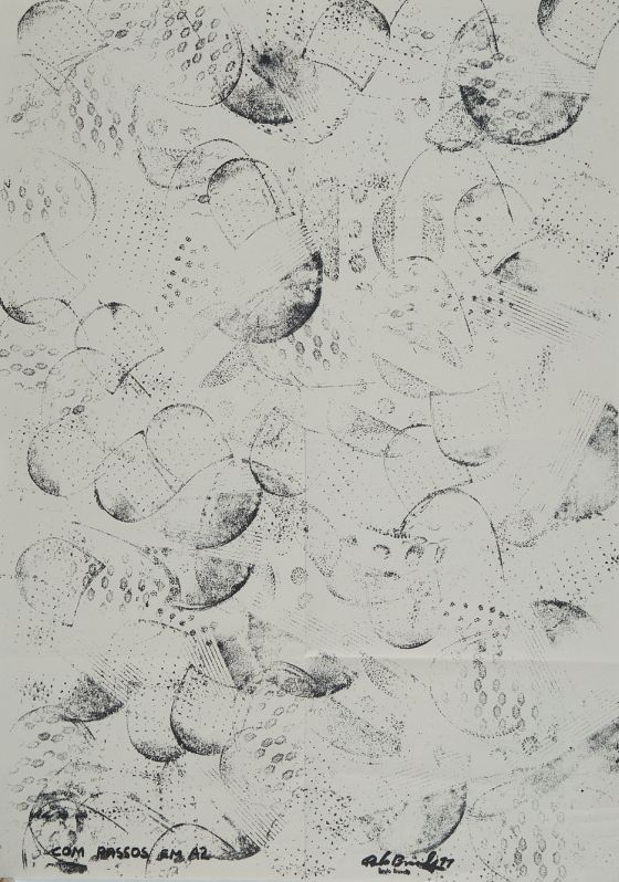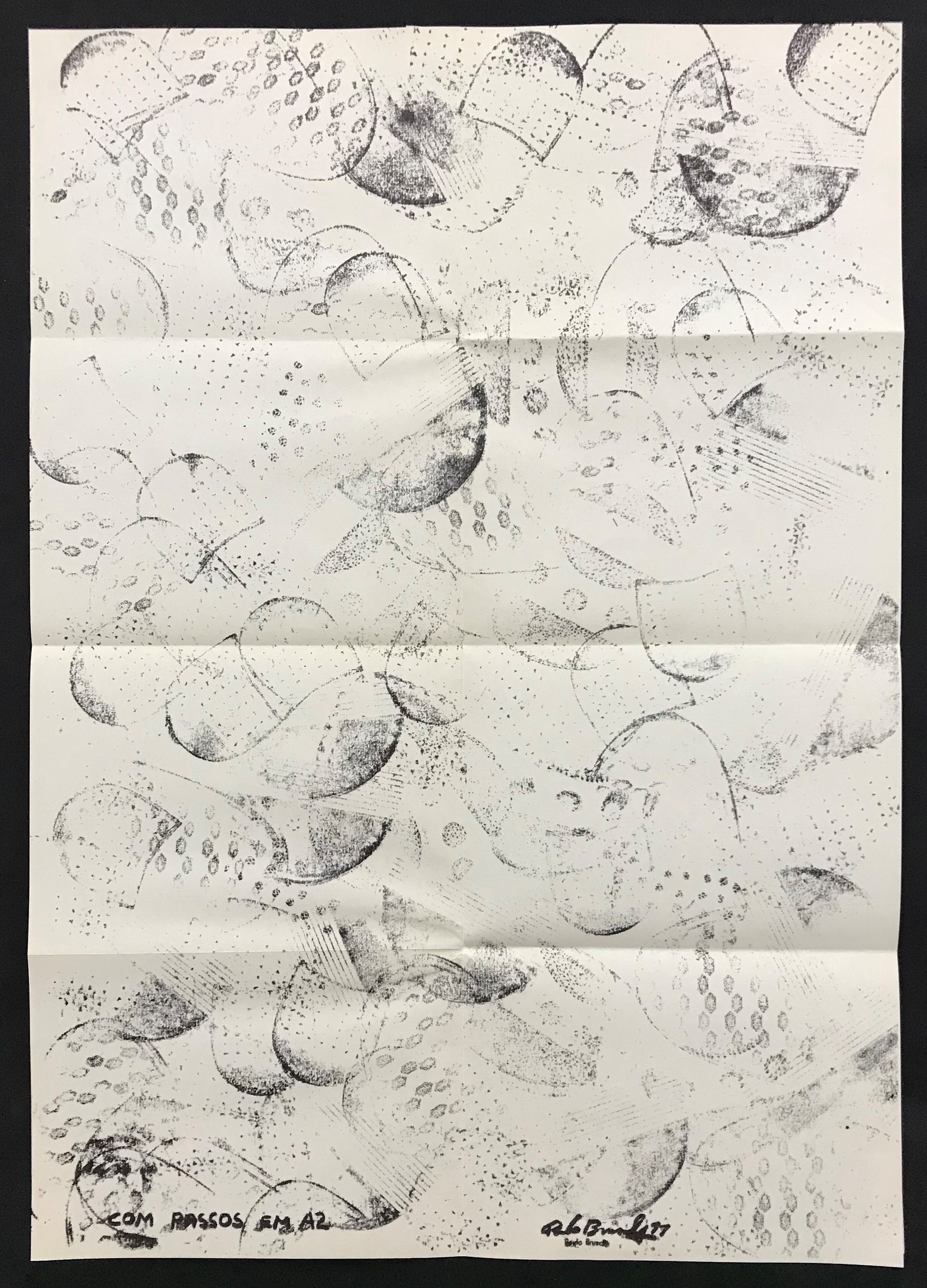 Paulo Bruscky - Sem titulo - 1977 - Spray, guache e colagem sobre cartão - Assinado canto inferior direito - 77 x 57 cm.