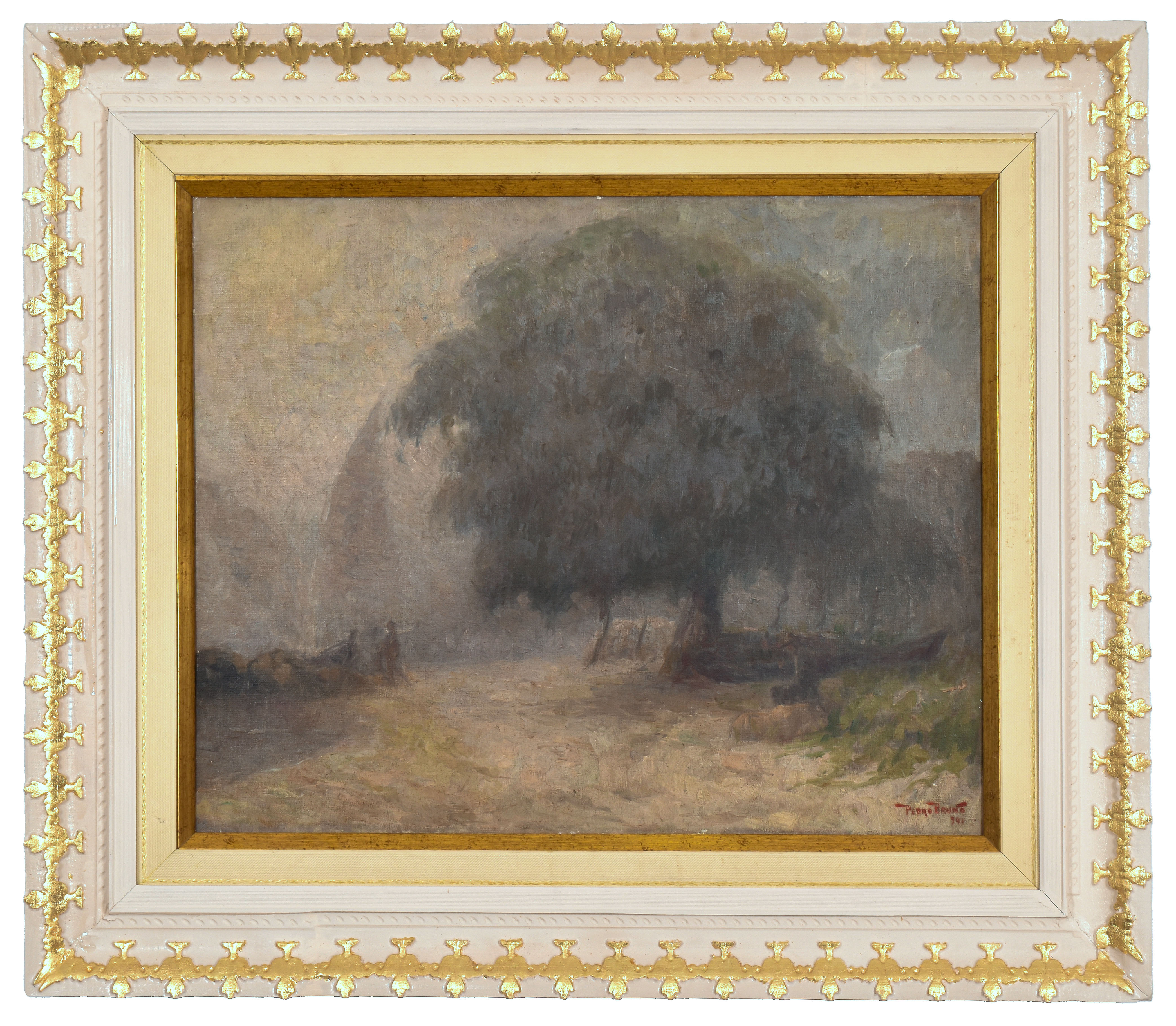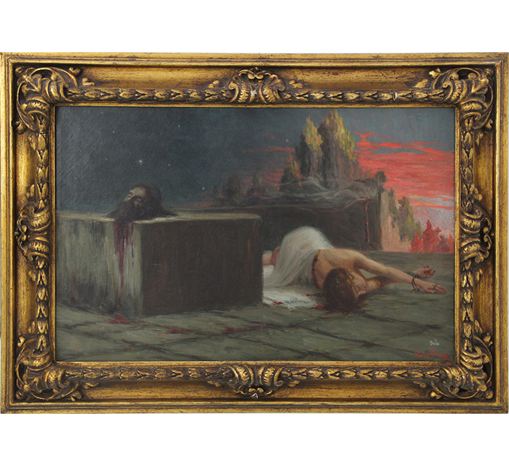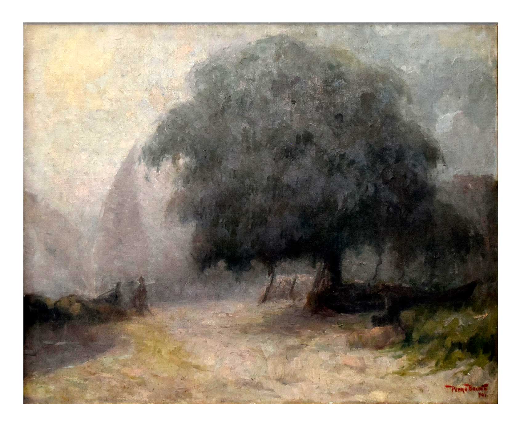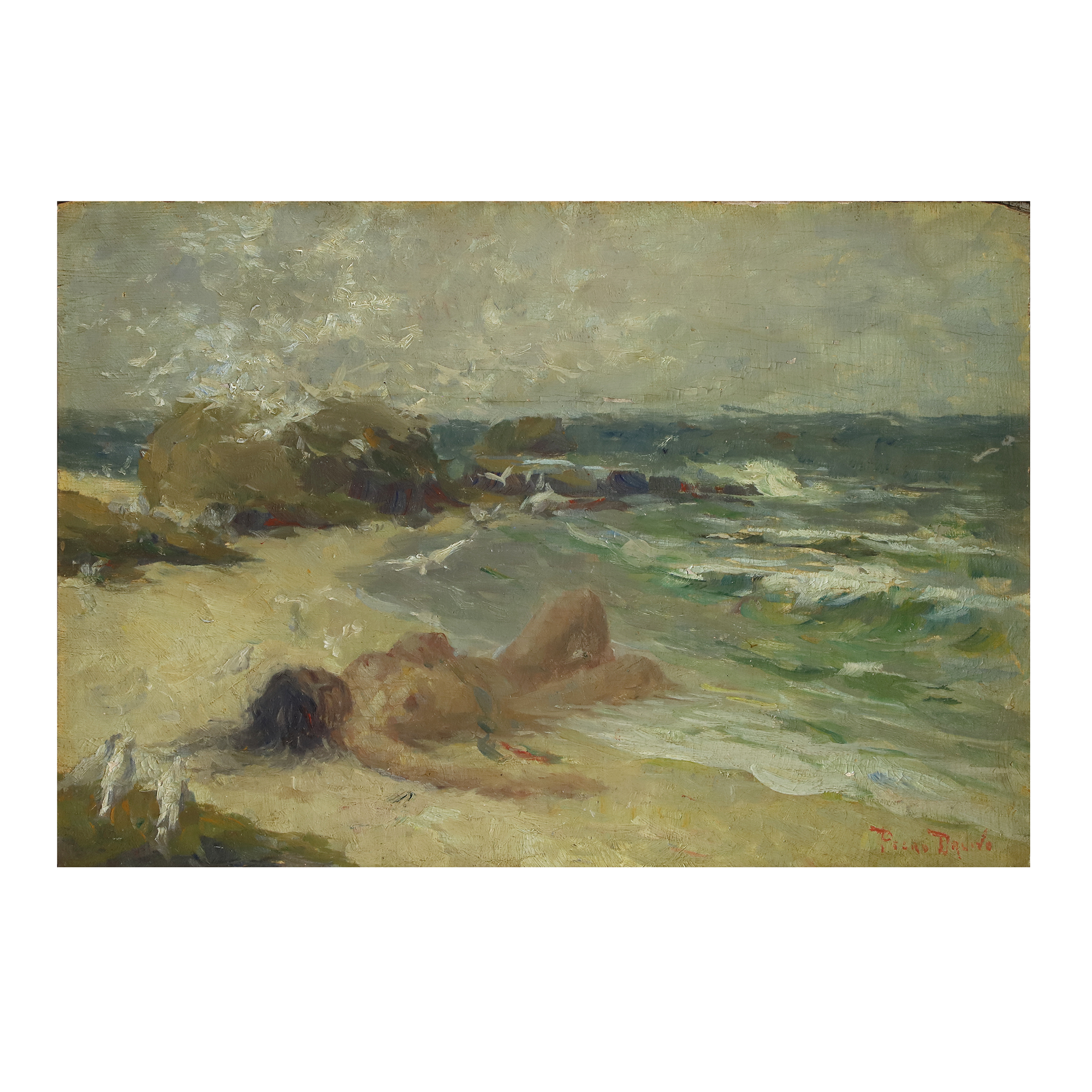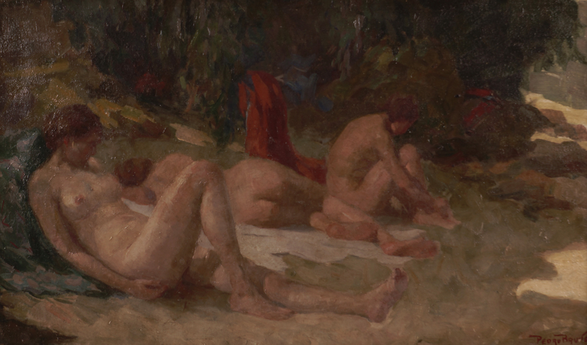 PEDRO BRUNO (1888 1949) "Leda e o cisne" Óleo sobre tela Med: 50 x 65 cm.Pedro Bruno, um prodígio da arte desde a tenra idade, iniciou sua jornada artística aos seis anos com Giovanni Battista Castagneto. Sua carreira meteórica levou a estudar música e arte em conservatórios renomados na Europa e no Brasil. Com talento excepcional, conquistou prêmios e reconhecimento em exposição de Belas Artes, destacando-se pela precocidade e maestria em suas obras. Seu legado artístico inclui obras icônicas como "Gonçalves Dias" e "Pátria", esta última imortalizada na nota de 200 cruzados novos. Pedro Bruno deixou sua marca não apenas no Brasil, mas também na Itália, com obras em museus renomados. Sua influência perdura, sendo homenageado com um busto em Paquetá e uma rua em São Paulo em sua memória.