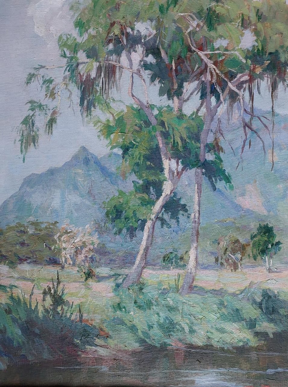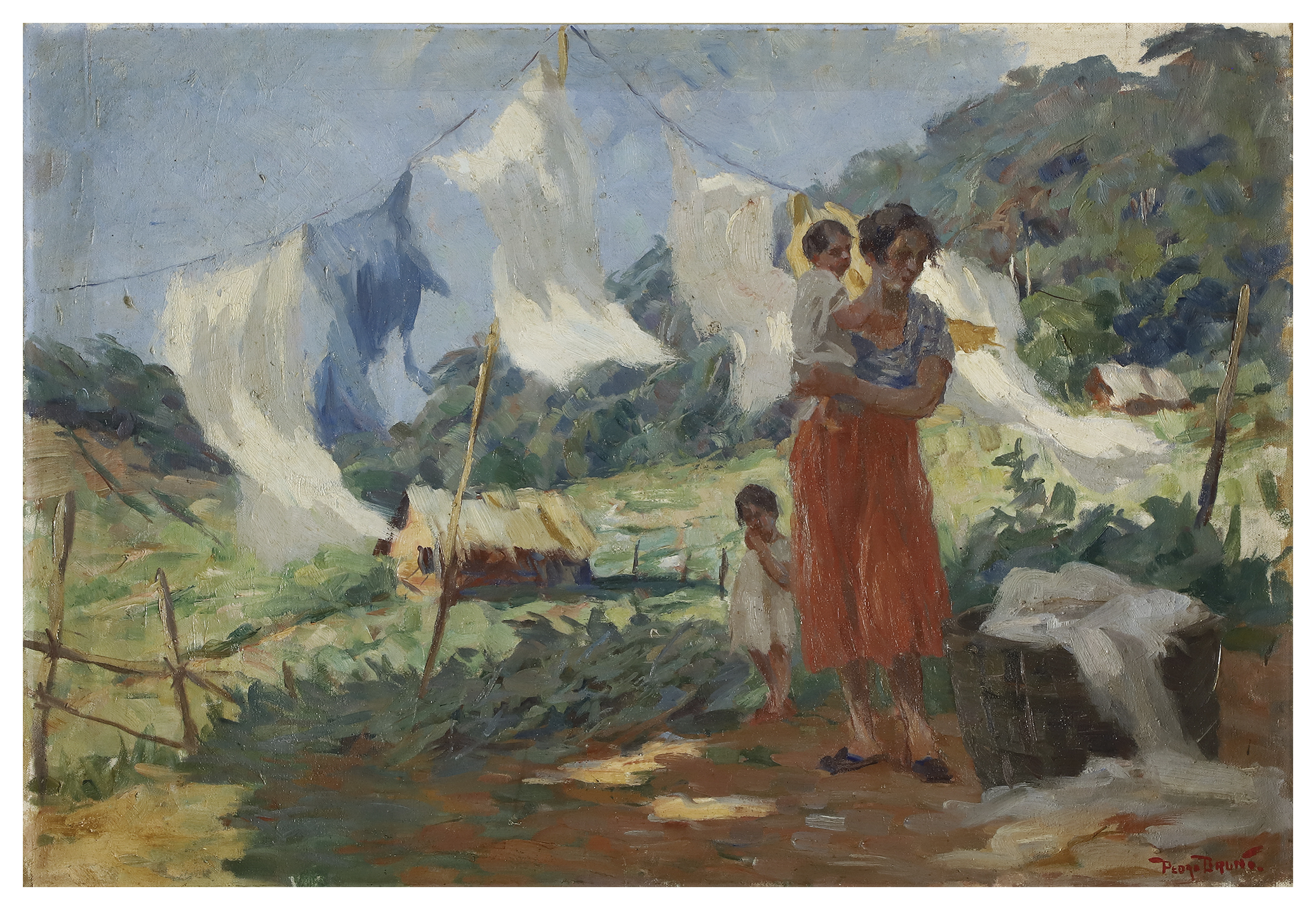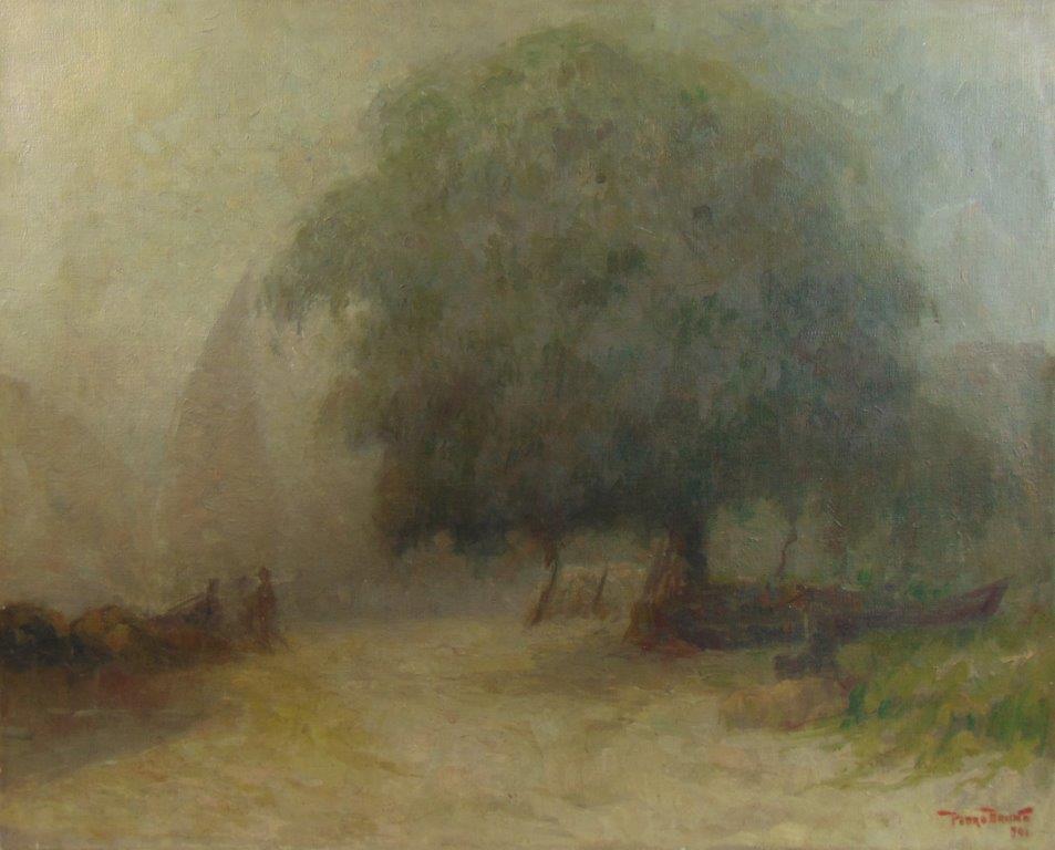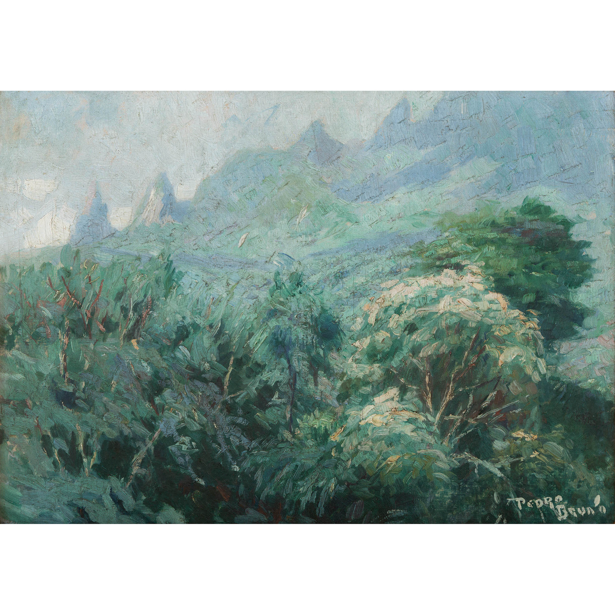 PEDRO BRUNO (1888 1949) "Leda e o cisne" Óleo sobre tela Med: 50 x 65 cm.Pedro Bruno, um prodígio da arte desde a tenra idade, iniciou sua jornada artística aos seis anos com Giovanni Battista Castagneto. Sua carreira meteórica levou a estudar música e arte em conservatórios renomados na Europa e no Brasil. Com talento excepcional, conquistou prêmios e reconhecimento em exposição de Belas Artes, destacando-se pela precocidade e maestria em suas obras. Seu legado artístico inclui obras icônicas como "Gonçalves Dias" e "Pátria", esta última imortalizada na nota de 200 cruzados novos. Pedro Bruno deixou sua marca não apenas no Brasil, mas também na Itália, com obras em museus renomados. Sua influência perdura, sendo homenageado com um busto em Paquetá e uma rua em São Paulo em sua memória.