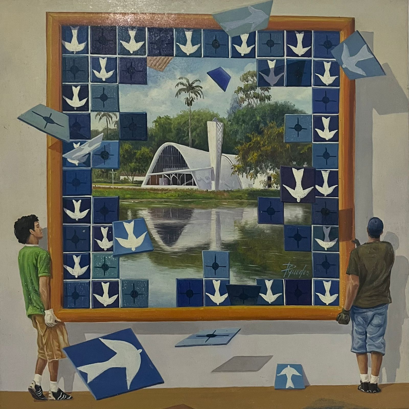 Pedro Guedes - Igreja da Pampulha - 30 x 30 cm - Óleo sobre linho colado em madeira - Assinatura canto inferior direito e Data 2009
