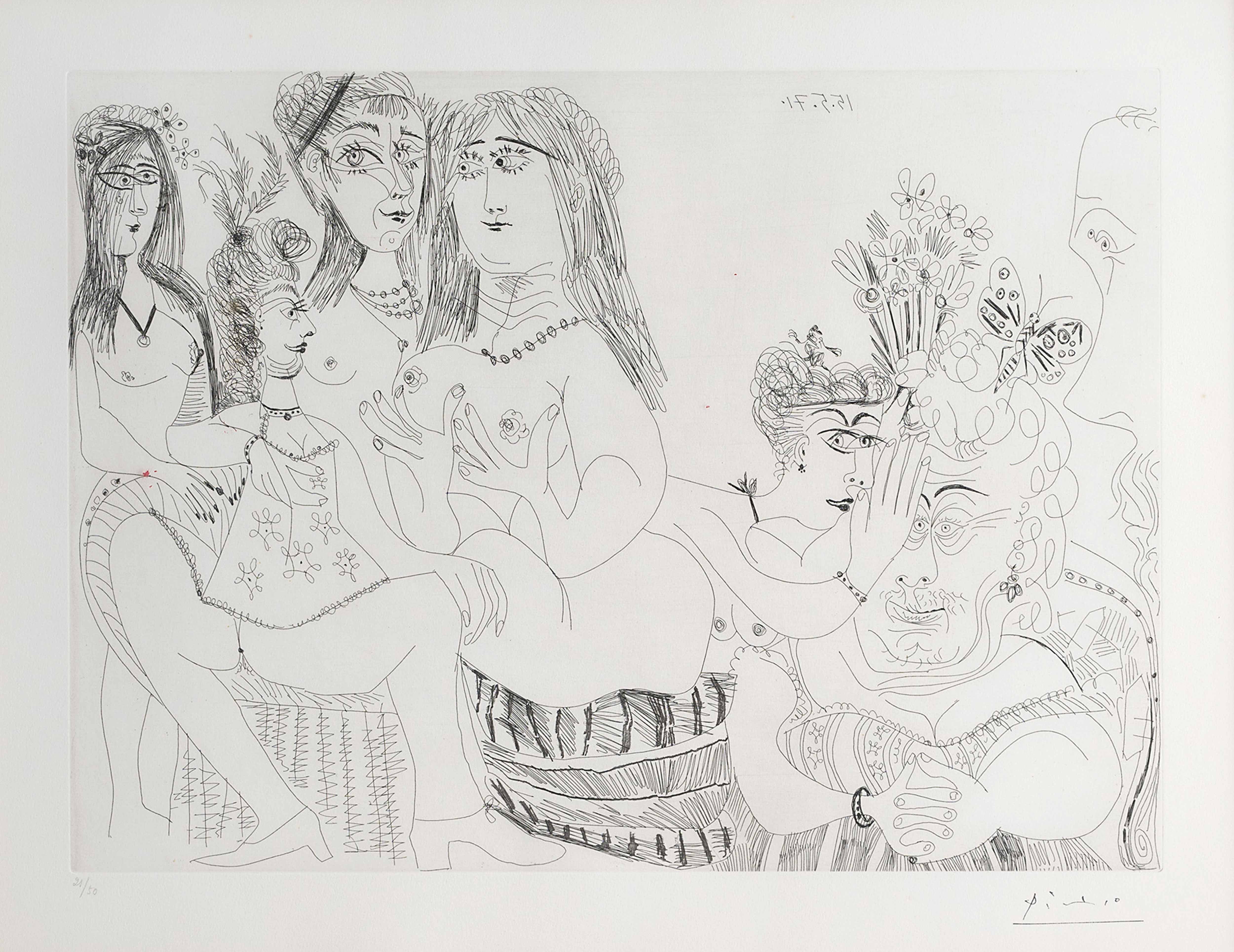 Em 1968, aos 87 anos, produziu em sete meses uma série de 347 gravuras recuperando os temas da juventude: o circo, as touradas, o teatro, as situações eróticas. Anos mais tarde, uma operação da próstata e da vesícula, além da visão deficiente, põe fim às suas actividades. Como uma honra especial a ele, no seu 90.º aniversário, são comemorados com exposição na grande galeria do Museu do Louvre. Torna-se assim o primeiro artista vivo a expor os seus trabalhos no famoso museu francês.