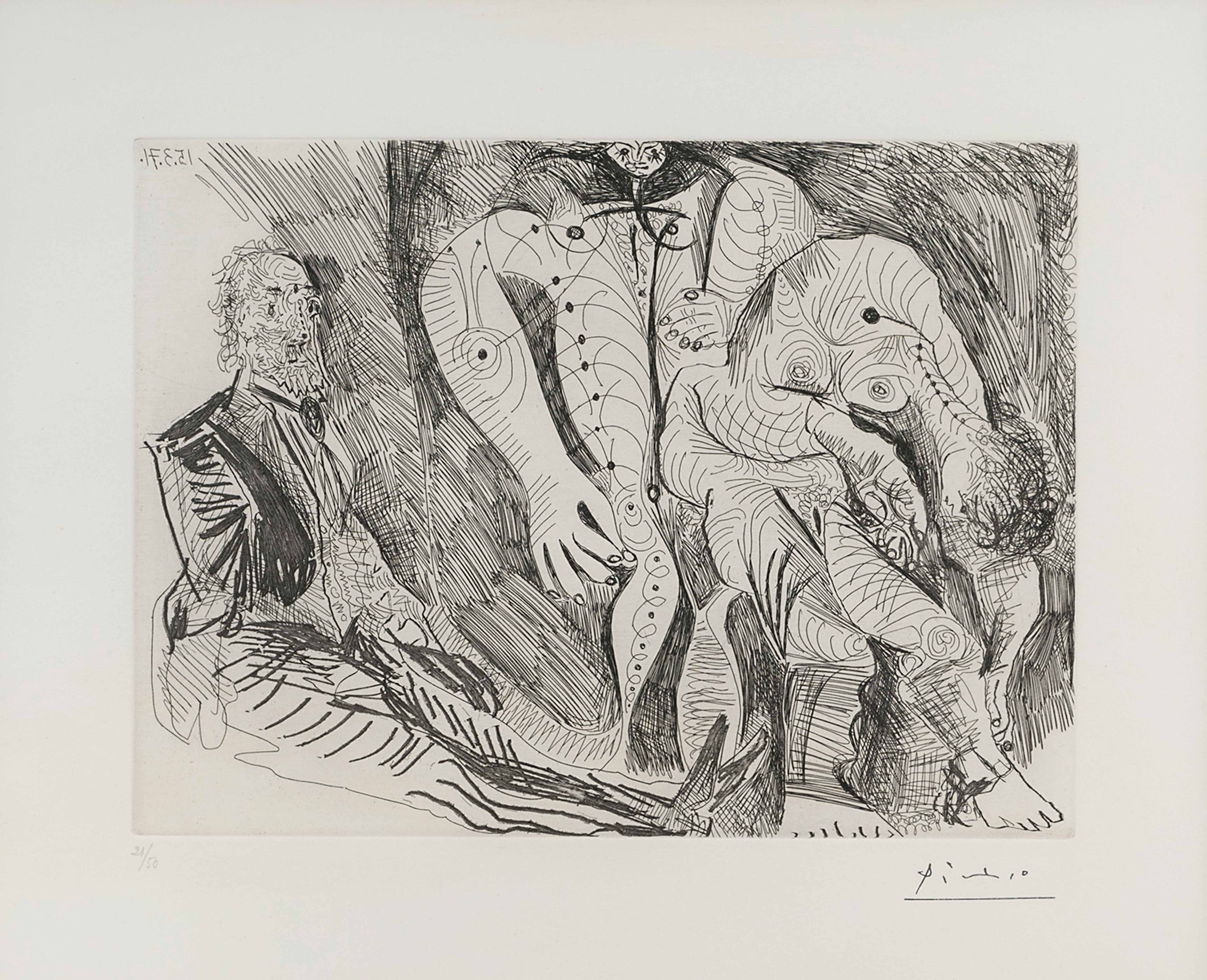 Em 1968, aos 87 anos, produziu em sete meses uma série de 347 gravuras recuperando os temas da juventude: o circo, as touradas, o teatro, as situações eróticas. Anos mais tarde, uma operação da próstata e da vesícula, além da visão deficiente, põe fim às suas actividades. Como uma honra especial a ele, no seu 90.º aniversário, são comemorados com exposição na grande galeria do Museu do Louvre. Torna-se assim o primeiro artista vivo a expor os seus trabalhos no famoso museu francês.