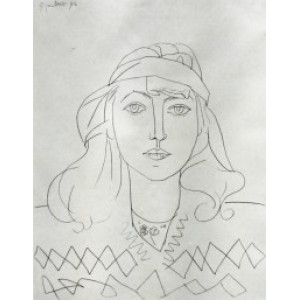 Pablo Picasso Impresso do desenho "François au Bandeau" 1946 da coleção museu Picasso Edições de Reunião dos Museus Nacionais em Paris - SPAD em Paris gráfica IML . Paris 72 x 49cm datada 1960