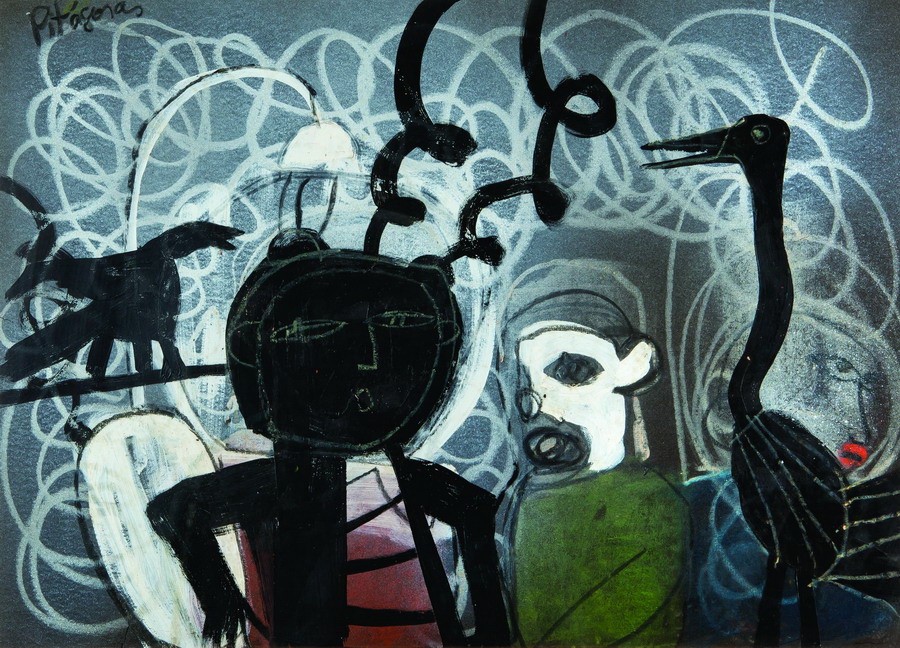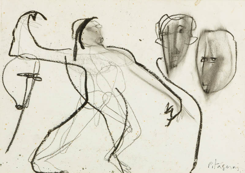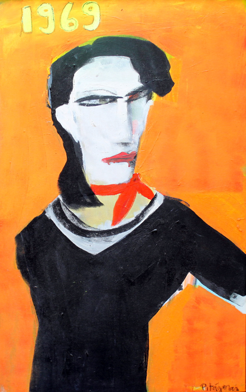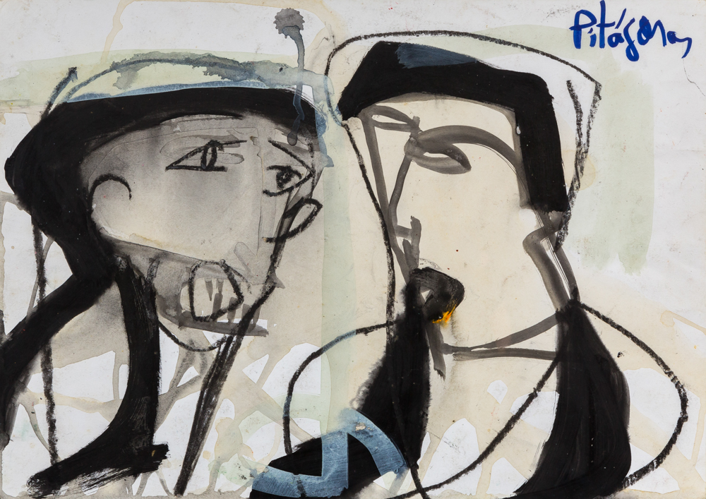 Pitágoras - Figura - 30 x 35 cm - Óleo sobre cartão - Assinatura canto inferior esquerdo e canto inferior direito