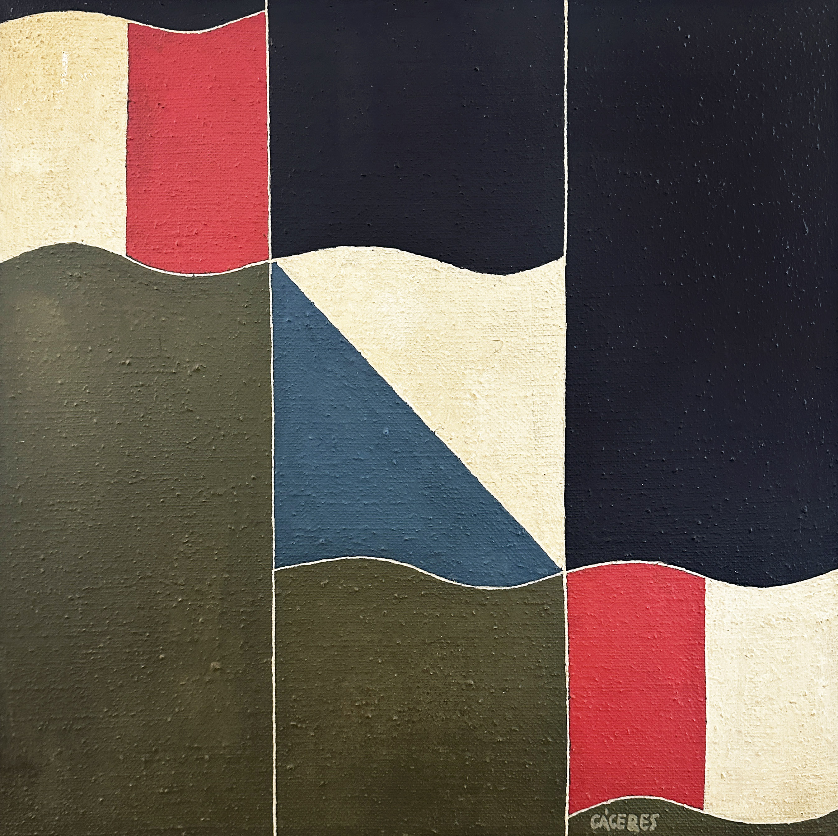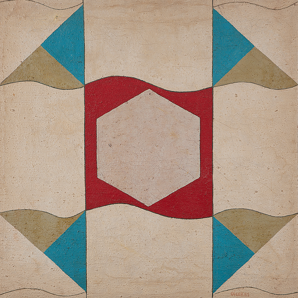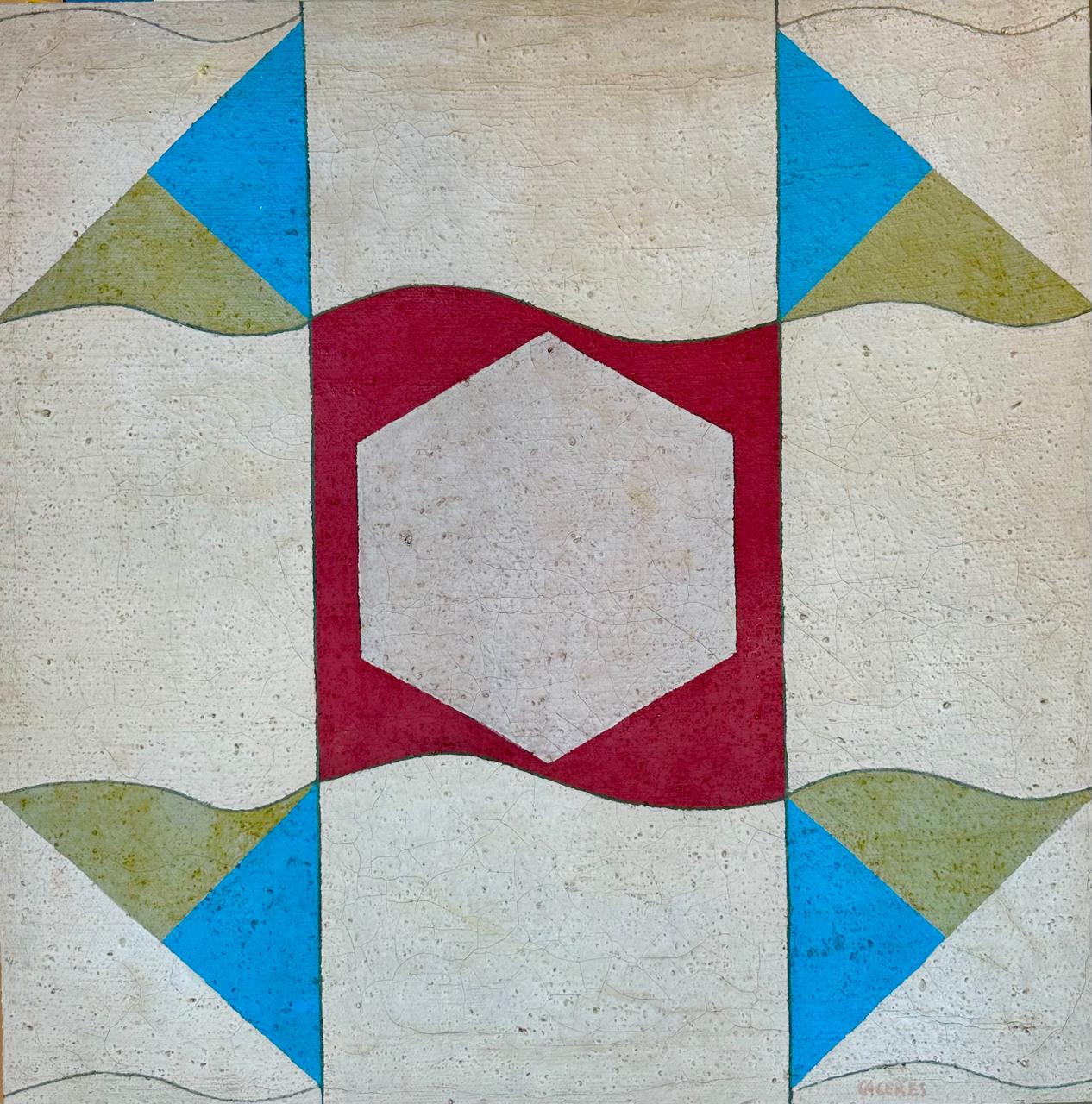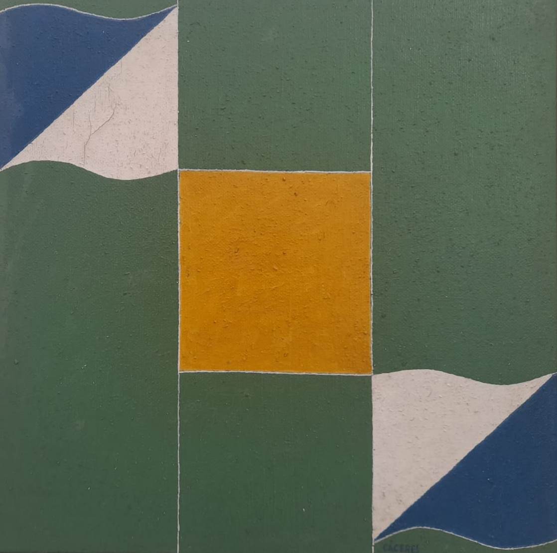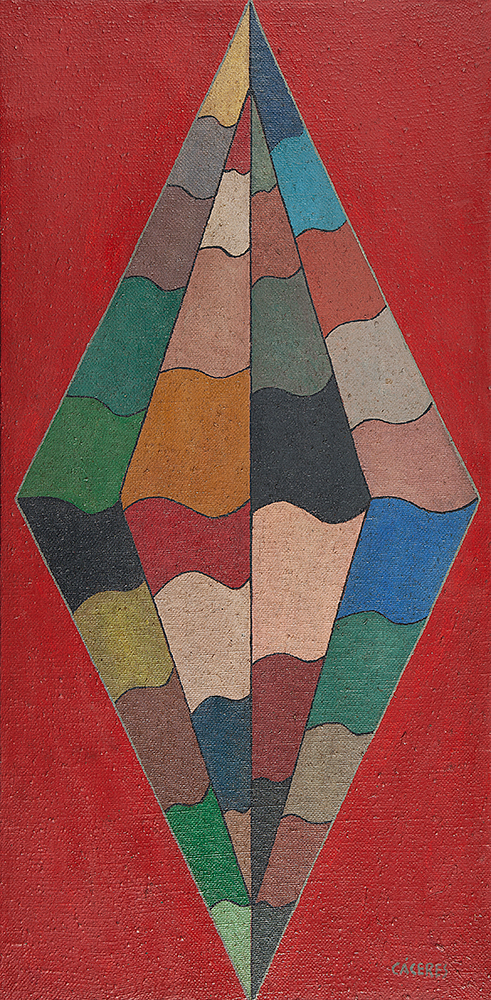 Ramón Cáceres - Sem título, 1986 - Óleo sobre tela, assinado inferior direito; assinado, datado e situado SP no verso. - 52 x 52 cm.