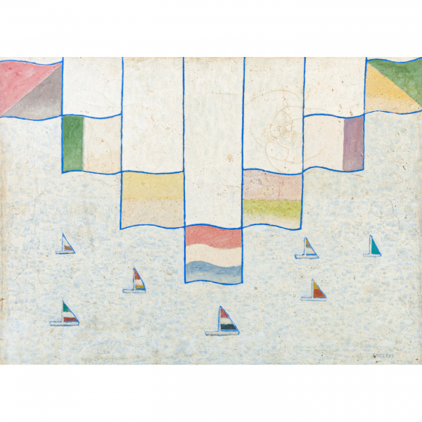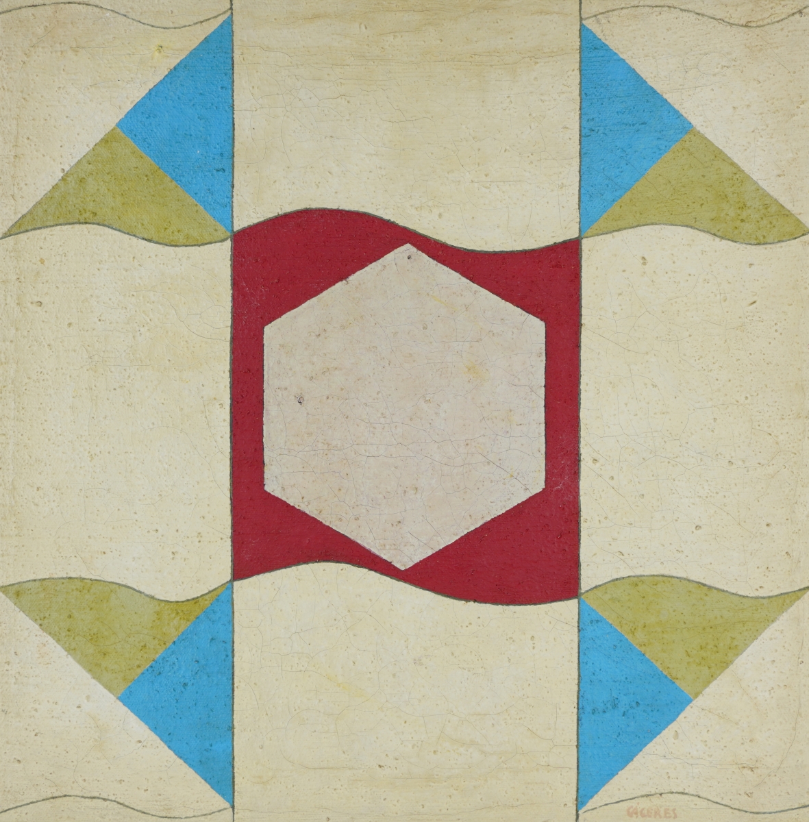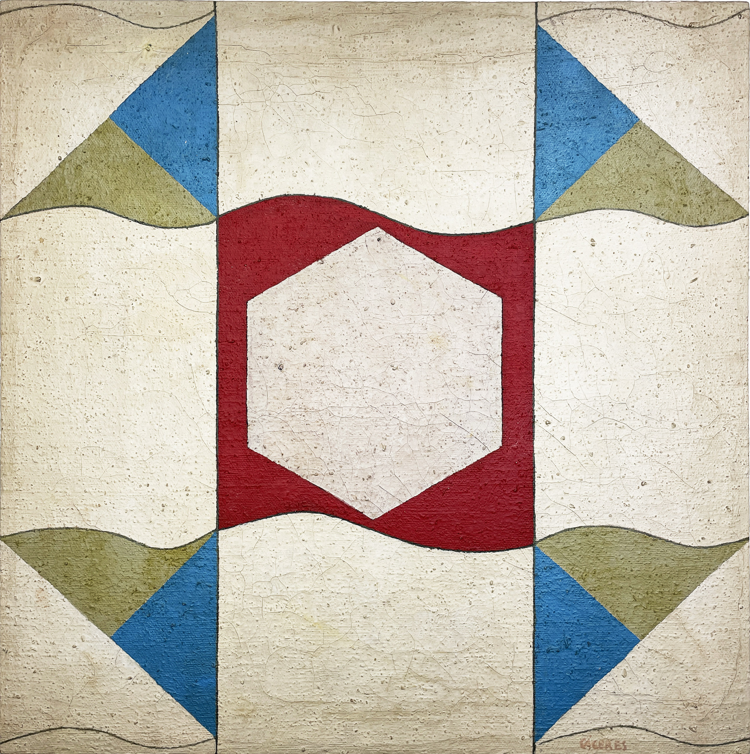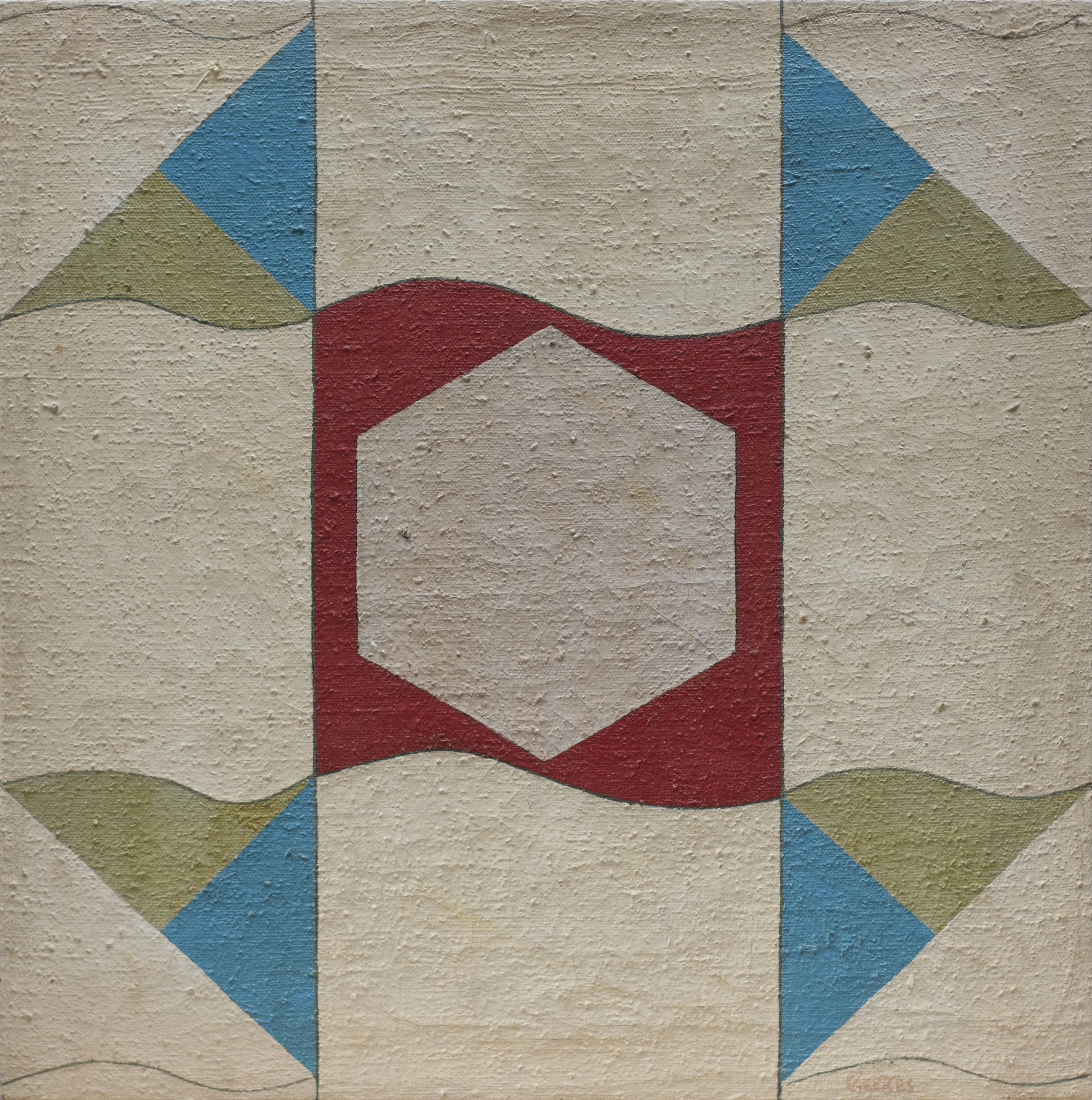Ramón Cáceres - Sem título, 1986 - Óleo sobre tela, assinado inferior direito; assinado, datado e situado SP no verso. - 52 x 52 cm.