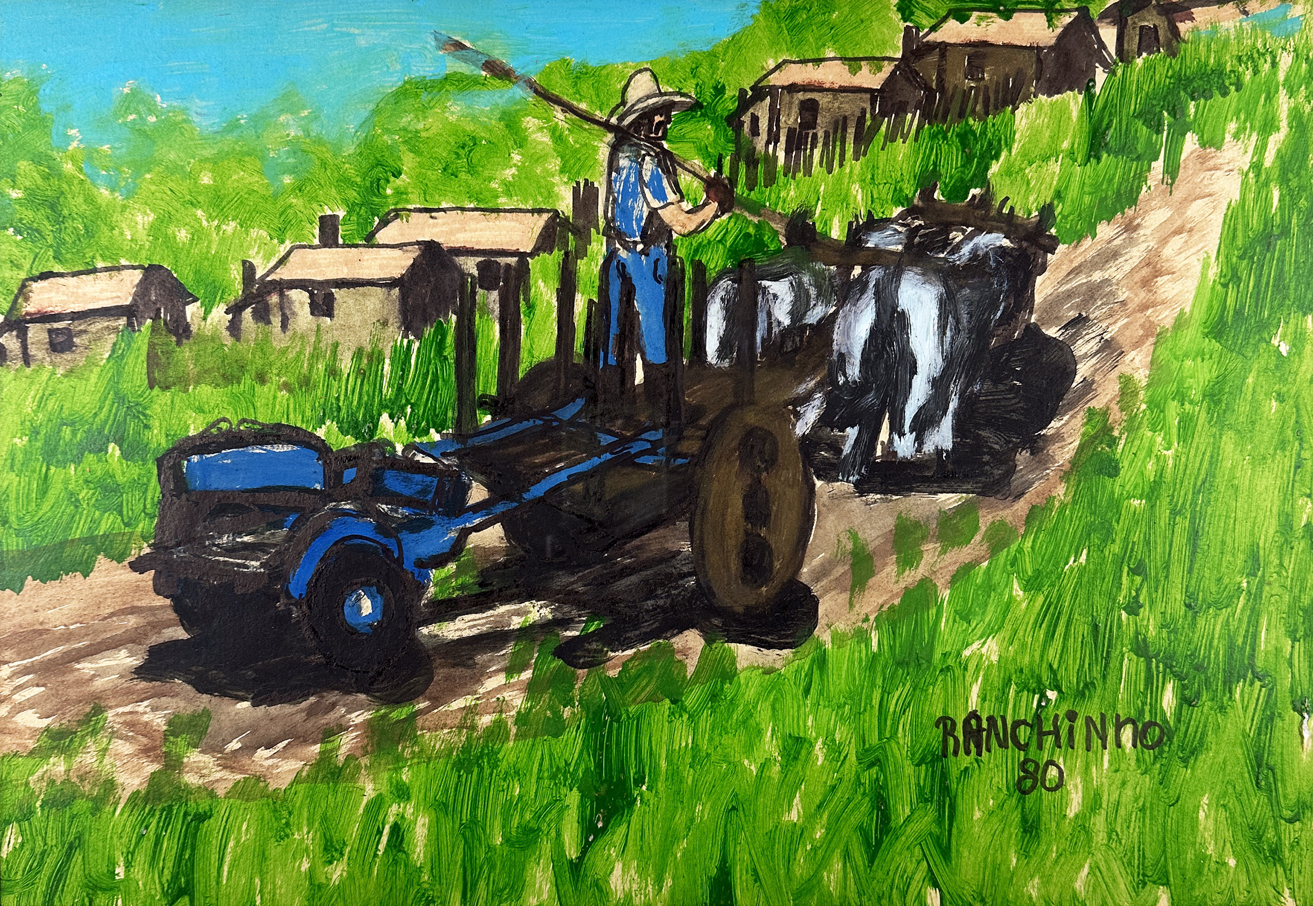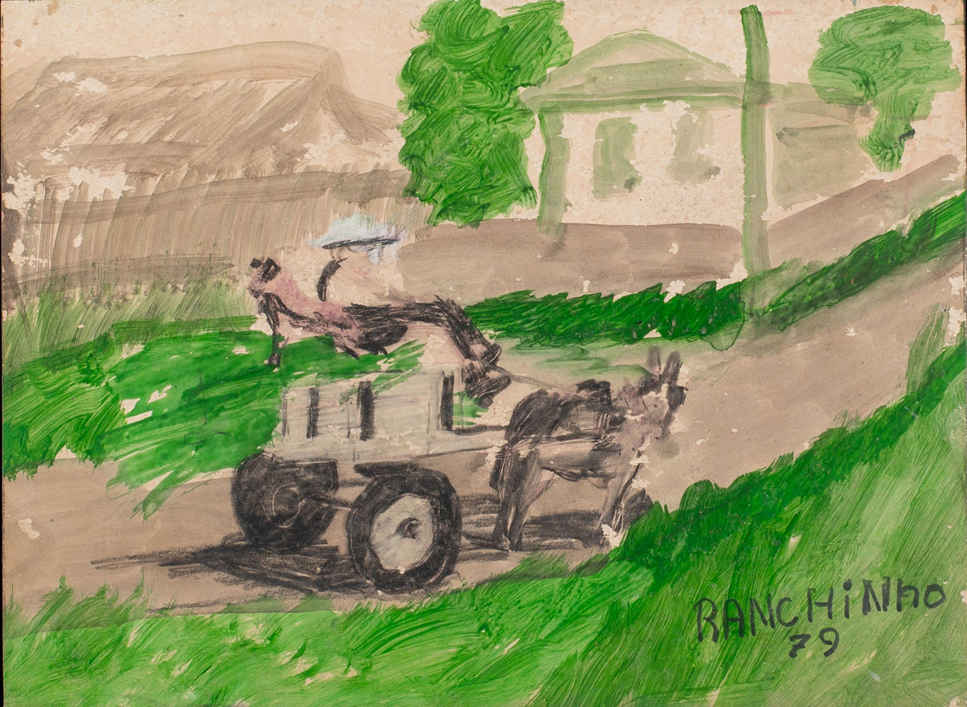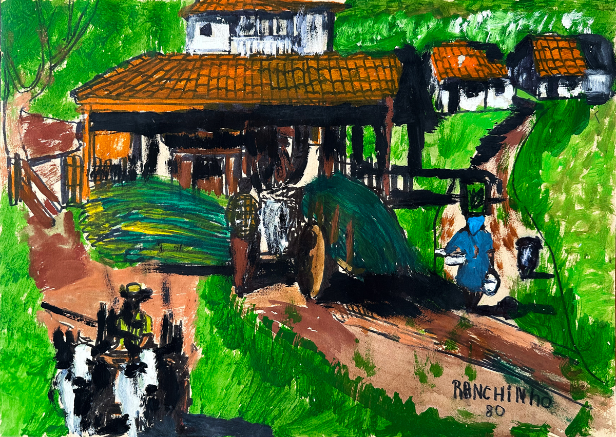 Ranchinho - Moenda de cana - 34 x 50 cm - Técnica mista sobre cartão - Assinatura canto inferior direito e Data 1980 - Esta obra participou do leilão do James Lisboa