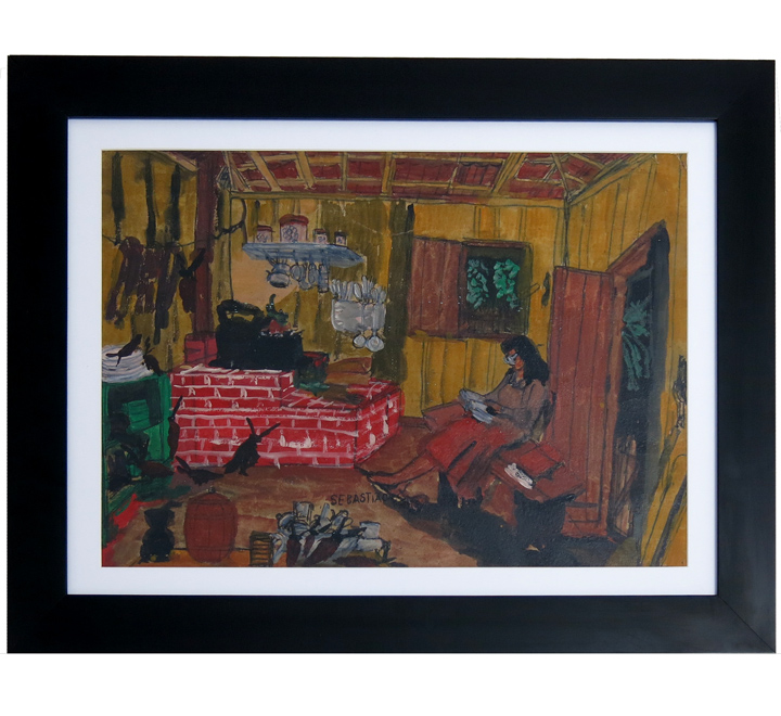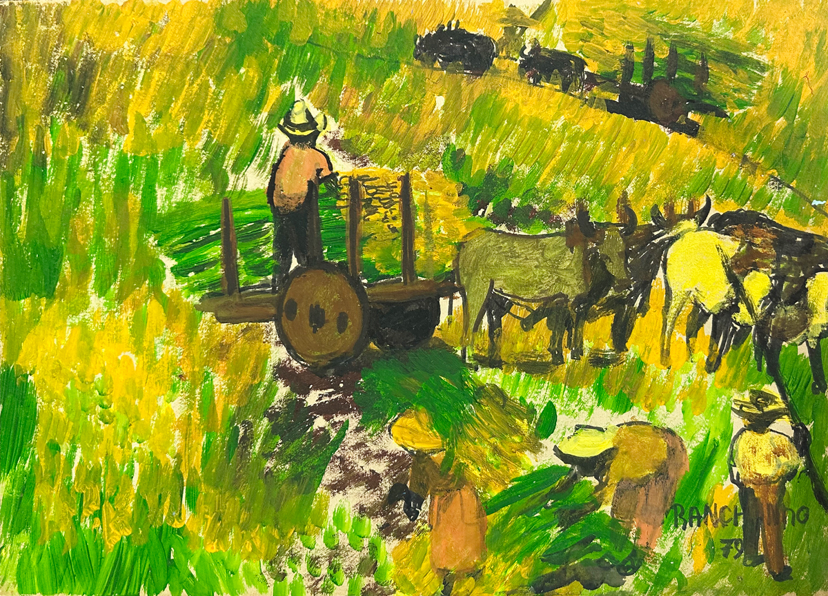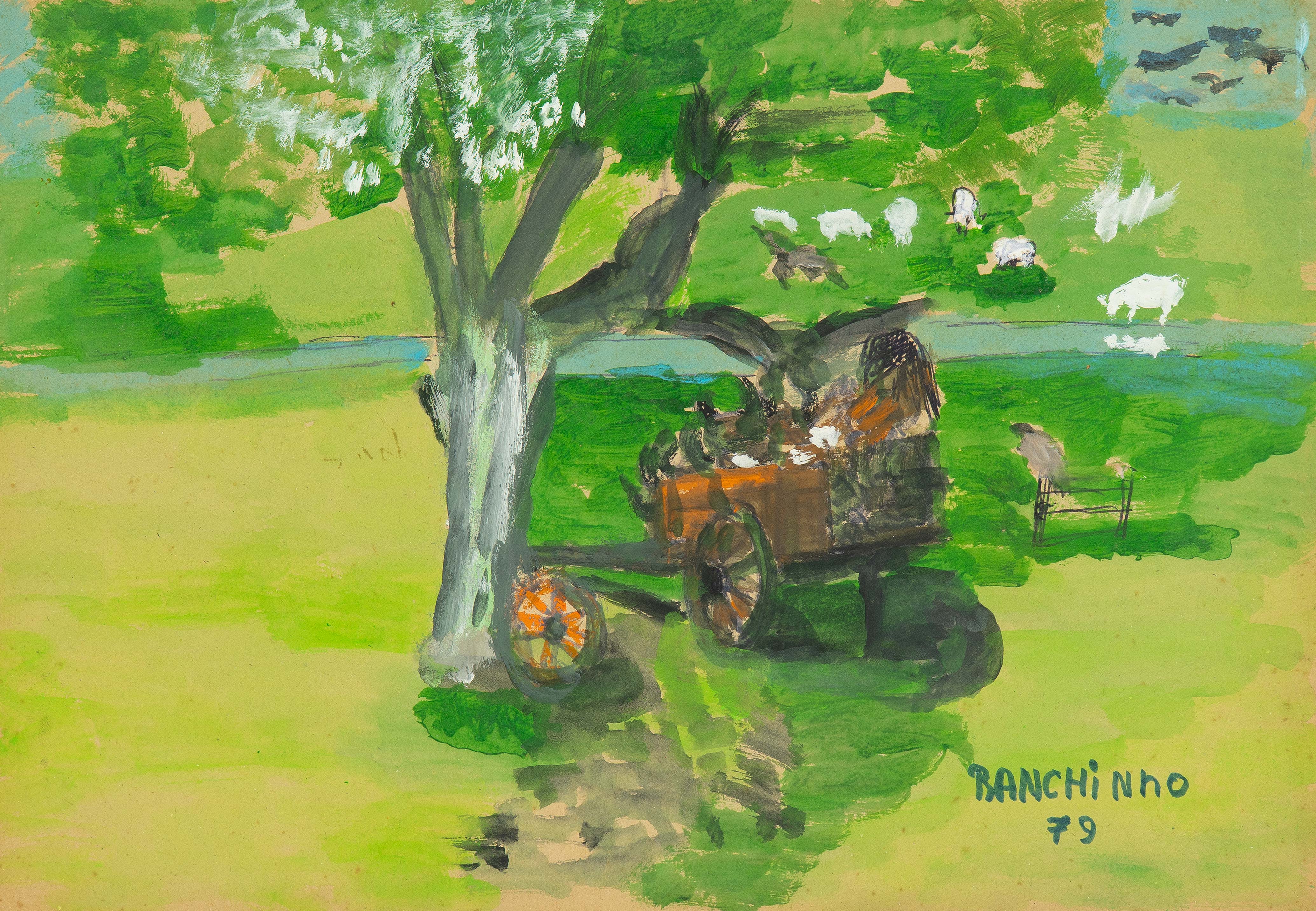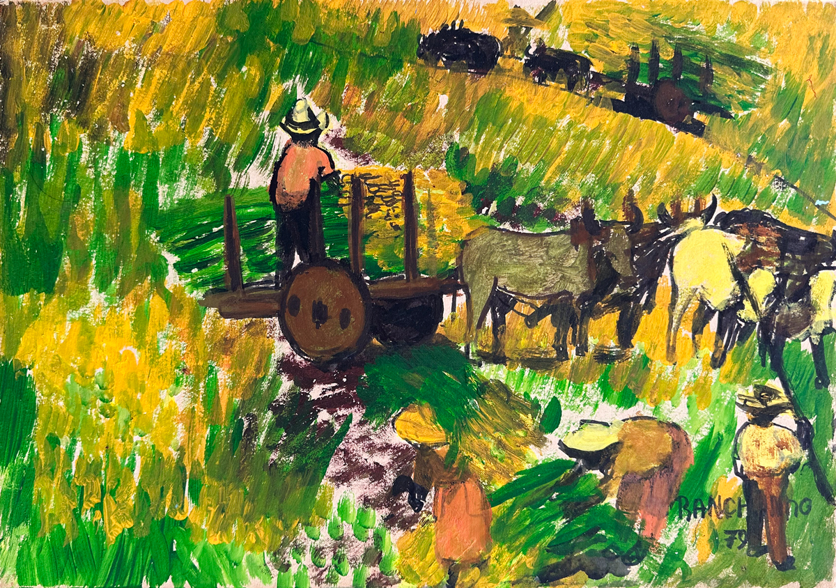 Ranchinho - Moenda de cana - 34 x 50 cm - Técnica mista sobre cartão - Assinatura canto inferior direito e Data 1980 - Esta obra participou do leilão do James Lisboa