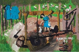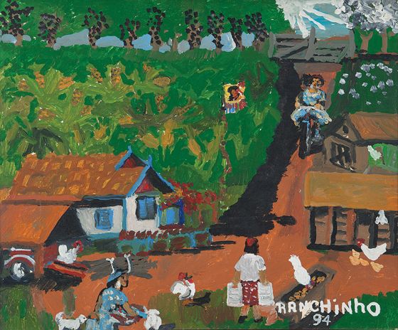 Sebastião Theodoro Paulino da Silva (Oscar Bressane SP 1923 - Assis SP 2003). Pintor e desenhista. Filho de agricultores, muda-se com a família para Assis, São Paulo, após a morte do pai em 1925. Analfabeto e apresentando desvios comportamentais, somente aos 24 anos consegue o primeiro trabalho, auxiliando na produção de garapa. Com a morte do seu patrão e protetor, João Romero, conhecido como João Garapeiro, passa a sobreviver como catador de papéis, latas e garrafas, morando em ranchos abandonados, o que lhe vale o apelido de Ranchinho. É incentivado pelo escritor José Nazareno Mimessi (1925-1991), fundador do Museu de Arte Primitiva de Assis, a aprender técnicas de guache e acrílica sobre aglomerado de madeira.