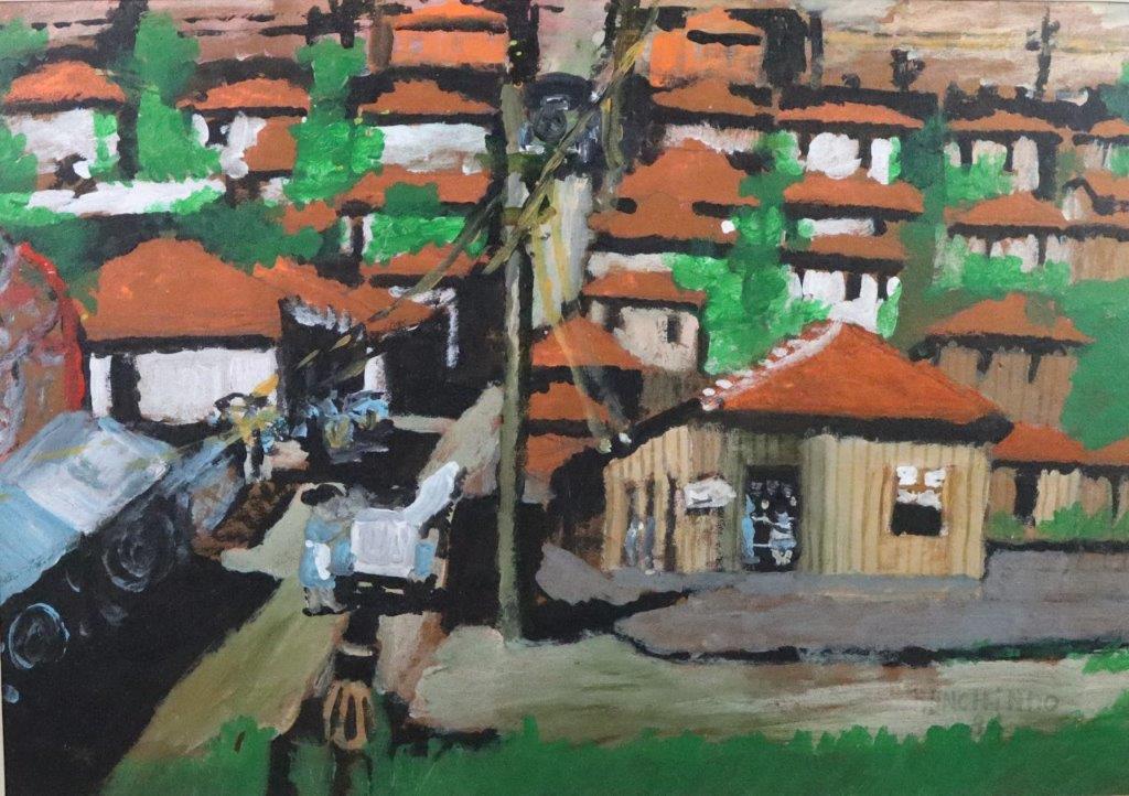 Ranchinho - Moenda de cana - 34 x 50 cm - Técnica mista sobre cartão - Assinatura canto inferior direito e Data 1980 - Esta obra participou do leilão do James Lisboa