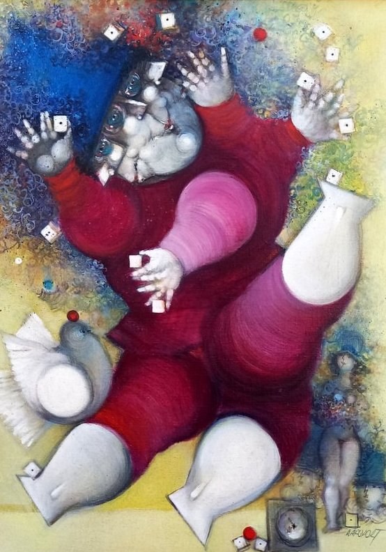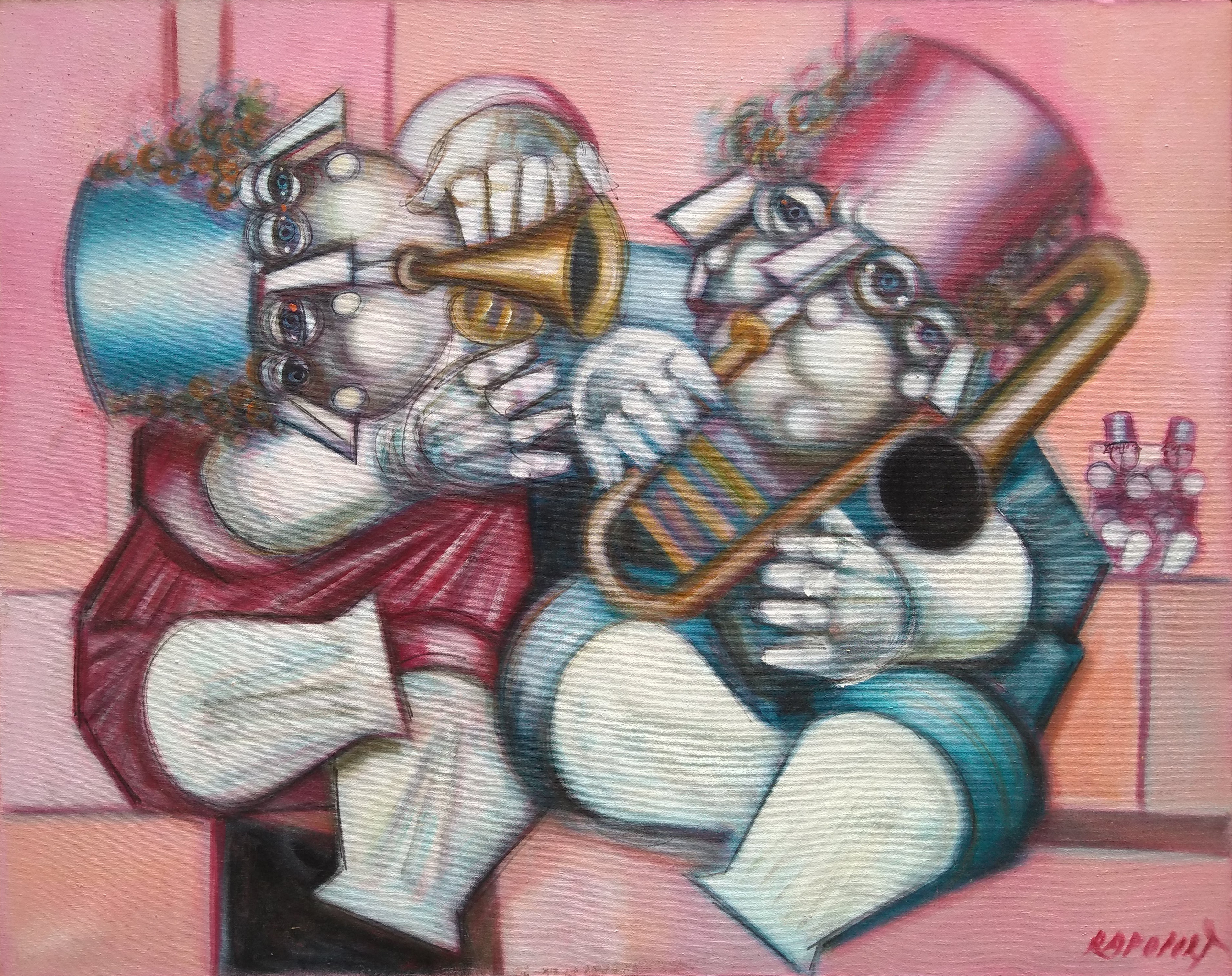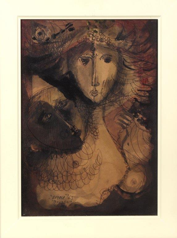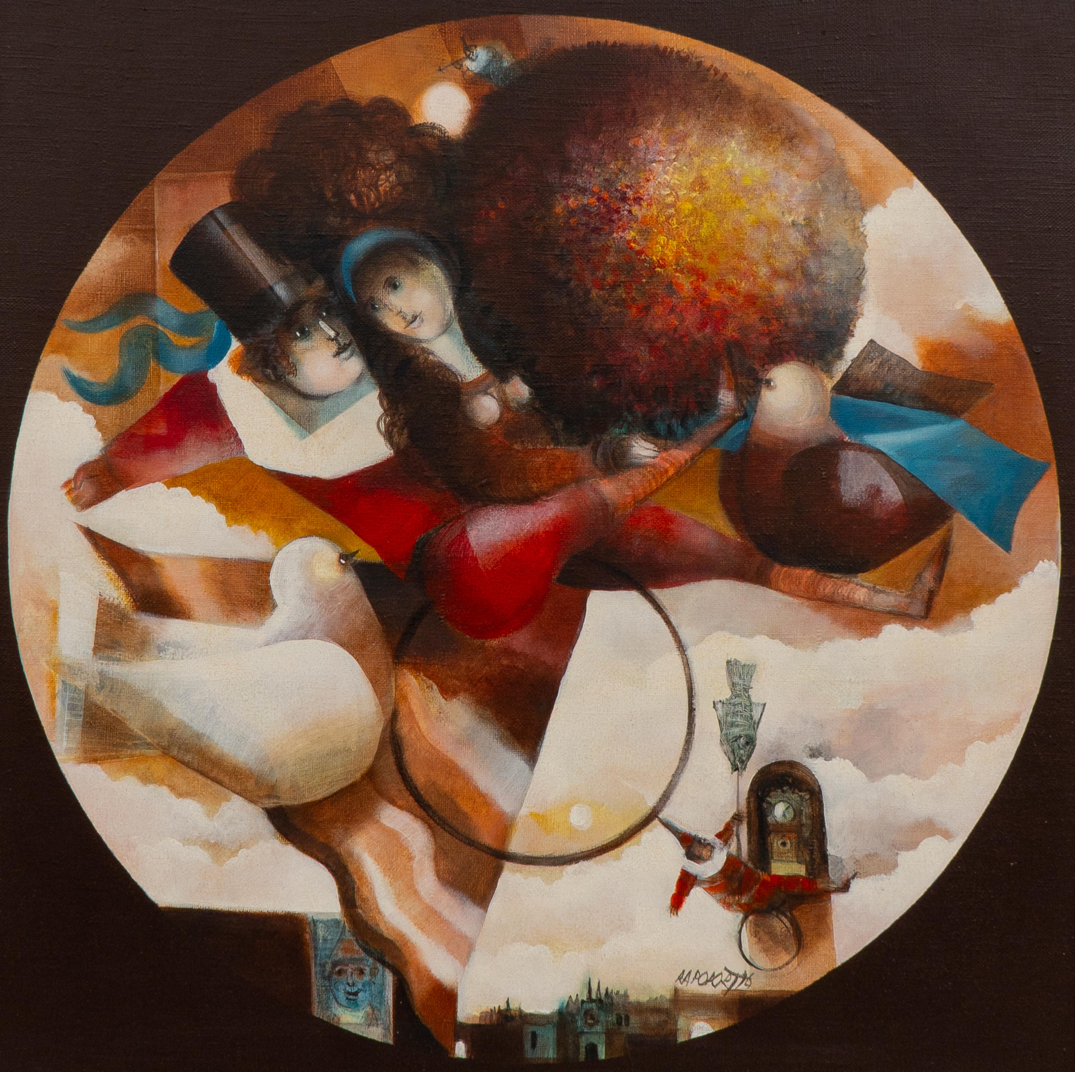 Alexandre Rapoport - Os amantes - 1976 - Óleo sobre tela - Assinado canto inferior direito - 70 x 70 cm. Coleção Múcio Bandeira de Mello.