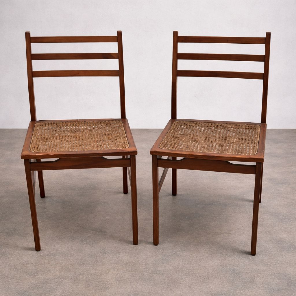 ALEXANDRE RAPOPORT - Seis (6) cadeiras em jacarandá, design da década de 60 em bom estado de conservação rígidas e com a palhinha natural antiga mais integra, medindo 80 cm de altura no encosto por 43 cm por 47 cm. P.S.: Caso tenha interesse em ver a peça pessoalmente, entre em contato conosco.