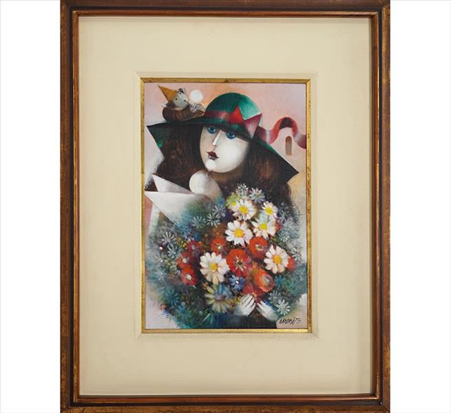 ALEXANDRE RAPOPORT, A Moça e o Bouquet Azul, OST, ACID e verso, 40 x 35cm (m.i). Datado 1977 (com resquício de selo de galeria no verso)
