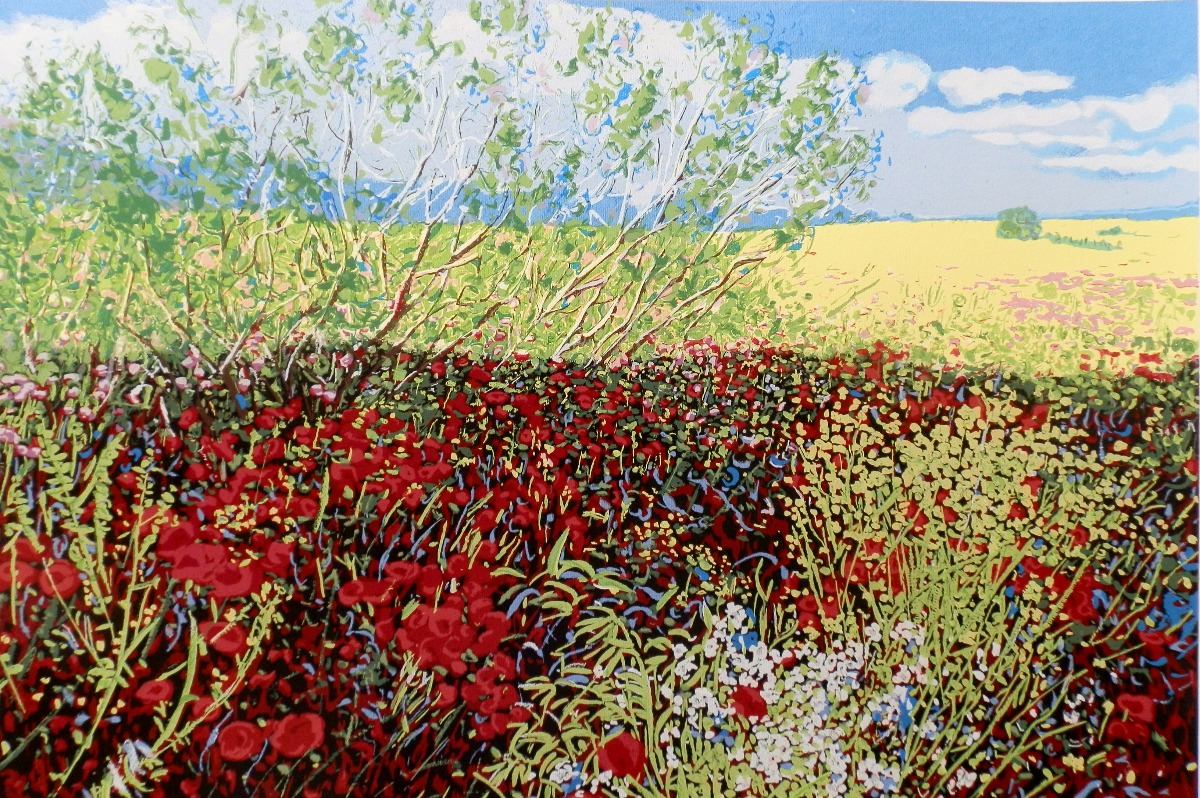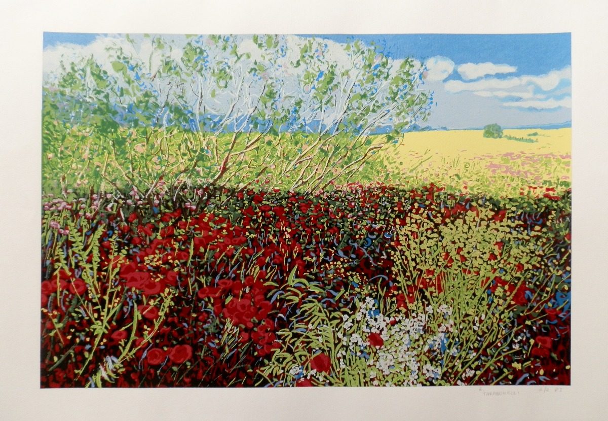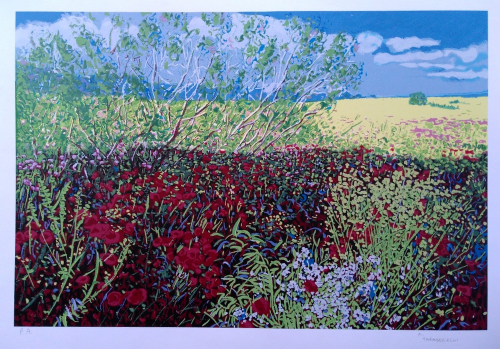 Raquel Taraborelli - Campo de flores - P.A. Serigrafia, 51x72 cm, sem data, A.C.I.D. a lápis. Sem moldura