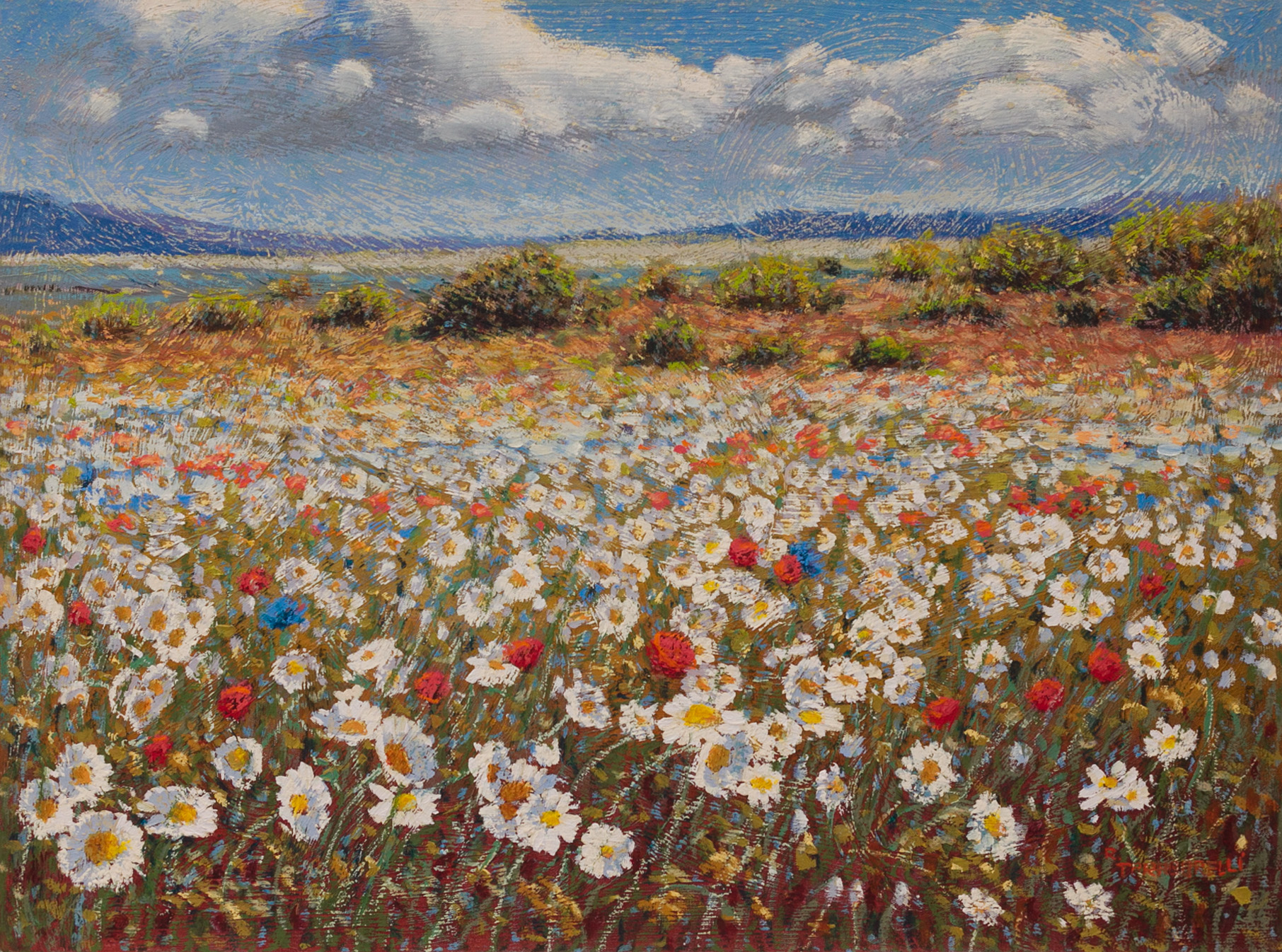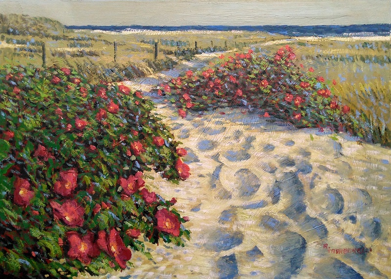 “Não sou crítico de arte, apenas gosto. Mas como o gostar é a essência do fazer, cá estou ousando aceitar o convite para uma tarefa fácil: a de apresentar Raquel Taraborelli. Ela também gosta. Gosta de flores, por suas formas e cores. Gostando da cor, gosta também da luz, do impressionismo, de Monet. E quem gosta, faz bem. É o que Raquel faz, na tela. Como Rodin, na busca da perfeição, Raquel acha que o resultado ainda não corresponde à sua percepção movida pelo gostar. ‘Ainda não consigo chegar aos 100% do que imagino no início de cada tela. Mas confesso que, às vezes, me surpreendo. ’ É o que o gostar aprimora a técnica. Formada em engenharia, começou a pintar em 1975, aos 17 anos. Dez anos depois, o diretor do Masp, Pietro Maria Bardi, jurado do Salão de Artes Plásticas de Piedade, São Paulo, deu-lhe a Medalha de Ouro. Foi o estímulo que fez Raquel deixar a engenharia para dedicar-se somente à pintura. De sua casa em Sorocaba, foi conhecer a casa e os jardins de Monet, na França. E aí ganhamos uma impressionista, sem precisarmos ir ao Musée d’Orsay. Você pode olhar suas telas e dizer que delas saem a luz e as cores; que o sol e as sombras nos transmitem alegria e a vontade de entrar nas cenas. Você pode até adivinhar a hora do dia que está ali, à sua frente, pululando de vida. Você pode ver o ar. É a percepção aguçada pelo gosto e pela paleta de Raquel Taraborelli. Boa Viagem!”