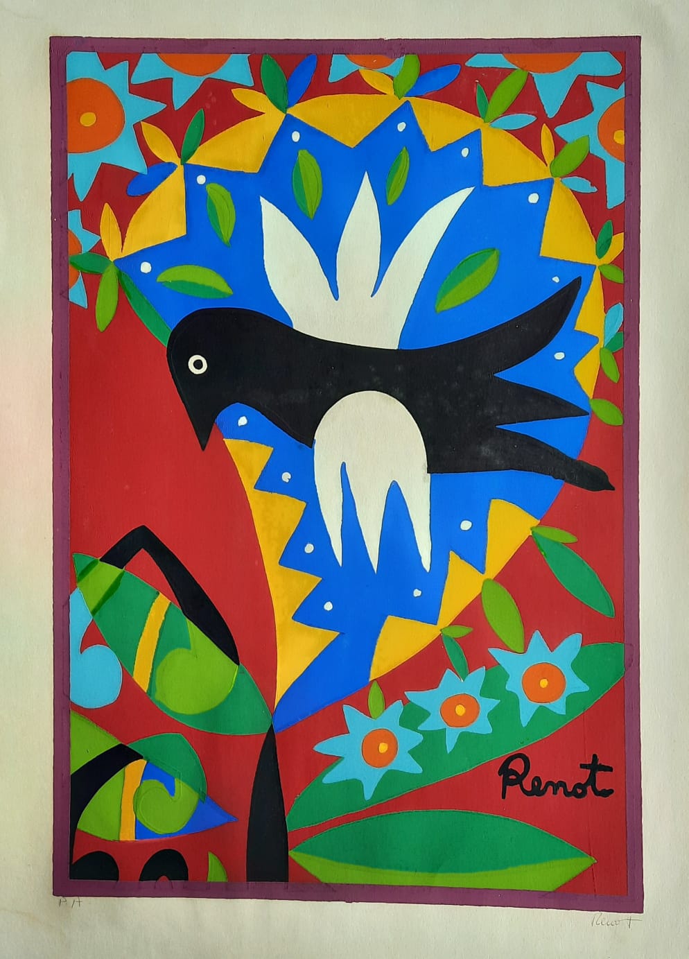 Renot - Pássaro e Flora - Giclee - 80x100 - Tiragem 1/1 - Assinada