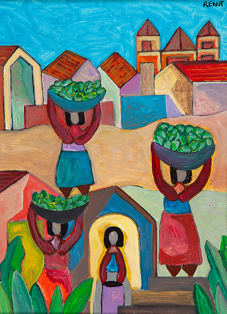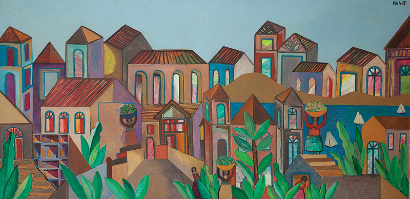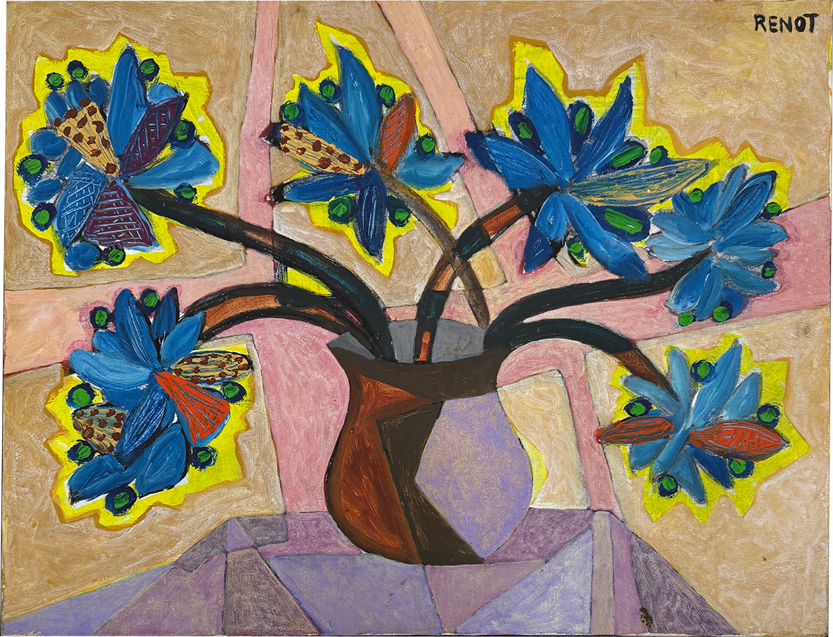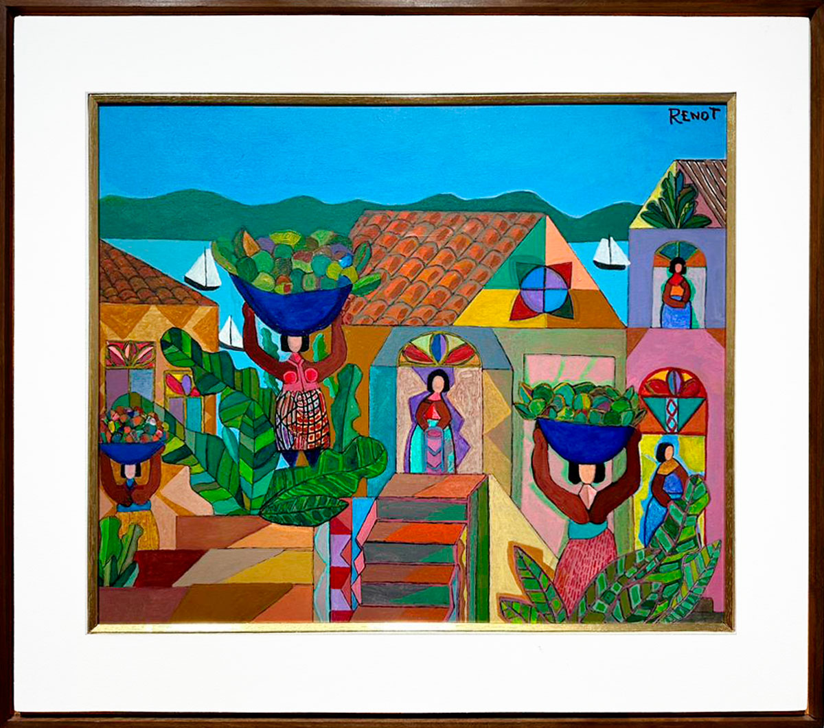 O artista mostra a natureza com sensualidade, combinando matizes de cores que se escondem atrás dos casarios ou brotam da vegetação tropical do recôncavo. Em suas obras a realidade brasileira é caracterizada em todo seu mistério, exotismo e aspectos únicos. O mundo criado por Renot é onírico, sensual e mágico, onde a fantasia e a realidade são indivisíveis. No trabalho deste grande artista há a predominância da flora e da fauna da Bahia, sempre com a presença marcante das cores e, em especial, o azul e suas variações. Jaime Maurício afirmou que na arte de Renot “seu desenho é um poema e sua tapeçaria um afresco”.