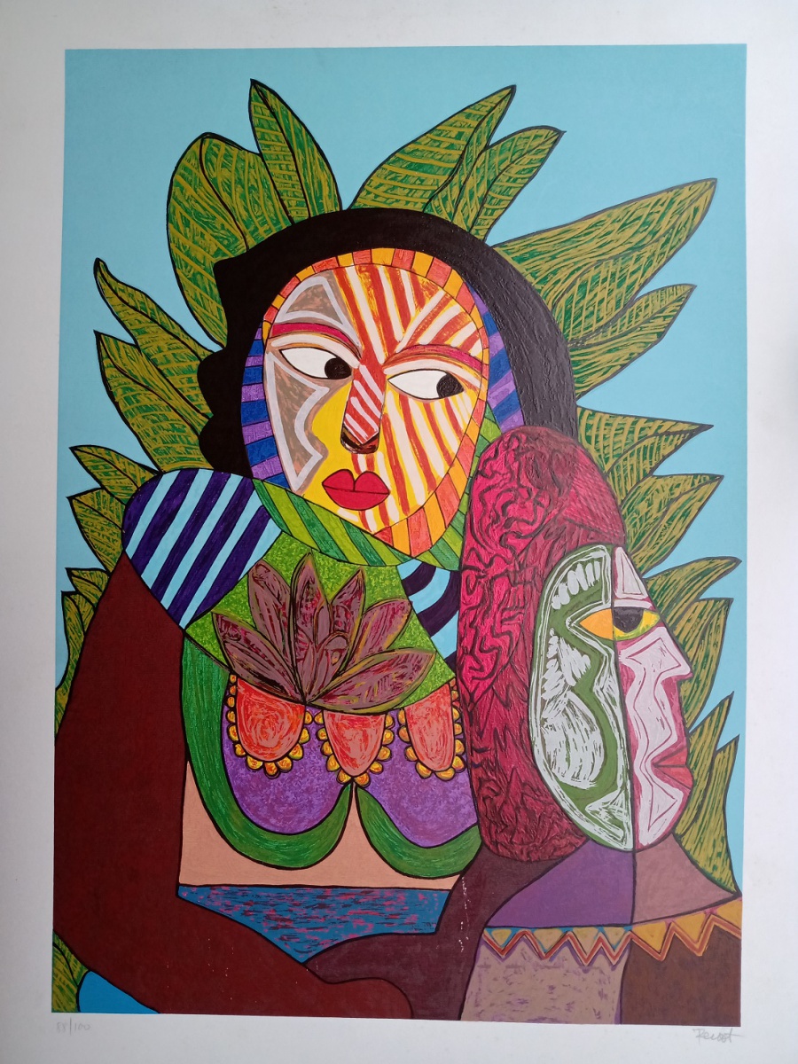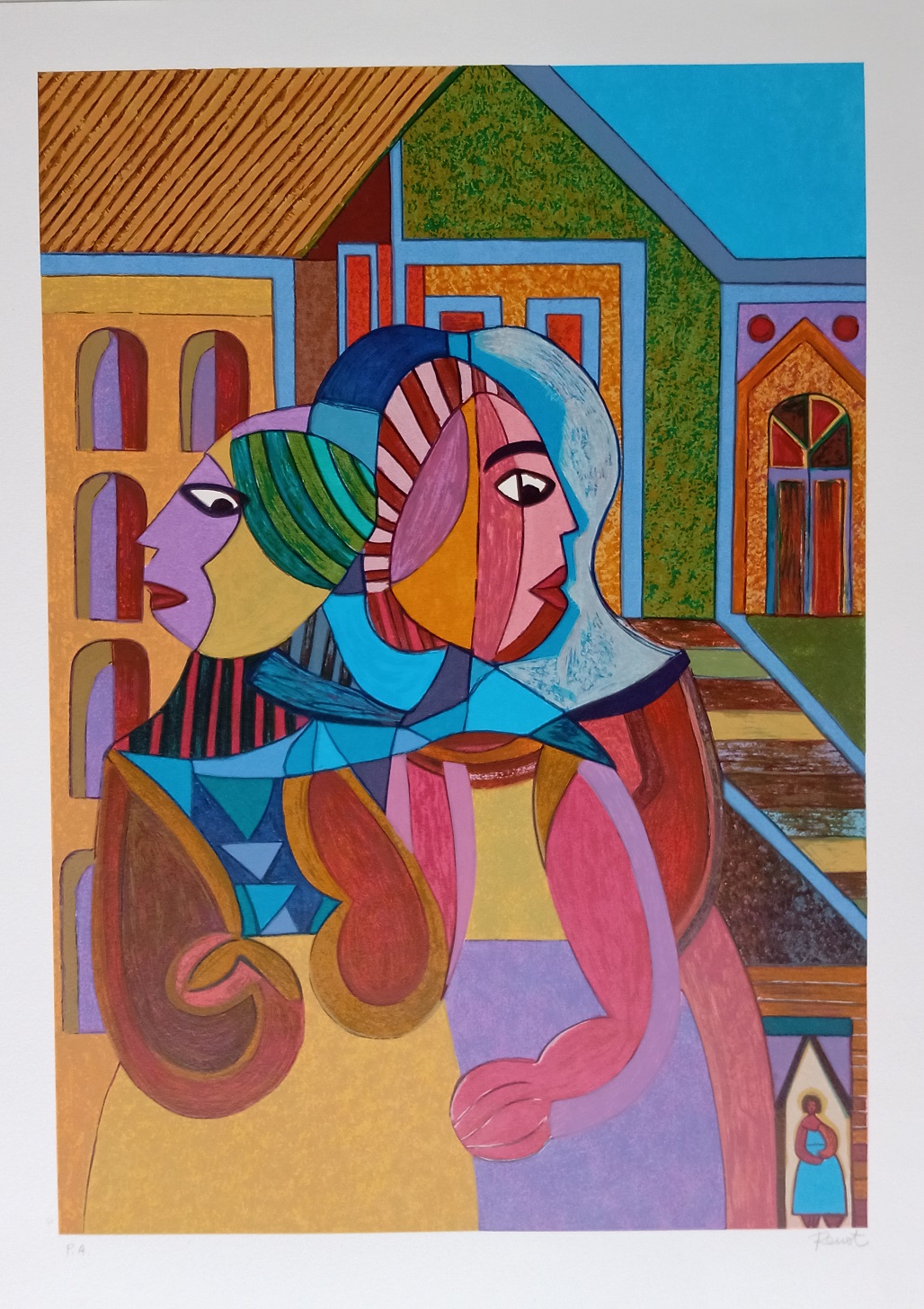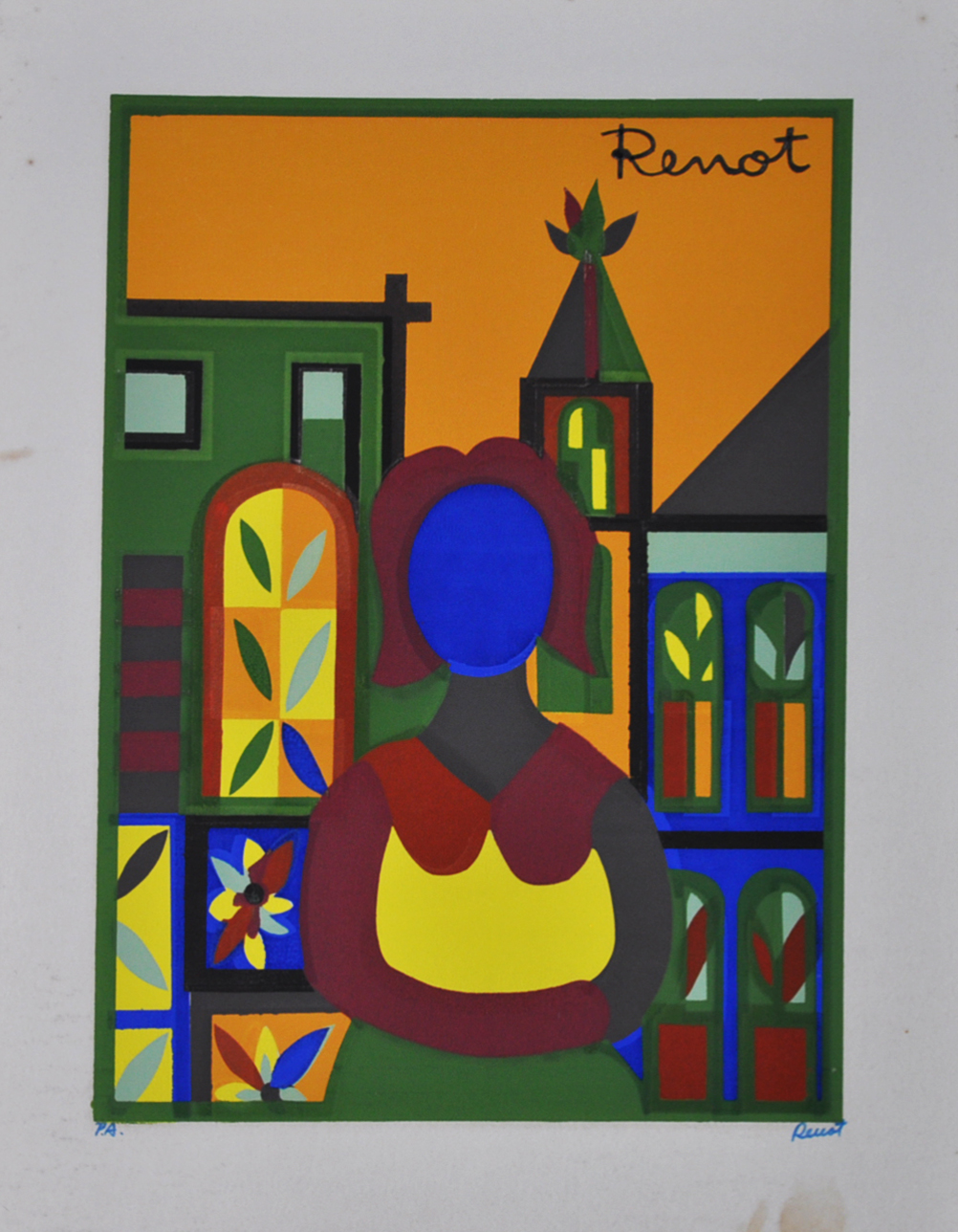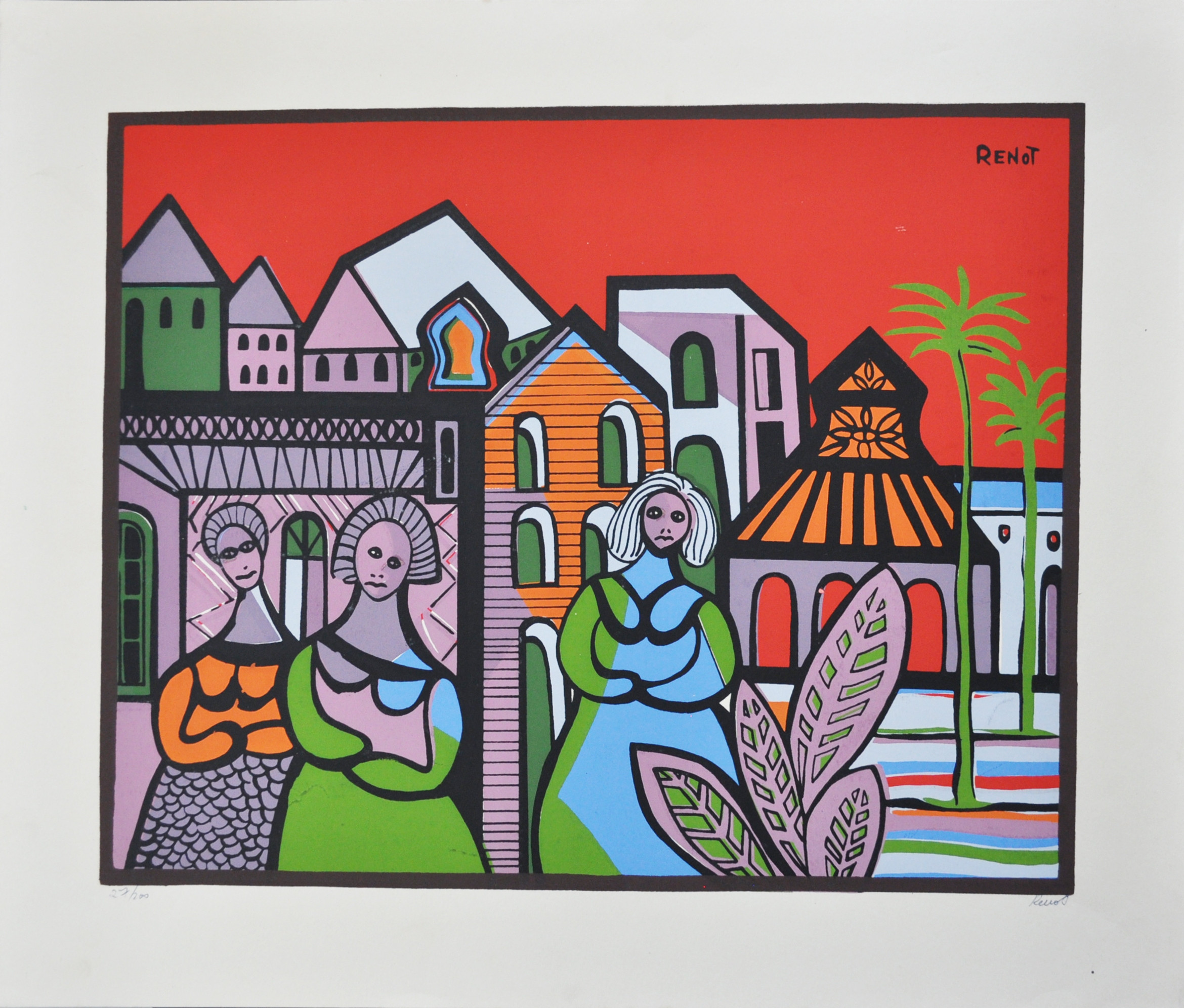 Renot - Casario com Mulata - Serigrafia Manuel - 45x35 - dec. 70 - Assinada