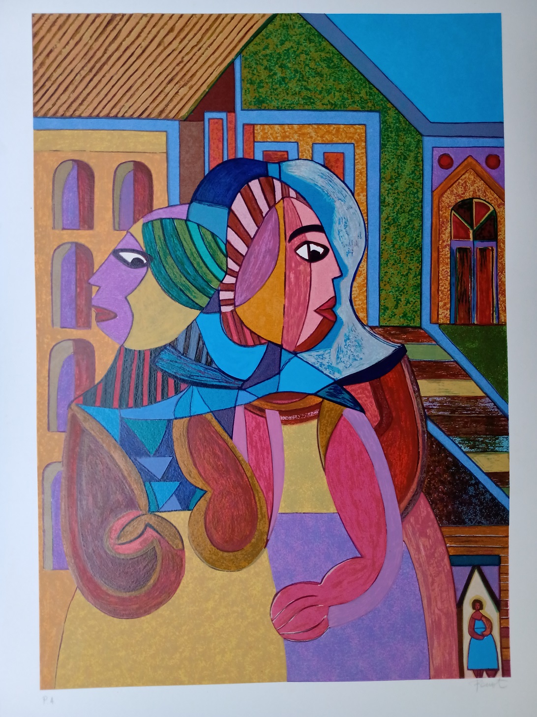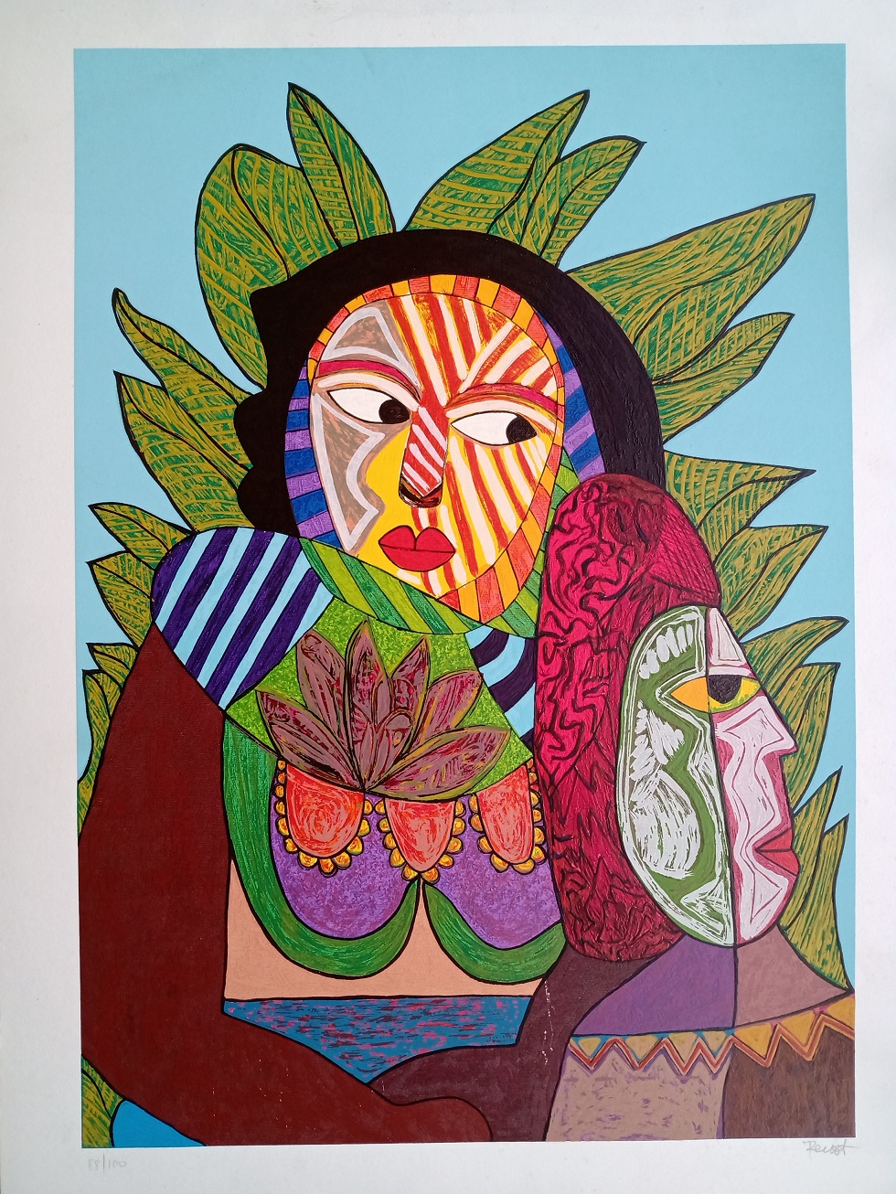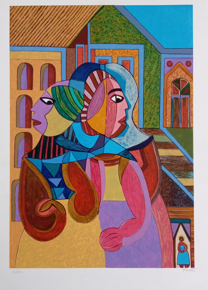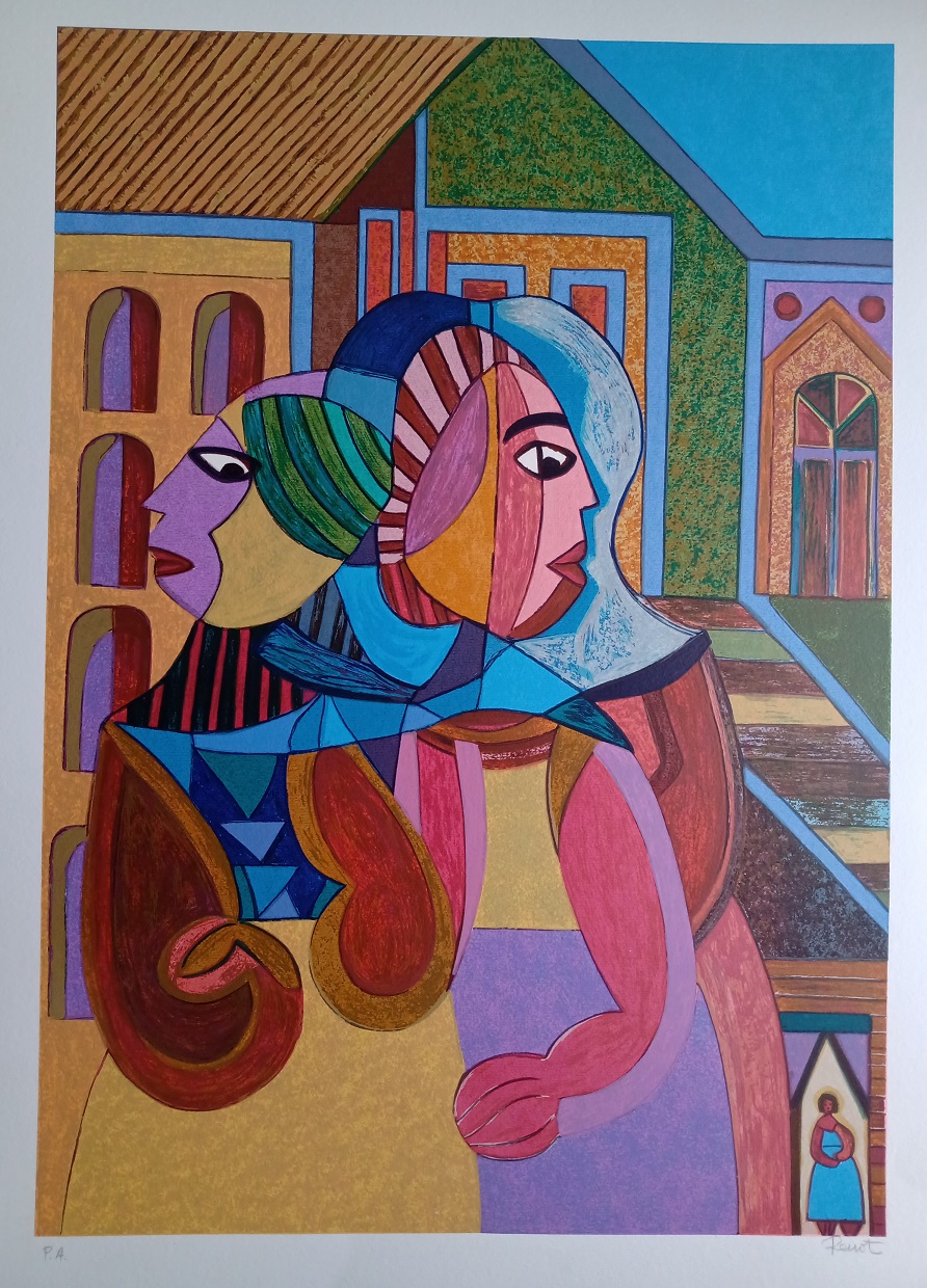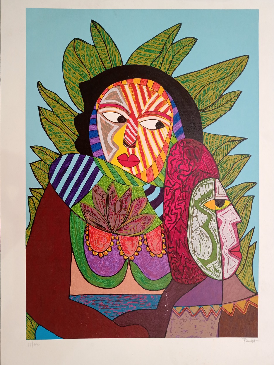 Renot - Casario com Mulata - Serigrafia Manuel - 45x35 - dec. 70 - Assinada
