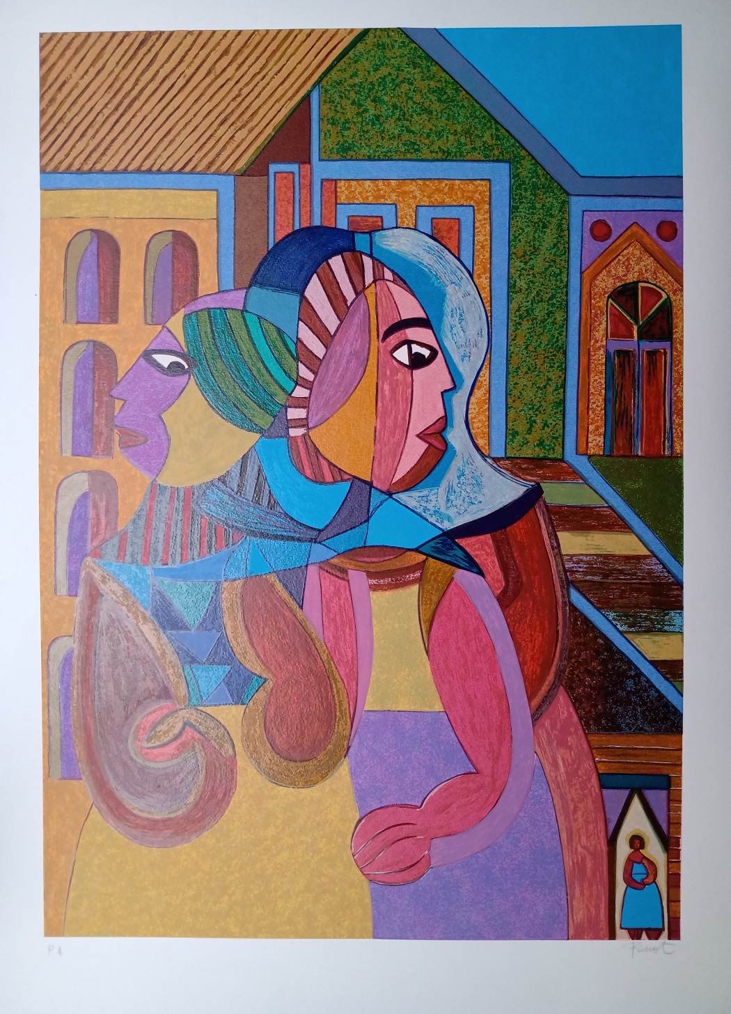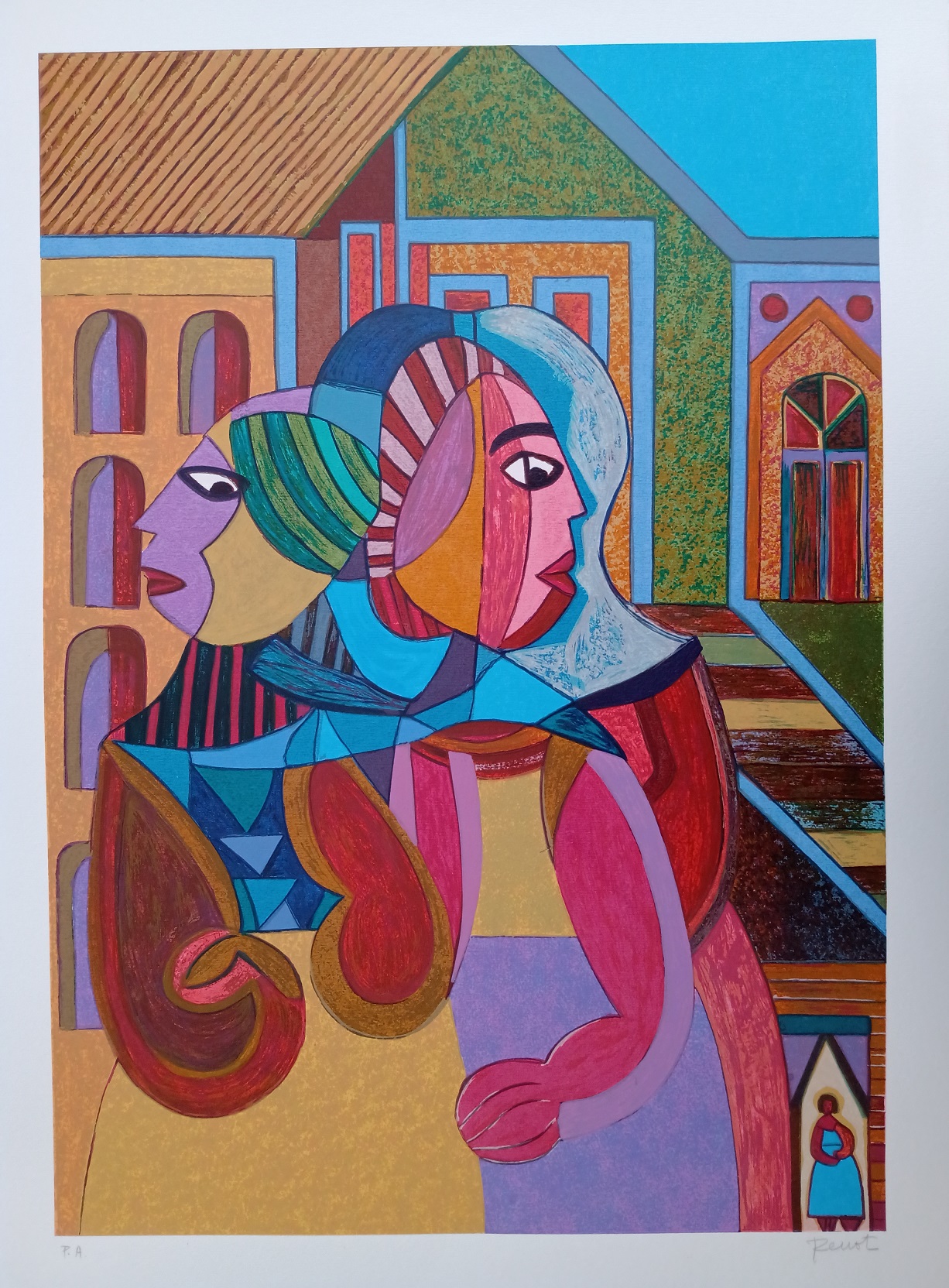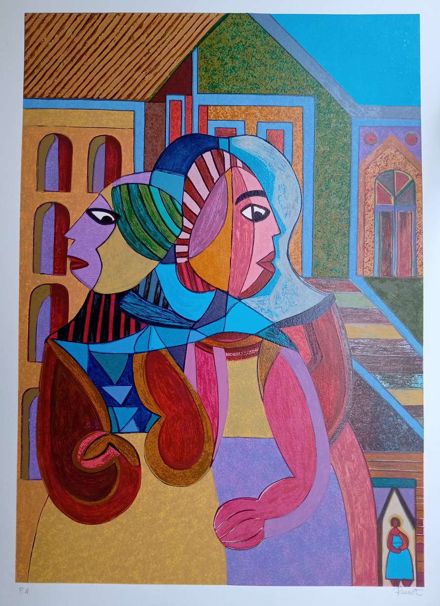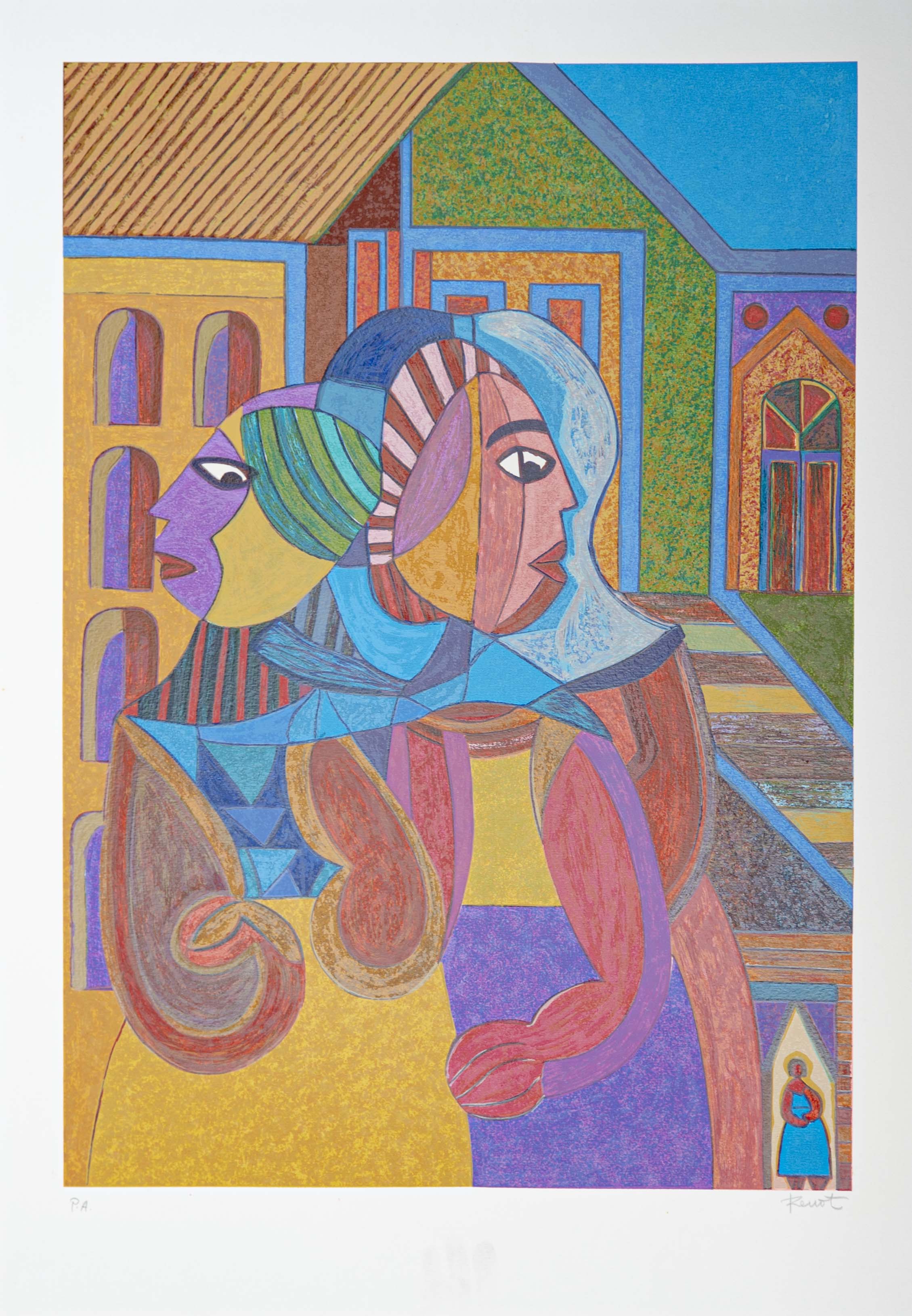 Renot - Casario com Mulata - Serigrafia Manuel - 45x35 - dec. 70 - Assinada