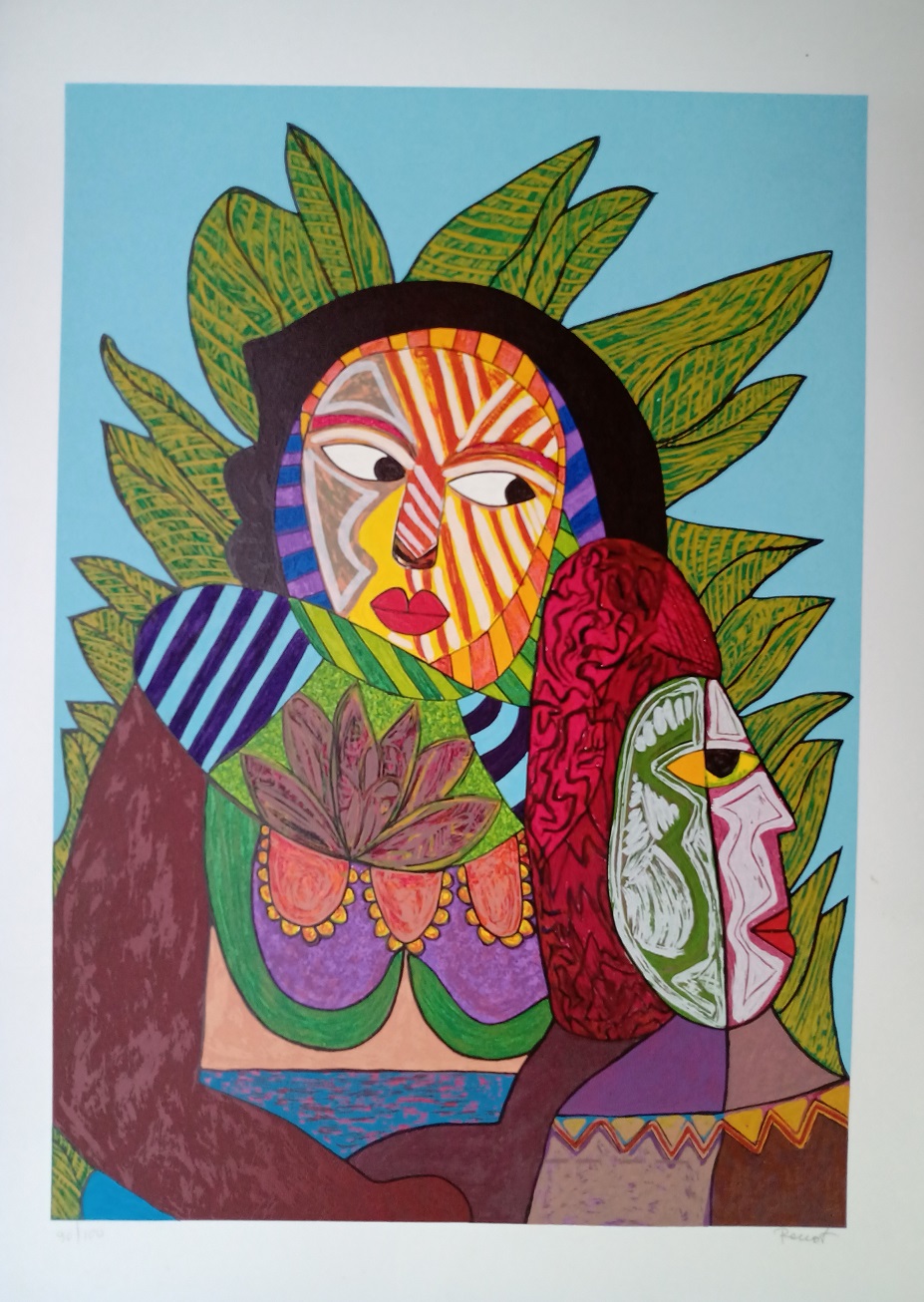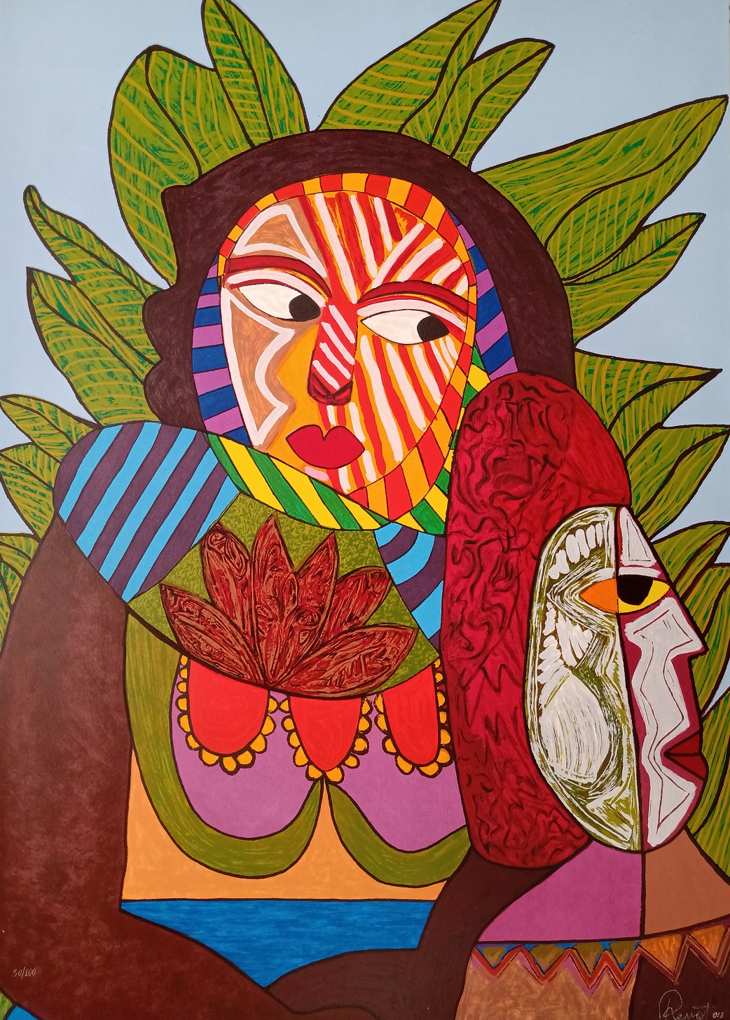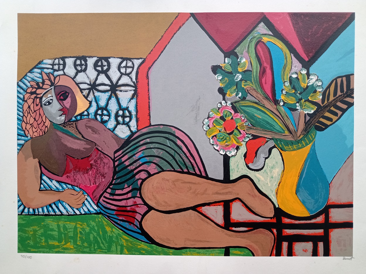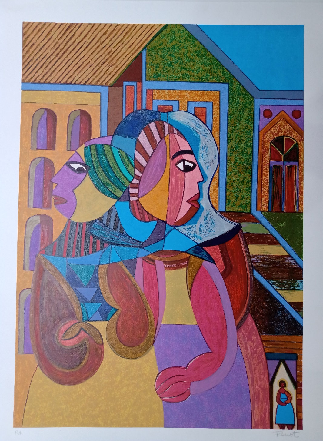 Renot - Casario com Mulata - Serigrafia Manuel - 45x35 - dec. 70 - Assinada