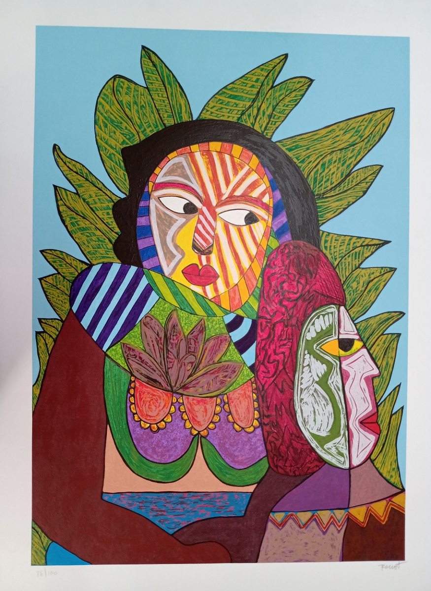 Renot - Casario com Mulata - Serigrafia Manuel - 45x35 - dec. 70 - Assinada