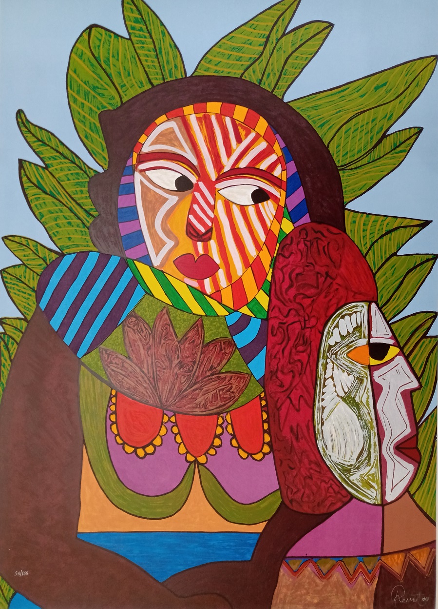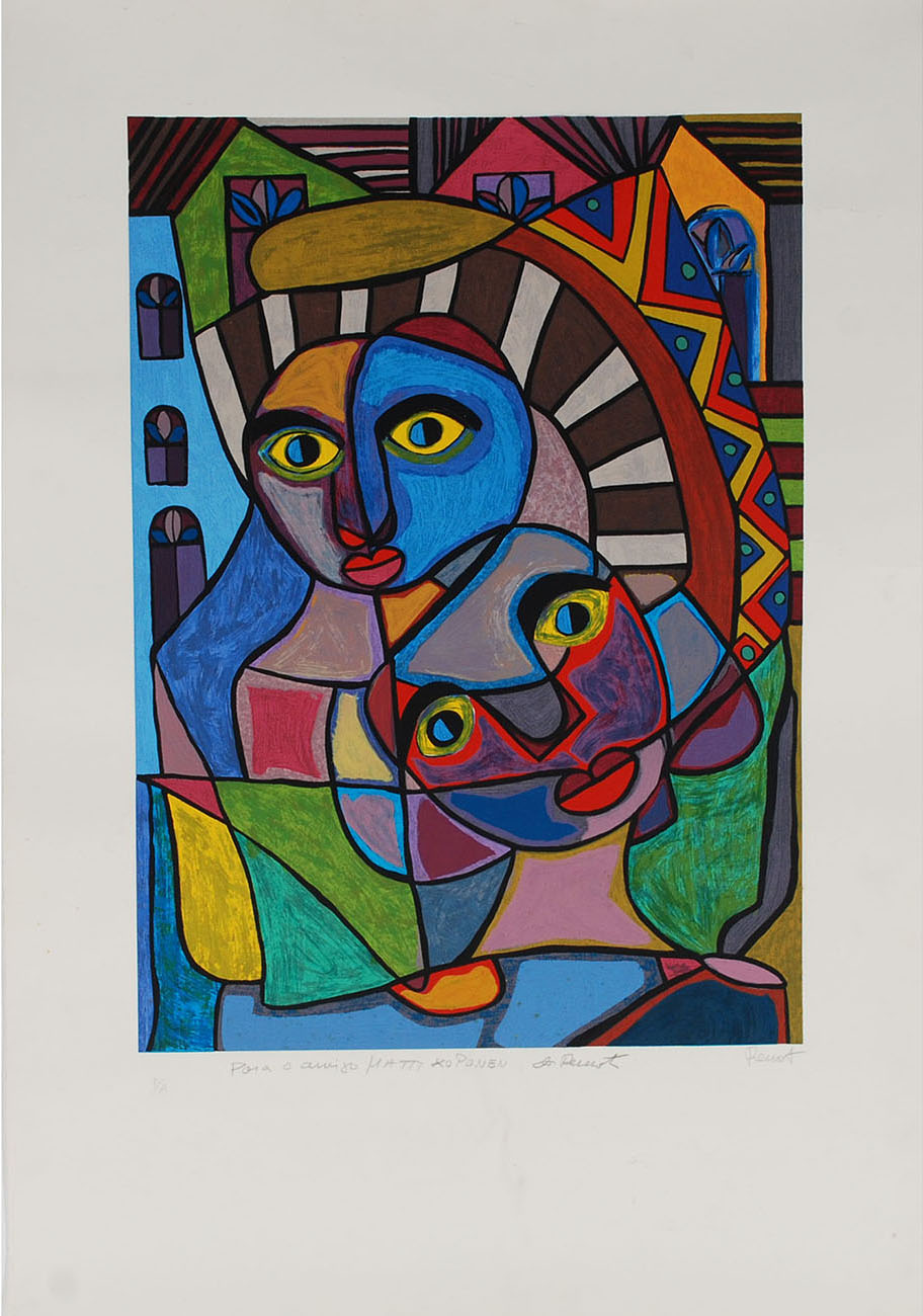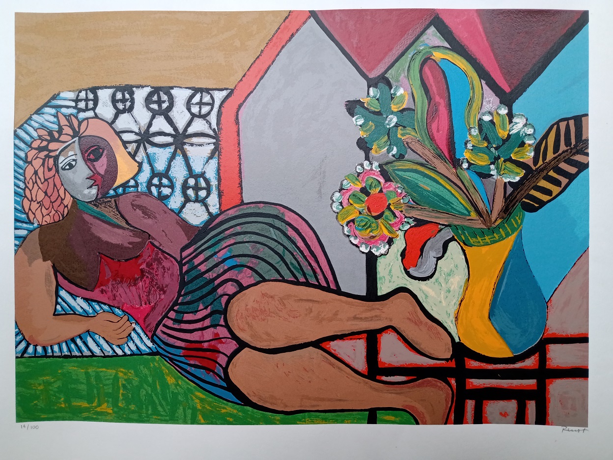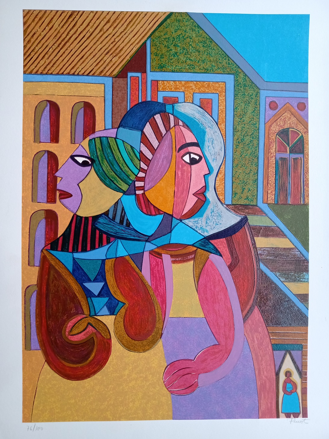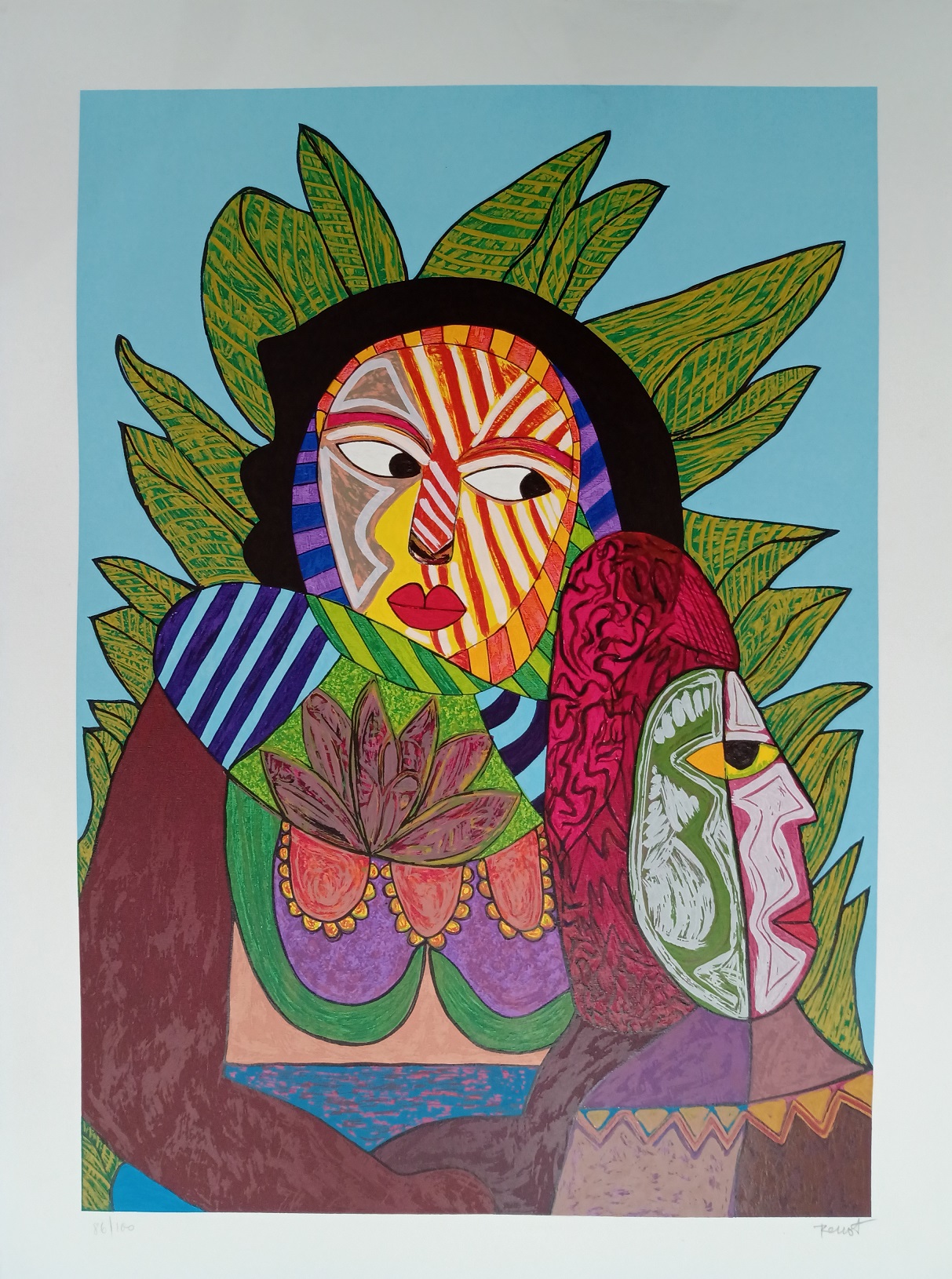 Renot - Casario com Mulata - Serigrafia Manuel - 45x35 - dec. 70 - Assinada
