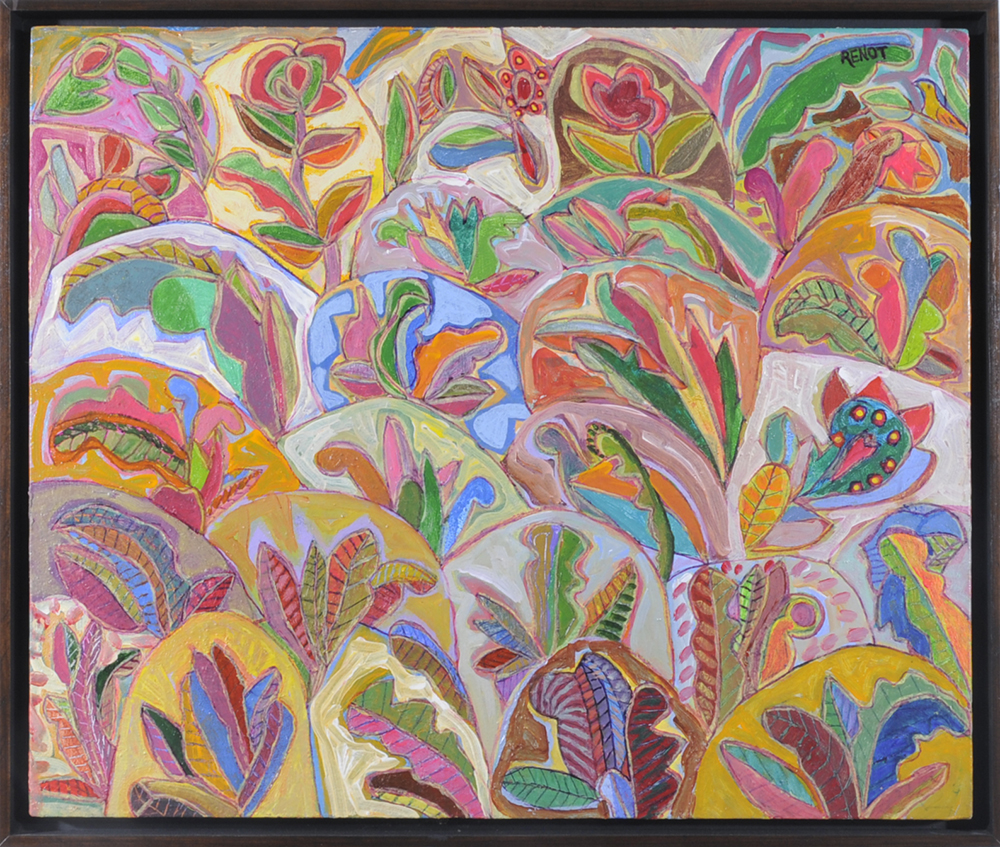 O artista mostra a natureza com sensualidade, combinando matizes de cores que se escondem atrás dos casarios ou brotam da vegetação tropical do recôncavo. Em suas obras a realidade brasileira é caracterizada em todo seu mistério, exotismo e aspectos únicos. O mundo criado por Renot é onírico, sensual e mágico, onde a fantasia e a realidade são indivisíveis. No trabalho deste grande artista há a predominância da flora e da fauna da Bahia, sempre com a presença marcante das cores e, em especial, o azul e suas variações. Jaime Maurício afirmou que na arte de Renot “seu desenho é um poema e sua tapeçaria um afresco”.