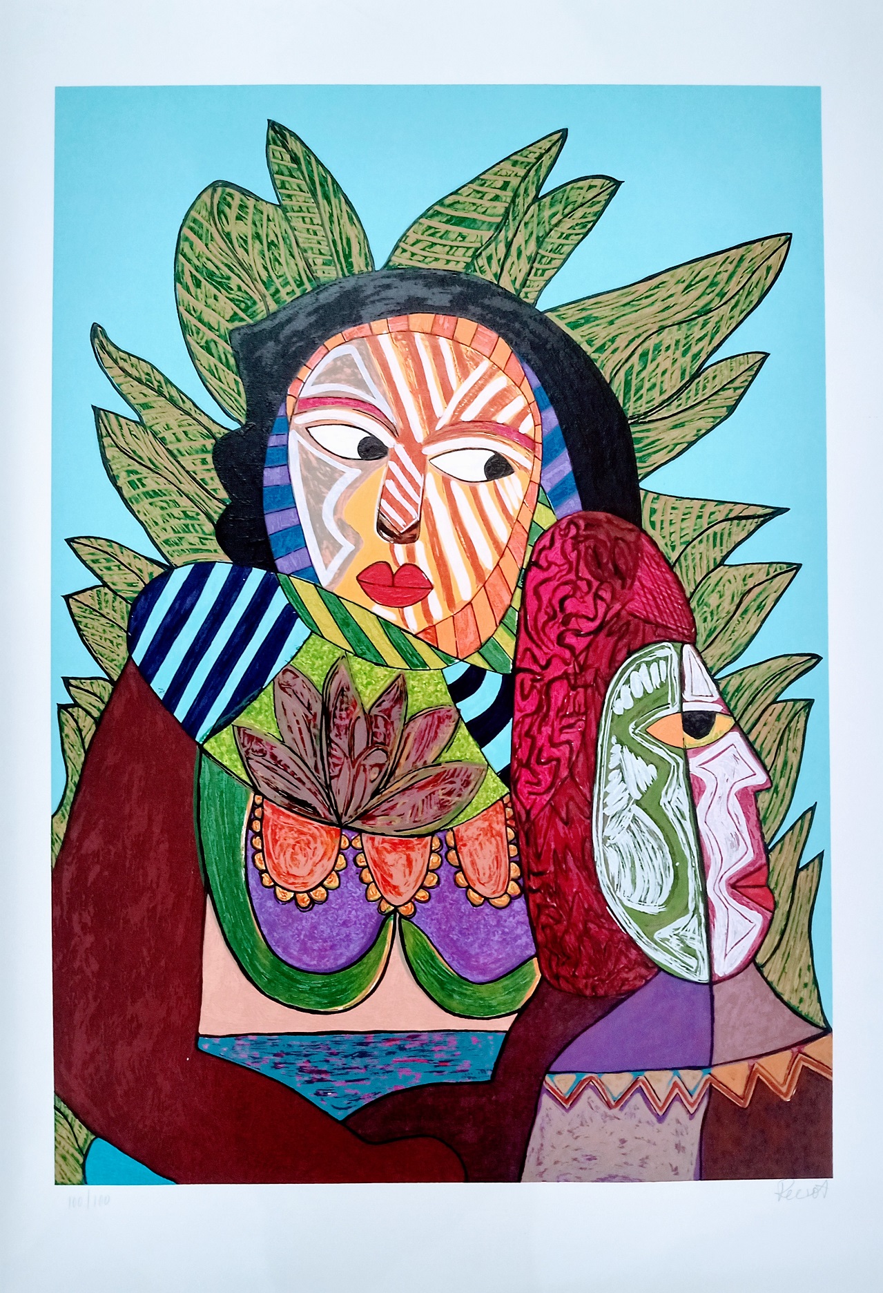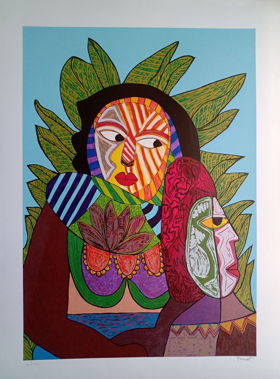 Renot - Casario com Mulata - Serigrafia Manuel - 45x35 - dec. 70 - Assinada