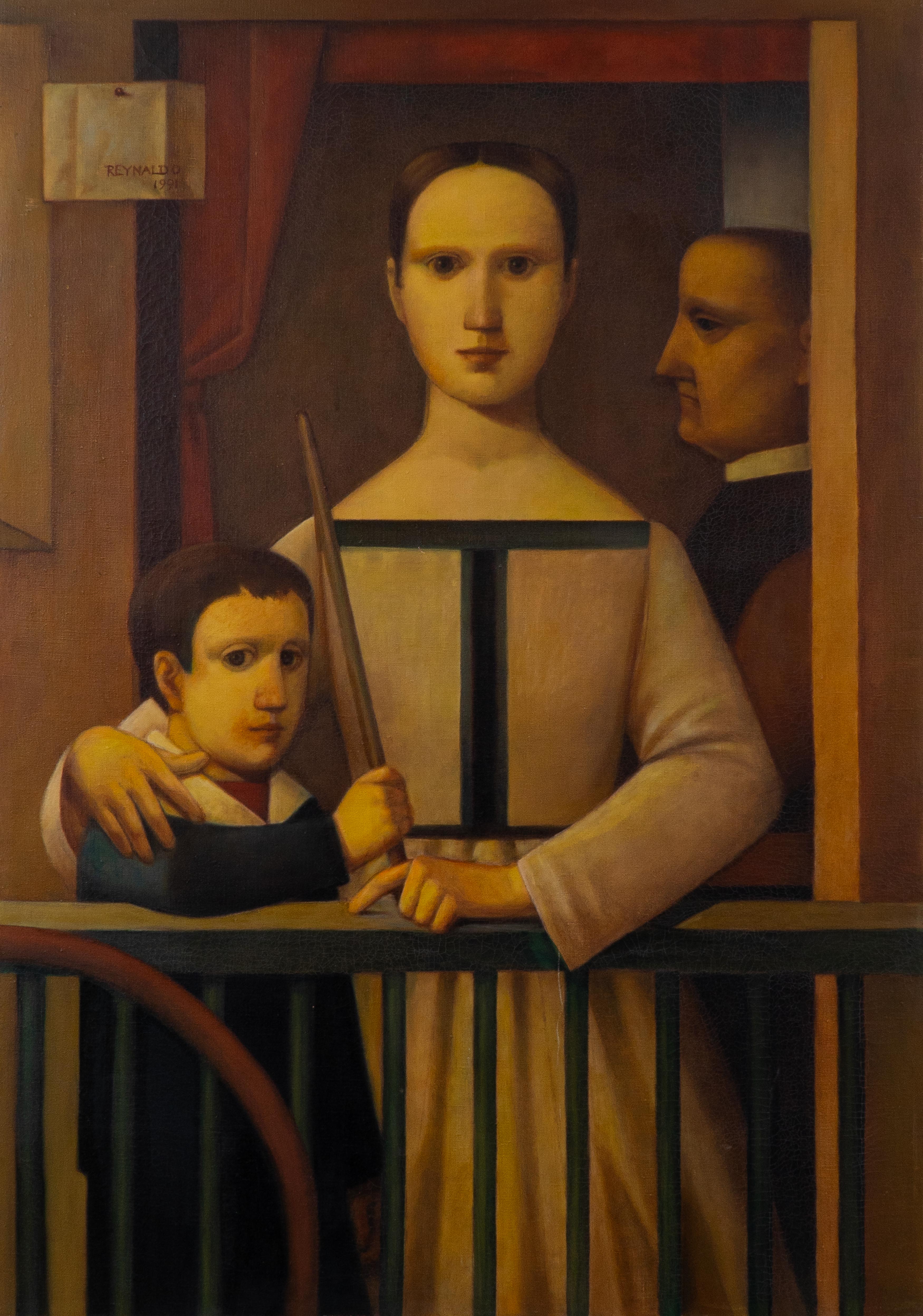 Reynaldo Fonseca é um dos fundadores da Sociedade de Arte Moderna do Recife - SAMR, associação que propõe a ruptura com o sistema acadêmico de ensino e a criação de um amplo movimento cultural, abrangendo as áreas de educação, cultura, artes plásticas, teatro e música. Participa ainda do Ateliê Coletivo, em Recife, realizando cursos de desenho. Posteriormente afasta-se da escola pernambucana de pintura e da temática regional. O pintor mantém-se deliberadamente à margem das correntes artísticas que buscam renovar a arte no país. Com uma produção figurativa, realiza trabalhos em aquarela, gravura e principalmente em óleo sobre tela ou duratex. Revela grande domínio do desenho e o uso cuidadoso da gama cromática. Utiliza freqüentemente recortes de fotografias impressas em jornais e revistas, como inspiração para seus quadros. Mantém ao longo de sua carreira temas recorrentes, como as cenas familiares com crianças e animais, nas quais predomina um clima de sonho, inquietação e estranheza, que evoca o surrealismo e a pintura metafísica. O artista inspira-se em pinturas do primeiro Renascimento italiano e flamengo, também nos pintores primitivos norte-americanos dos séculos XVIII e XIX e nos surrealistas em geral. Como aponta Roberto Pontual, Reynaldo Fonseca concentra-se na armação de enigmas, a meio caminho entre o metafísico e o fantástico. A retomada da história da arte é realizada de forma paciente, e por vezes com uma parcela de ironia.