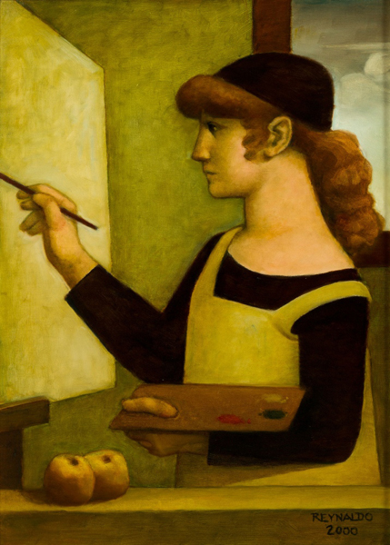 Reynaldo Fonseca é um dos fundadores da Sociedade de Arte Moderna do Recife - SAMR, associação que propõe a ruptura com o sistema acadêmico de ensino e a criação de um amplo movimento cultural, abrangendo as áreas de educação, cultura, artes plásticas, teatro e música. Participa ainda do Ateliê Coletivo, em Recife, realizando cursos de desenho. Posteriormente afasta-se da escola pernambucana de pintura e da temática regional. O pintor mantém-se deliberadamente à margem das correntes artísticas que buscam renovar a arte no país. Com uma produção figurativa, realiza trabalhos em aquarela, gravura e principalmente em óleo sobre tela ou duratex. Revela grande domínio do desenho e o uso cuidadoso da gama cromática. Utiliza freqüentemente recortes de fotografias impressas em jornais e revistas, como inspiração para seus quadros. Mantém ao longo de sua carreira temas recorrentes, como as cenas familiares com crianças e animais, nas quais predomina um clima de sonho, inquietação e estranheza, que evoca o surrealismo e a pintura metafísica. O artista inspira-se em pinturas do primeiro Renascimento italiano e flamengo, também nos pintores primitivos norte-americanos dos séculos XVIII e XIX e nos surrealistas em geral. Como aponta Roberto Pontual, Reynaldo Fonseca concentra-se na armação de enigmas, a meio caminho entre o metafísico e o fantástico. A retomada da história da arte é realizada de forma paciente, e por vezes com uma parcela de ironia.