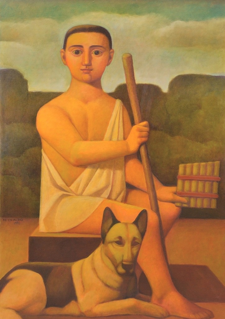 REYNALDO FONSECA (Recife, PE 1925-2019) MULHER TOCANDO FLAUTA 1986 MEDIDAS: 69 X 87 CM S MOLDURA E 97 X 80 CM C MOLDURA