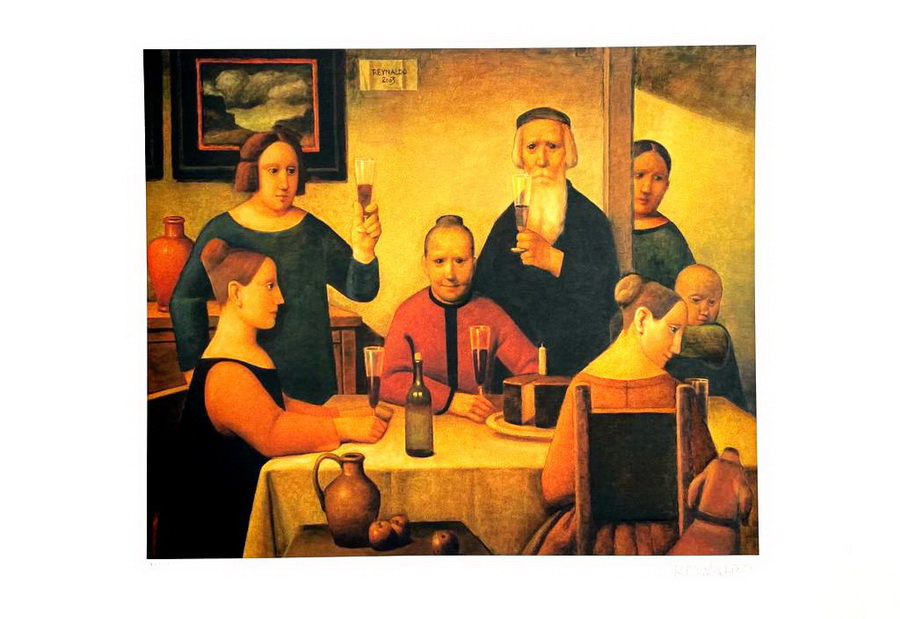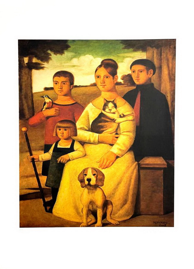 Reynaldo Fonseca é um dos fundadores da Sociedade de Arte Moderna do Recife - SAMR, associação que propõe a ruptura com o sistema acadêmico de ensino e a criação de um amplo movimento cultural, abrangendo as áreas de educação, cultura, artes plásticas, teatro e música. Participa ainda do Ateliê Coletivo, em Recife, realizando cursos de desenho. Posteriormente afasta-se da escola pernambucana de pintura e da temática regional. O pintor mantém-se deliberadamente à margem das correntes artísticas que buscam renovar a arte no país. Com uma produção figurativa, realiza trabalhos em aquarela, gravura e principalmente em óleo sobre tela ou duratex. Revela grande domínio do desenho e o uso cuidadoso da gama cromática. Utiliza freqüentemente recortes de fotografias impressas em jornais e revistas, como inspiração para seus quadros. Mantém ao longo de sua carreira temas recorrentes, como as cenas familiares com crianças e animais, nas quais predomina um clima de sonho, inquietação e estranheza, que evoca o surrealismo e a pintura metafísica. O artista inspira-se em pinturas do primeiro Renascimento italiano e flamengo, também nos pintores primitivos norte-americanos dos séculos XVIII e XIX e nos surrealistas em geral. Como aponta Roberto Pontual, Reynaldo Fonseca concentra-se na armação de enigmas, a meio caminho entre o metafísico e o fantástico. A retomada da história da arte é realizada de forma paciente, e por vezes com uma parcela de ironia.