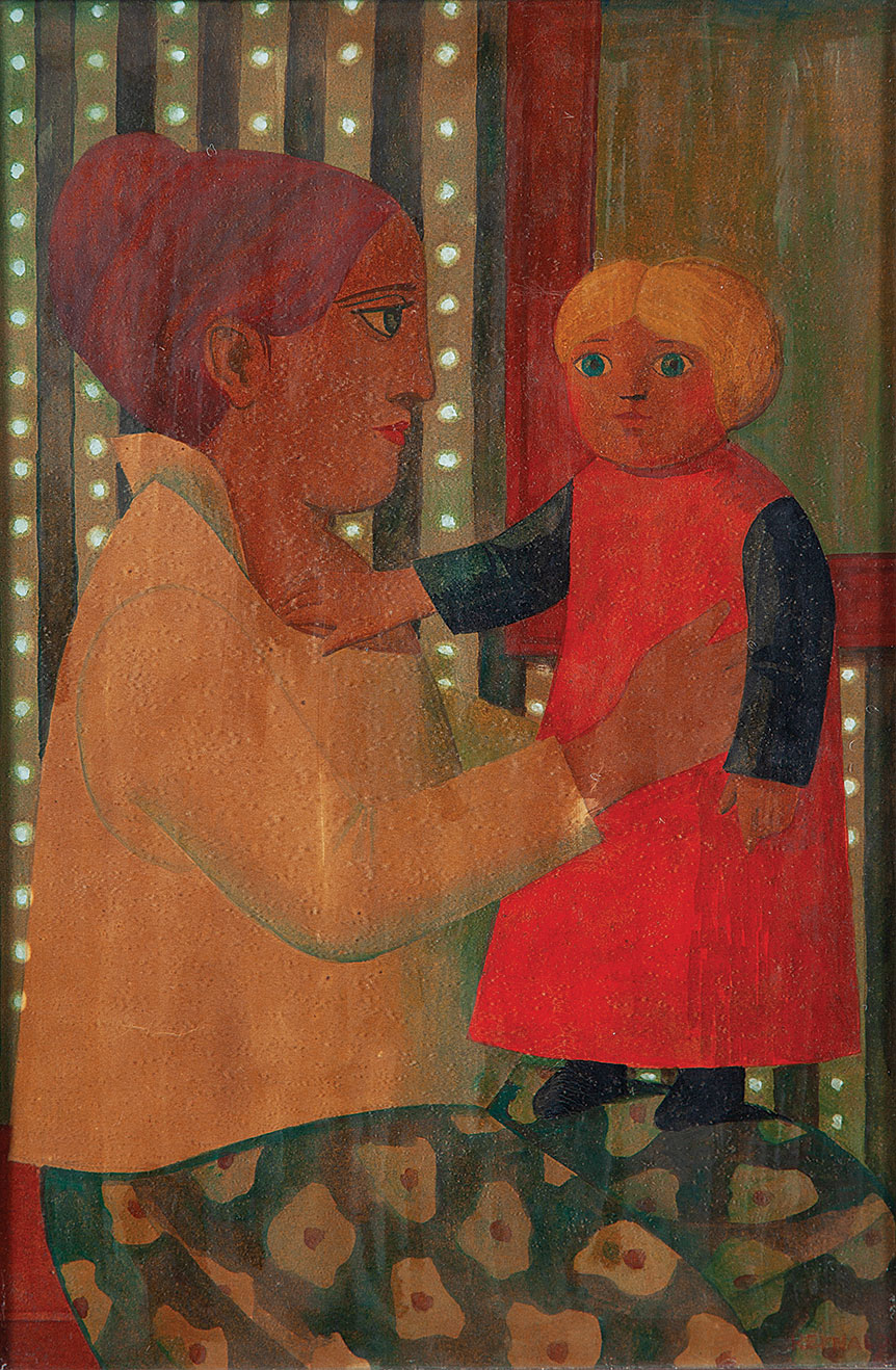 REYNALDO FONSECA (Recife, PE 1925-2019) MULHER TOCANDO FLAUTA 1986 MEDIDAS: 69 X 87 CM S MOLDURA E 97 X 80 CM C MOLDURA