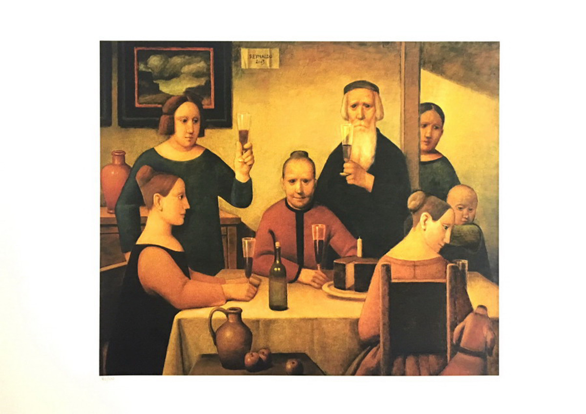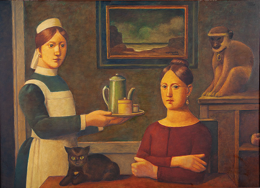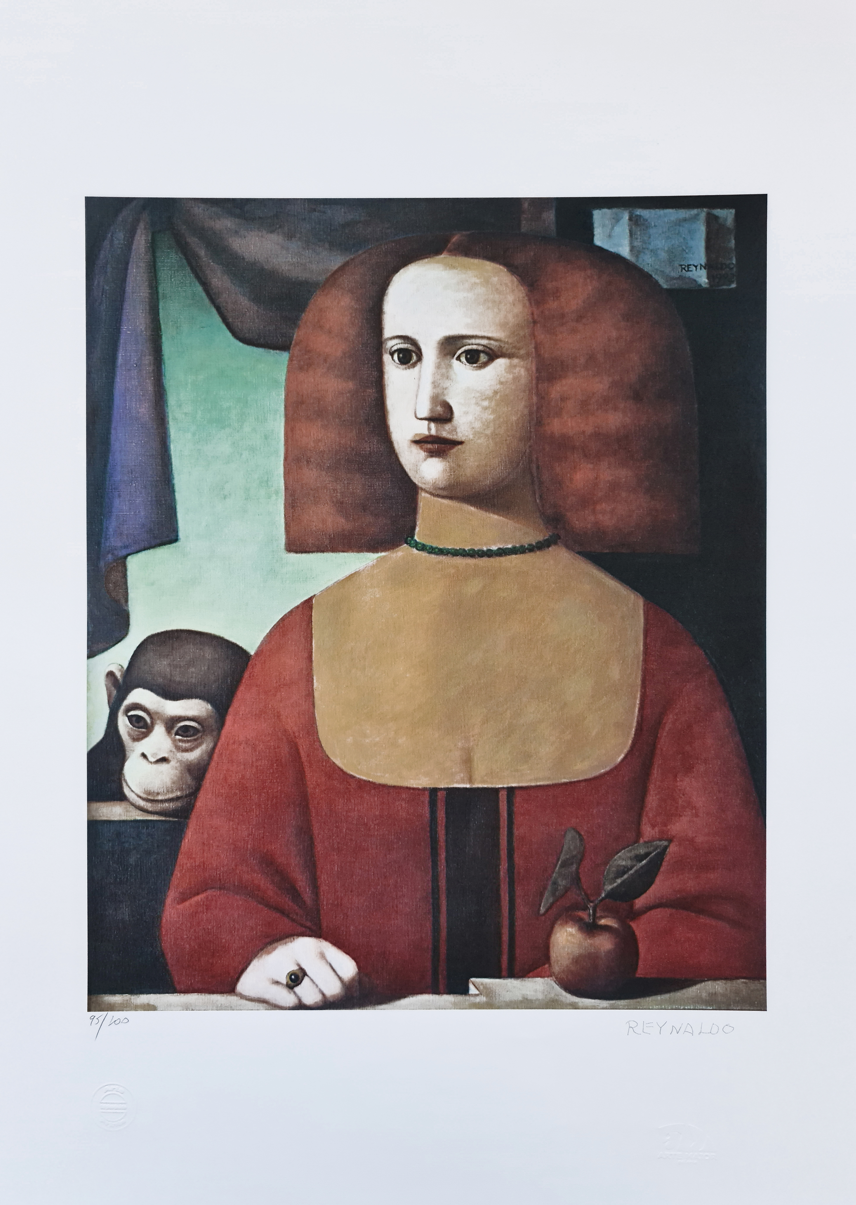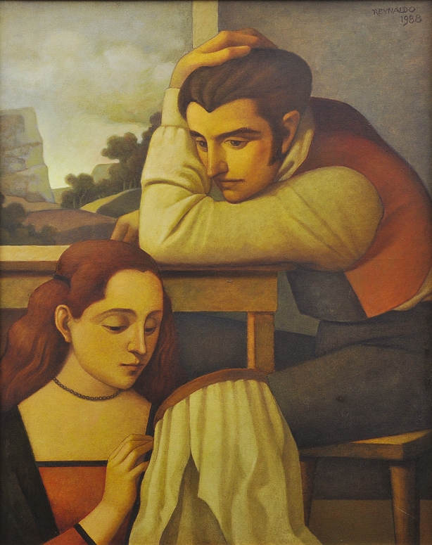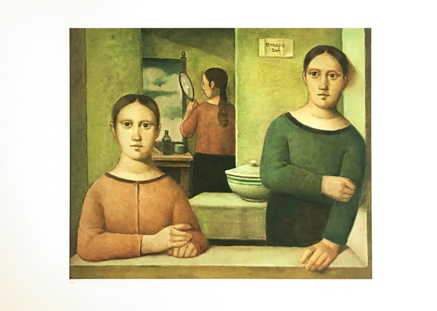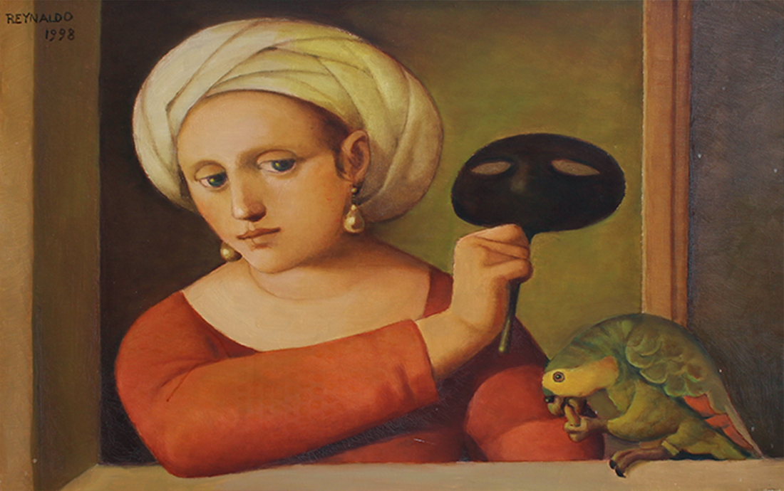 Reynaldo Fonseca é um dos fundadores da Sociedade de Arte Moderna do Recife - SAMR, associação que propõe a ruptura com o sistema acadêmico de ensino e a criação de um amplo movimento cultural, abrangendo as áreas de educação, cultura, artes plásticas, teatro e música. Participa ainda do Ateliê Coletivo, em Recife, realizando cursos de desenho. Posteriormente afasta-se da escola pernambucana de pintura e da temática regional. O pintor mantém-se deliberadamente à margem das correntes artísticas que buscam renovar a arte no país. Com uma produção figurativa, realiza trabalhos em aquarela, gravura e principalmente em óleo sobre tela ou duratex. Revela grande domínio do desenho e o uso cuidadoso da gama cromática. Utiliza freqüentemente recortes de fotografias impressas em jornais e revistas, como inspiração para seus quadros. Mantém ao longo de sua carreira temas recorrentes, como as cenas familiares com crianças e animais, nas quais predomina um clima de sonho, inquietação e estranheza, que evoca o surrealismo e a pintura metafísica. O artista inspira-se em pinturas do primeiro Renascimento italiano e flamengo, também nos pintores primitivos norte-americanos dos séculos XVIII e XIX e nos surrealistas em geral. Como aponta Roberto Pontual, Reynaldo Fonseca concentra-se na armação de enigmas, a meio caminho entre o metafísico e o fantástico. A retomada da história da arte é realizada de forma paciente, e por vezes com uma parcela de ironia.